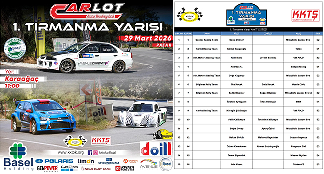 Basel Holding Kuzey Kıbrıs Tırmanma Şampiyonası’nın ilk yarışı, Carlot Auto sponsorluğunda düzenlenecek. Carlot Auto 1. Tırmanma Yarışı 29 Mart Pazar günü saat 11:00’de Karaağaç yolunda gerçekleştirilecek.