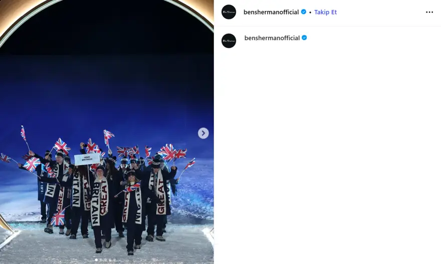 İngiltere’nin Milano Cortina 2026 üniformaları, Ben Sherman iş birliğiyle tasarlandı. Ben Sherman, İngiliz beyefendi stilini Alp koşullarıyla harmanladı.