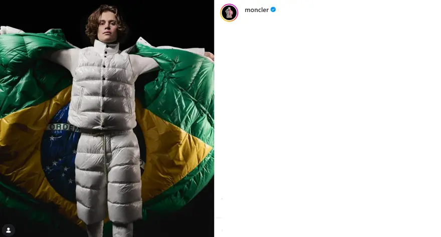 Moncler, uzun bir aradan sonra Brezilya ile iş birliği yaparak Kış Olimpiyatları moda sahnesine geri döndü. Tasarımlar da Brezilya bayrağını simgeleyen yıldız desenleri kullanıldı.