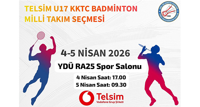 Badminton Federasyonu, yoğun katılım nedeni ile 4 Nisan ve 5 Nisan 2026 tarihlerinde iki gün oynanacak olan Badminton U17 KKTC Milli Takım seçmelerinin Atatürk Spor Salonu yerine YDÜ RA 25 salonunda yapılacağını duyurdu.