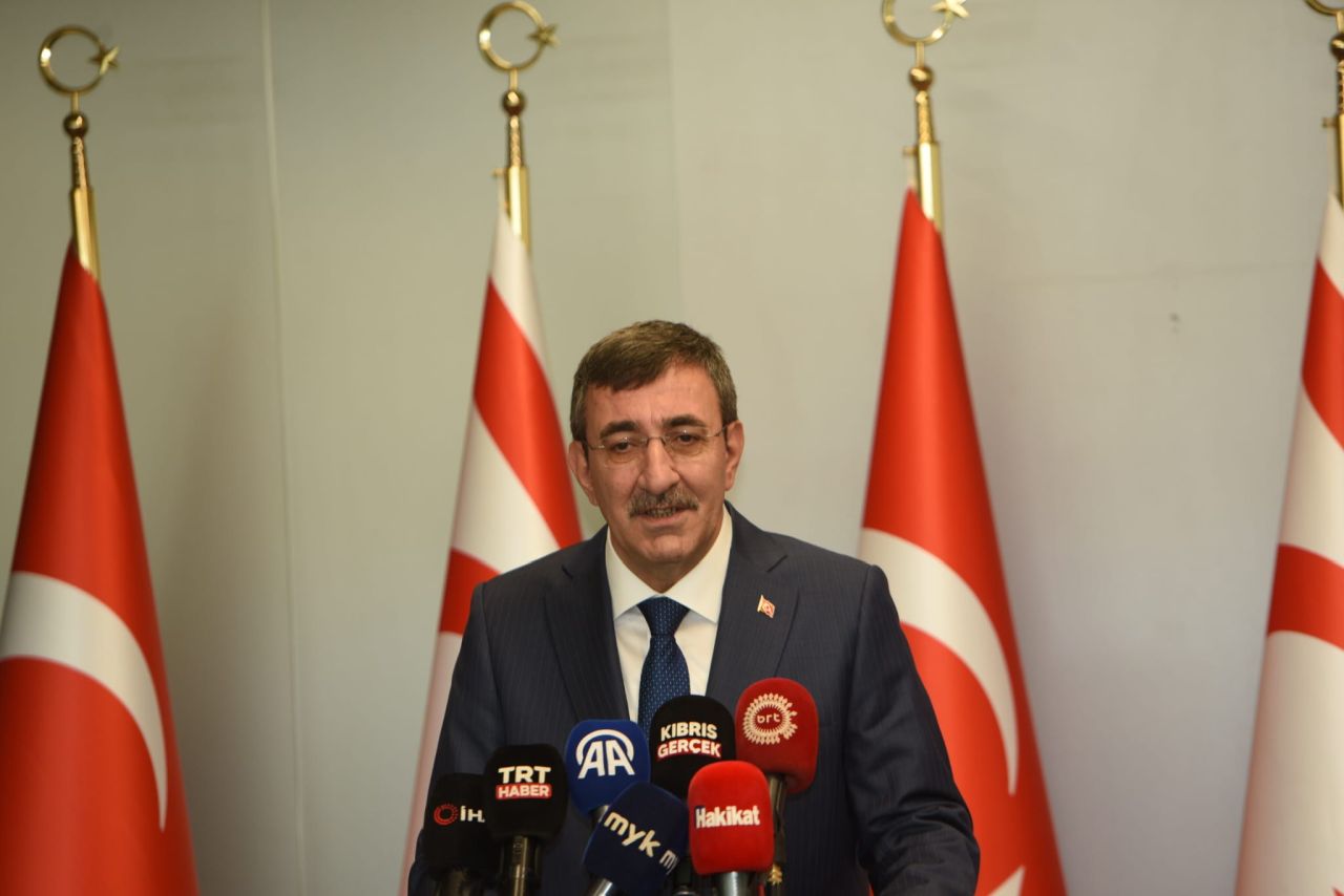 Türkiye Cumhuriyeti Cumhurbaşkanı Yardımcısı Cevdet Yılmaz, günübirlik temaslarda bulunmak üzere Kuzey Kıbrıs Türk Cumhuriyeti’ne geldi. Ercan Havalimanı’nda Ünal Üstel ile birlikte ortak basın toplantısı düzenleyen Yılmaz, Güney Kıbrıs Rum Yönetimi’nin askeri üslerini üçüncü ülkelere açmasının Ada’daki herkes için ciddi güvenlik riski oluşturduğunu söyledi.