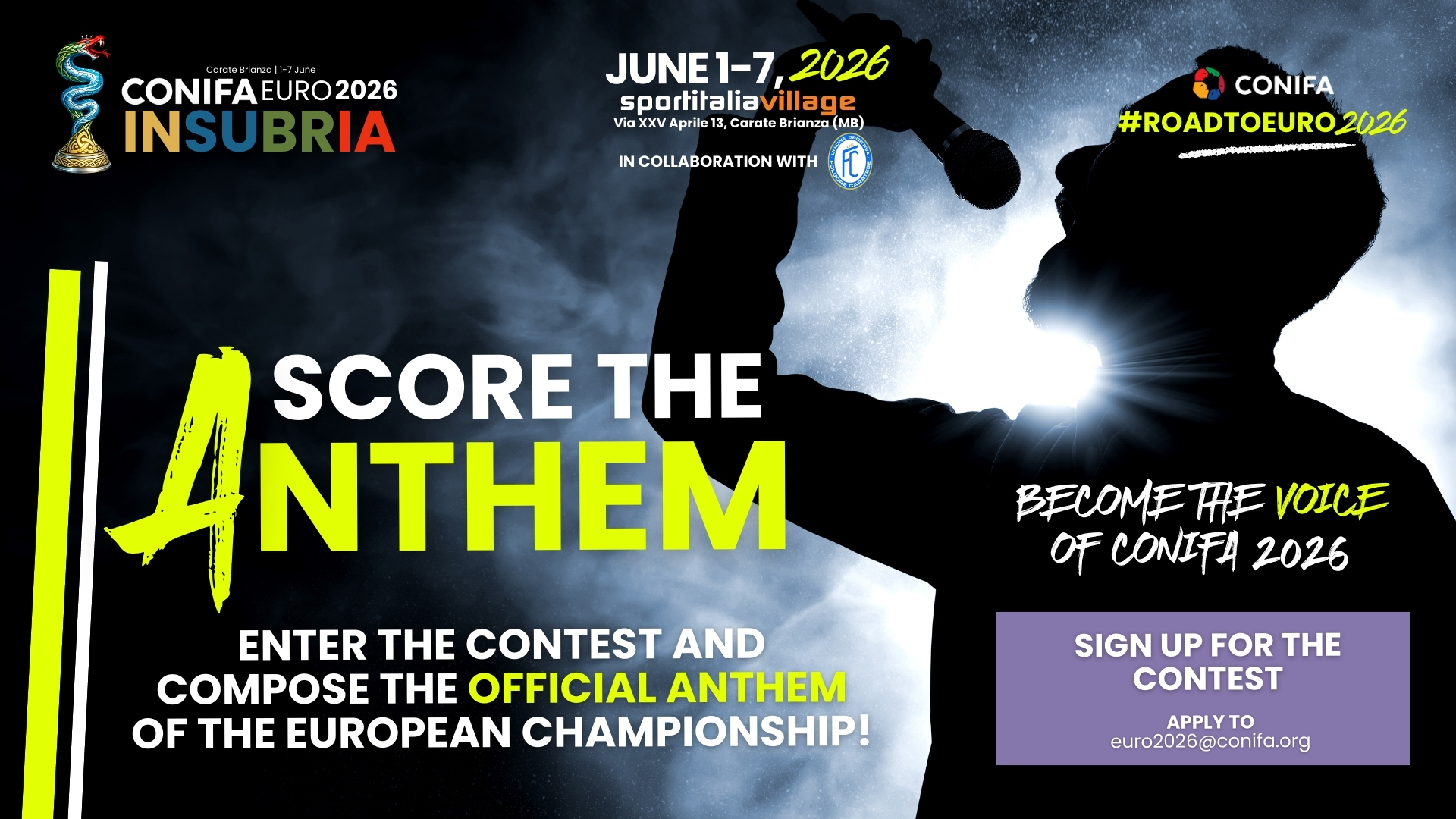 “Eşsiz bir şekilde Insubria’nın bir parçası olun. Uluslararası bir sahnede müzik ve futbol birbirine bağlanma fırsatı sunuyoruz. Kültür, kimlik ve tutkuyu kutlayan uluslararası bir futbol etkinliğine ses vermek için resmi marş yarışmasını başlatıyoruz.