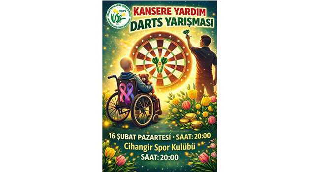 Kansere Yardım Darts Turnuvası 16 Şubat 2026 Pazartesi akşamı saat: 20.00’de Cihangir Spor Kulübü lokalinde gerçekleştirilecek.