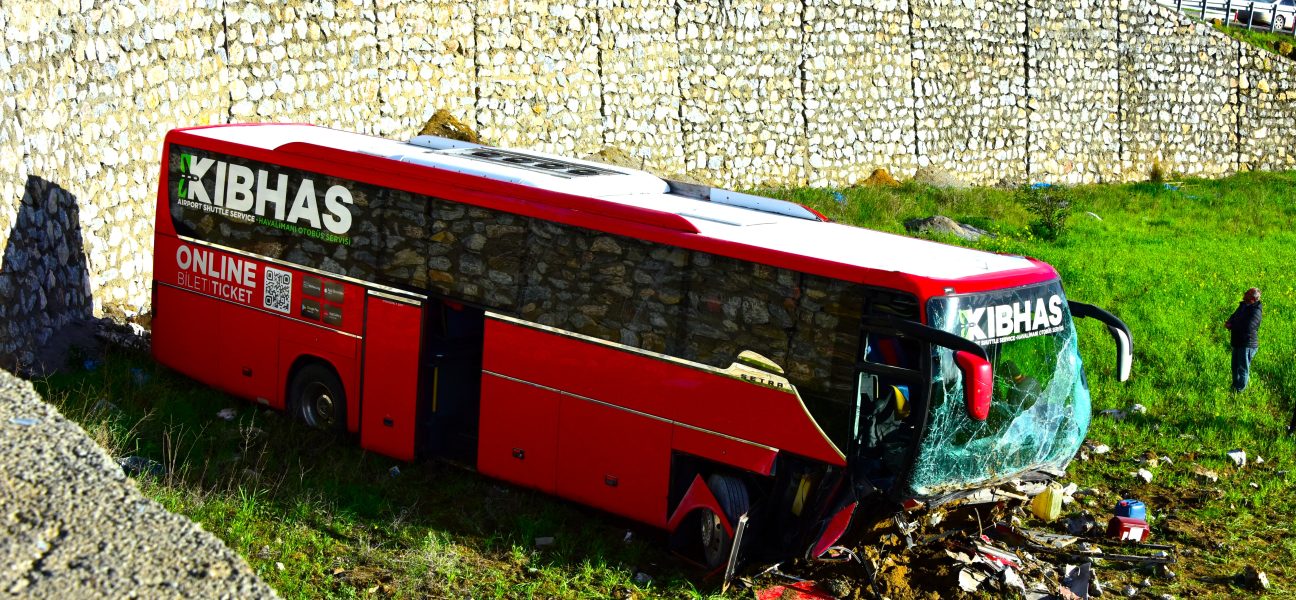 Haspolat’taki Halkbank Çemberi’nde meydana gelen trafik kazasında, KIBHAS’a ait yolcu otobüsü yaklaşık 6 metre yükseklikten tarla içerisine düştü. Kazada otobüs sürücüsü ile bir yolcu yaralandı. Kazaya ilişkin Polis Basın Subaylığı’ndan.