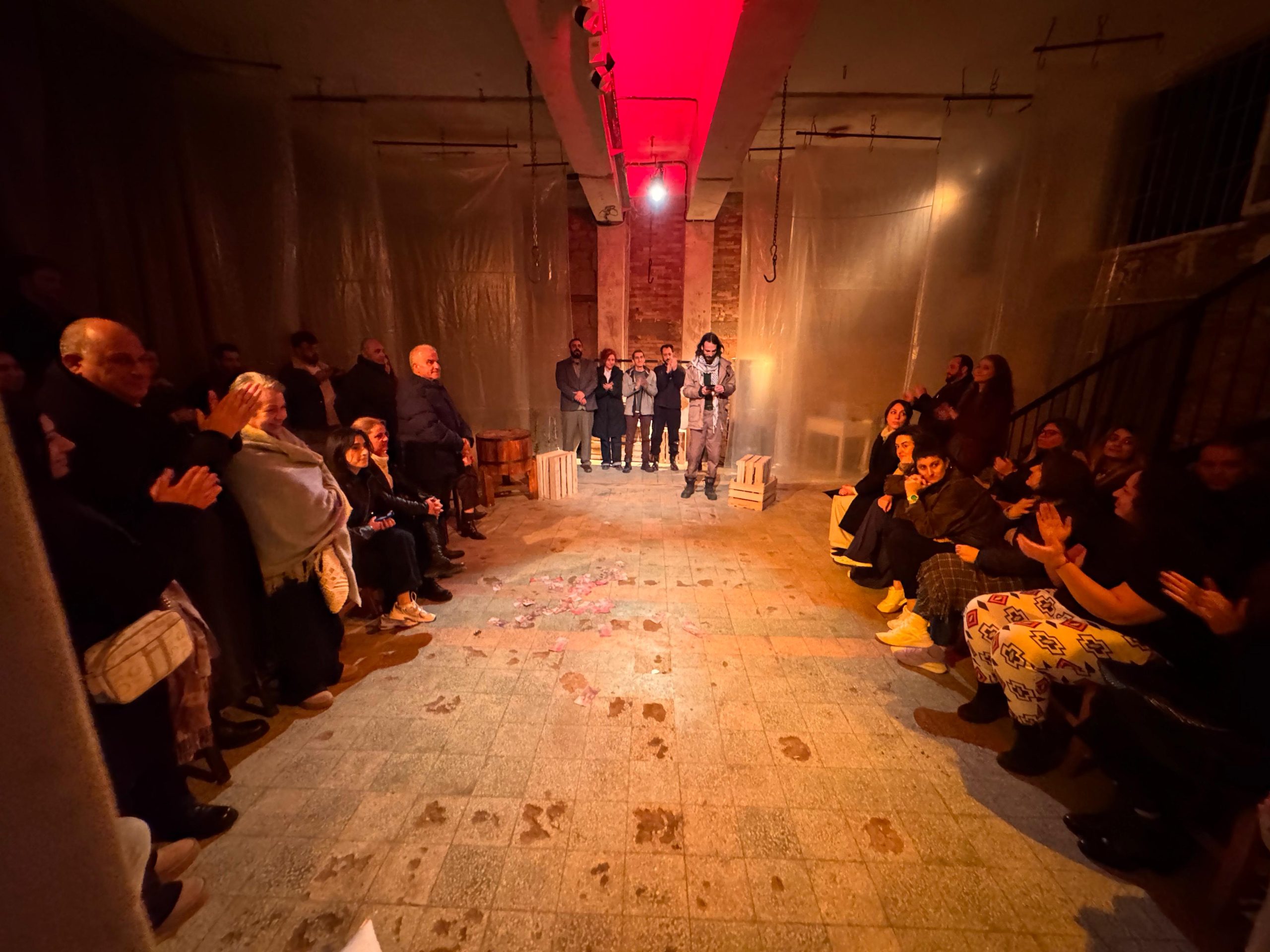 “Maskeliler”, İsrail-Filistin çatışmasının gölgesinde yaşanan yıkımları, üç kardeşin kimlik, aidiyet ve varoluş mücadelesi üzerinden sahneye taşıyor.
