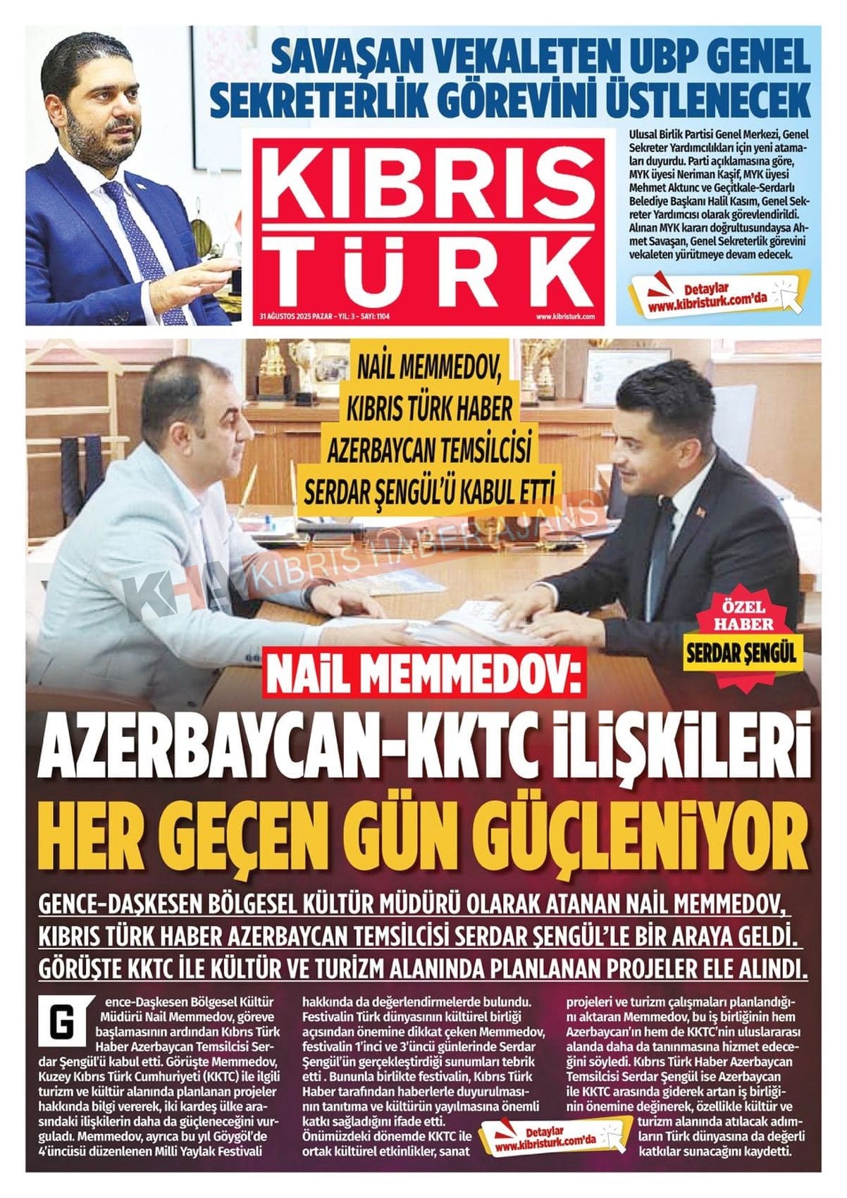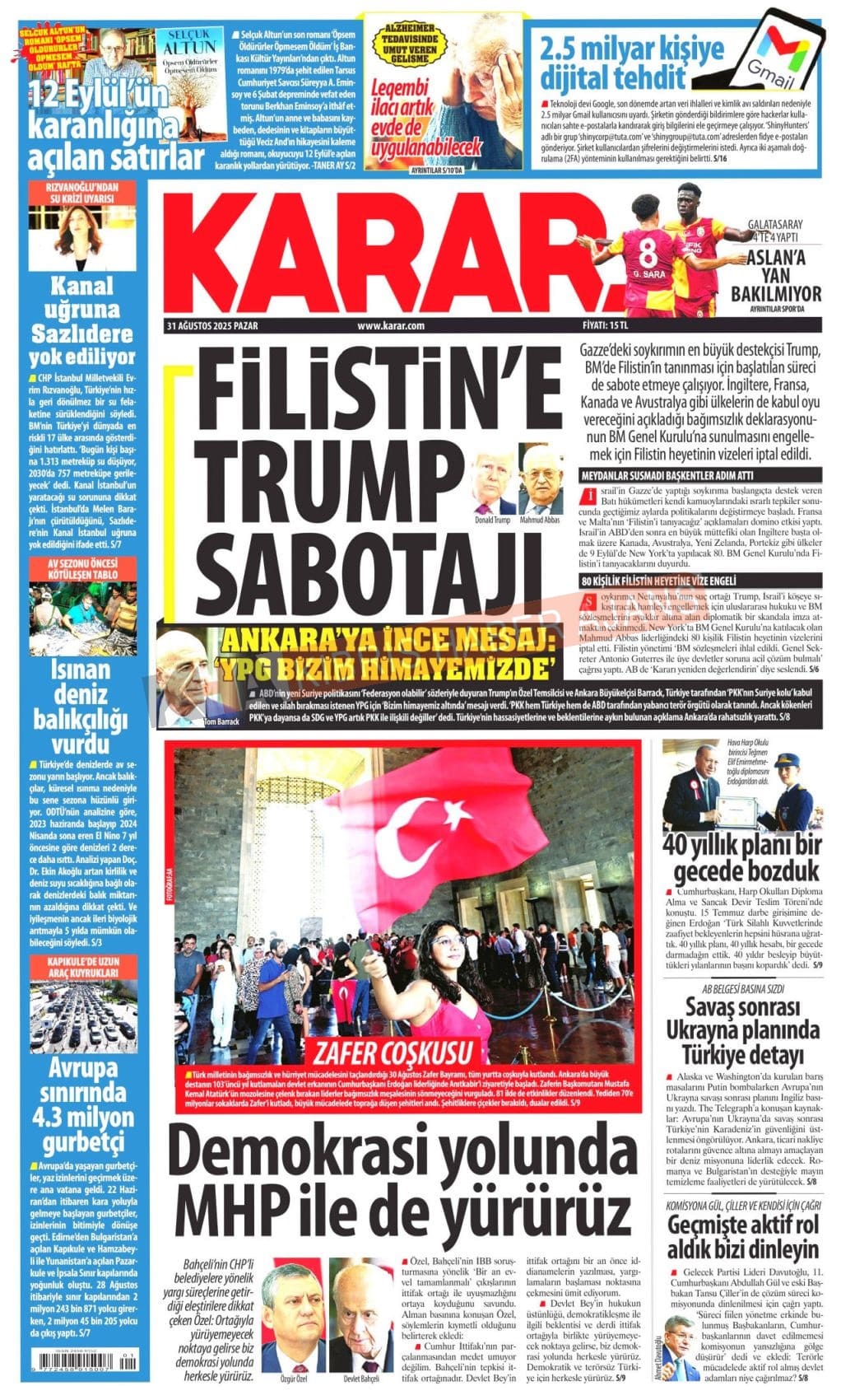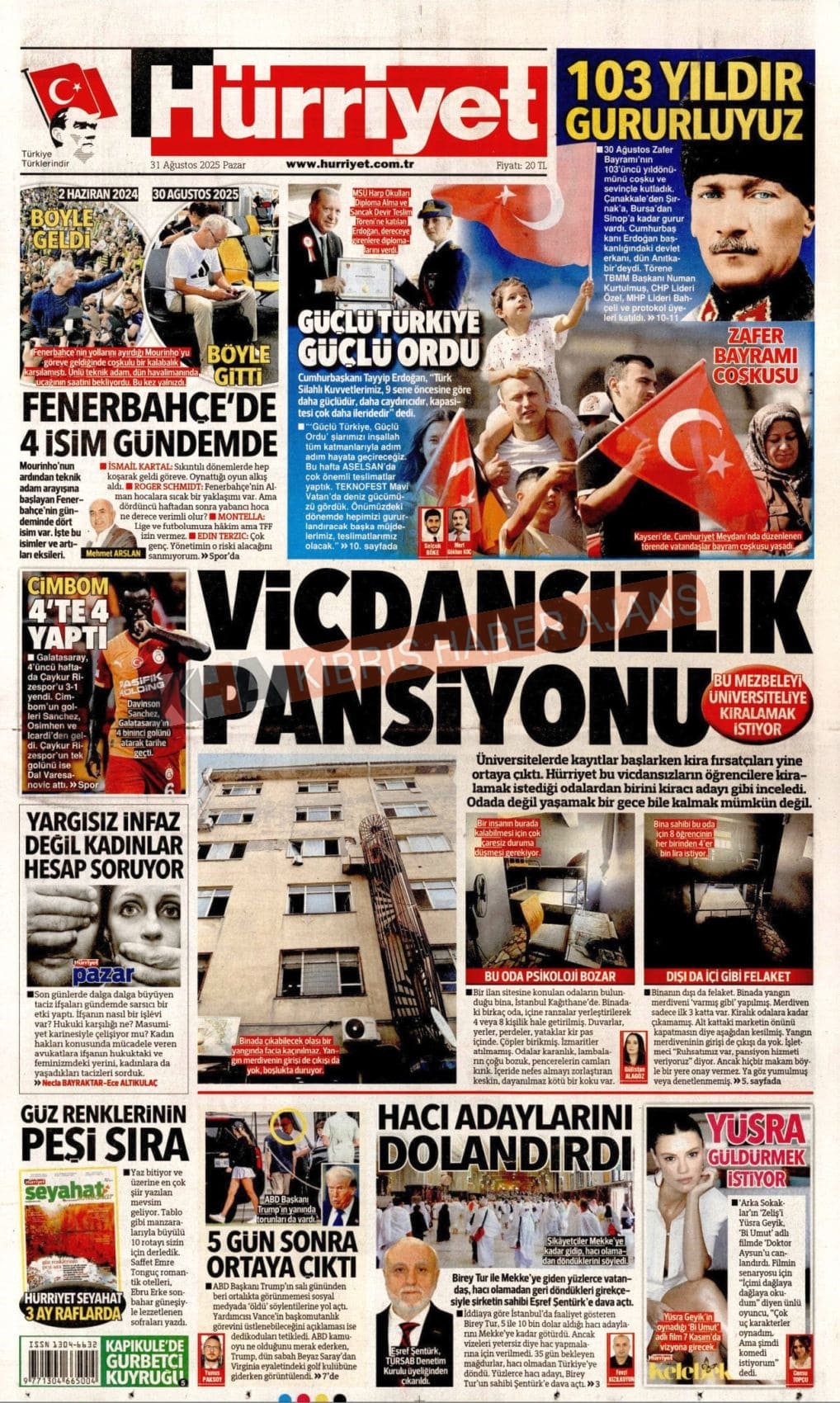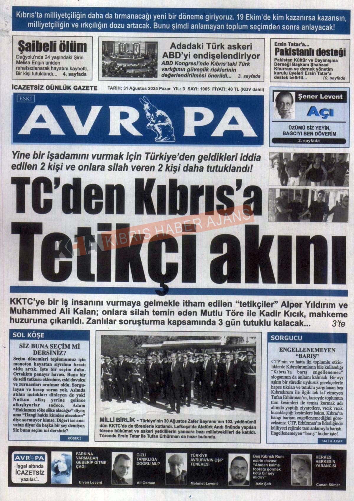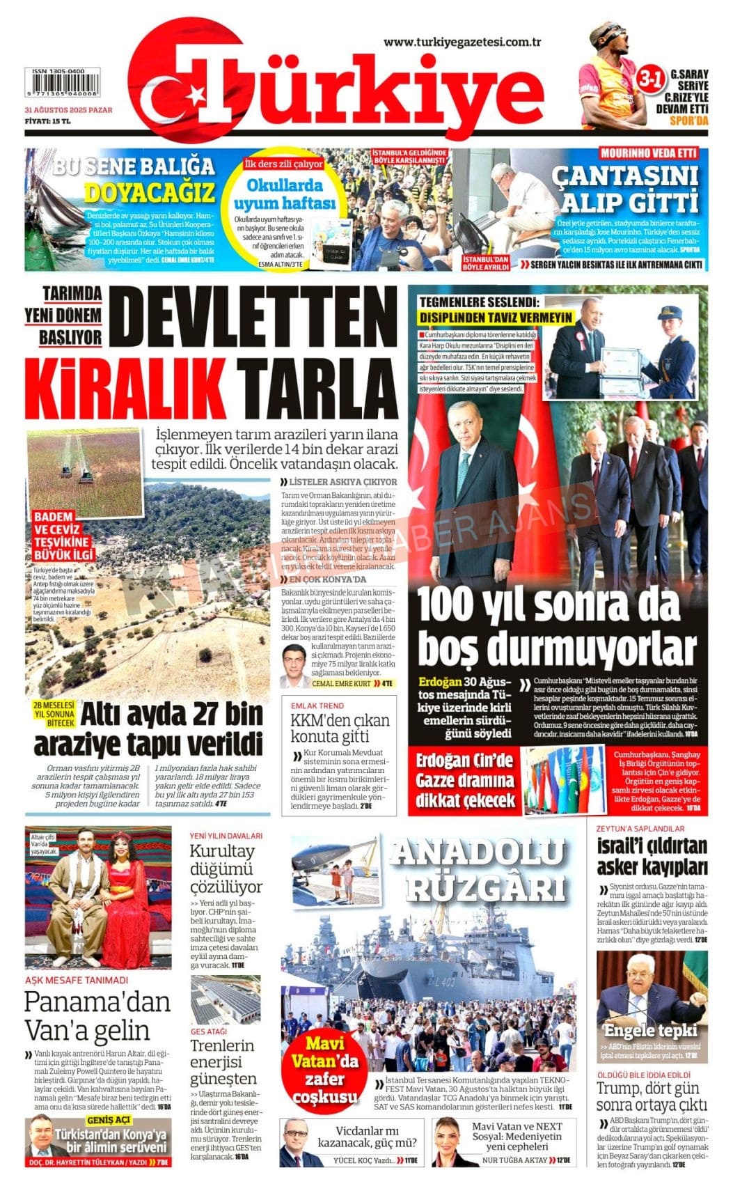 KIBRIS -TÜRKİYE Gazetelerinde Günün Manşetleri (31 AĞUSTOS 2025)