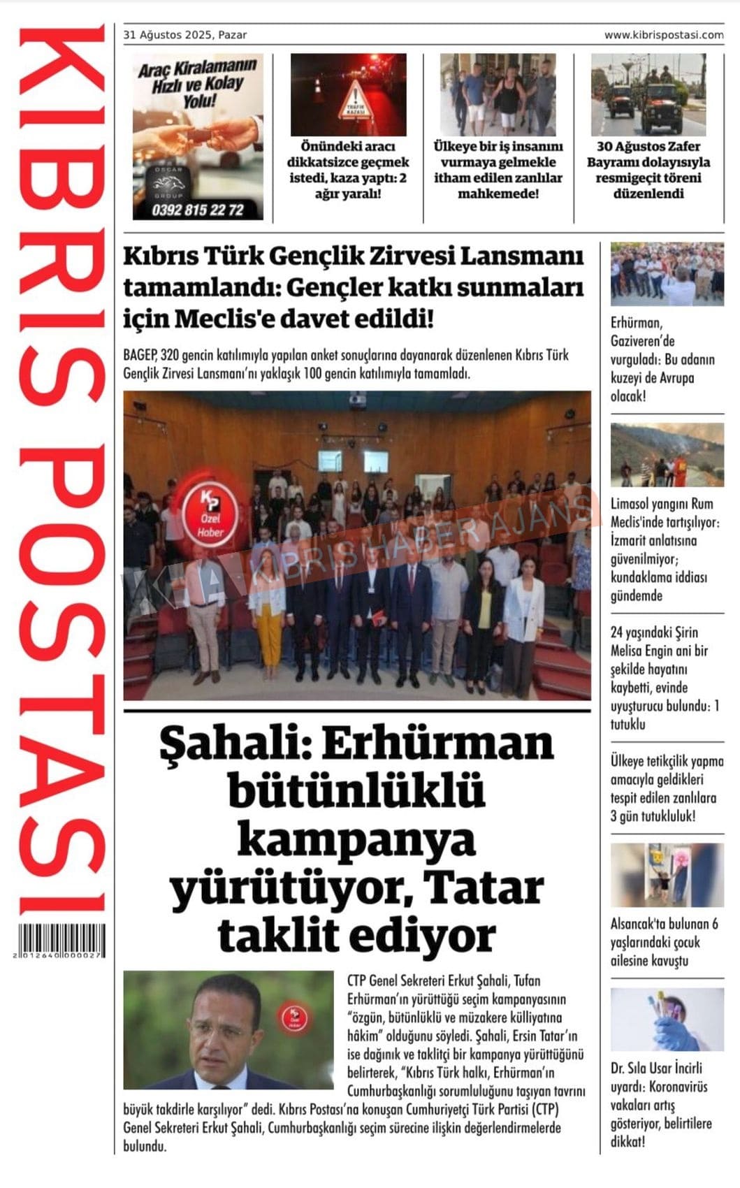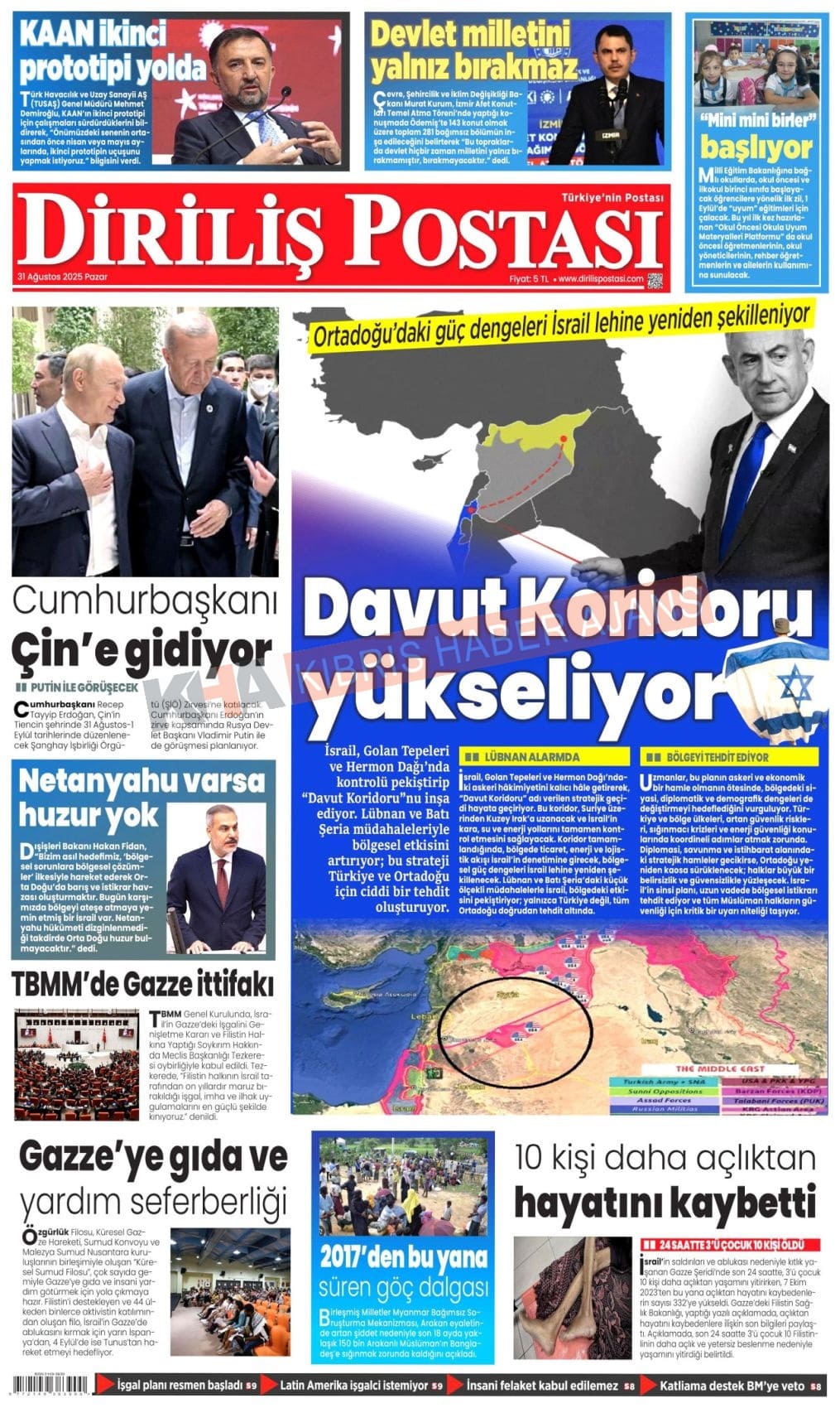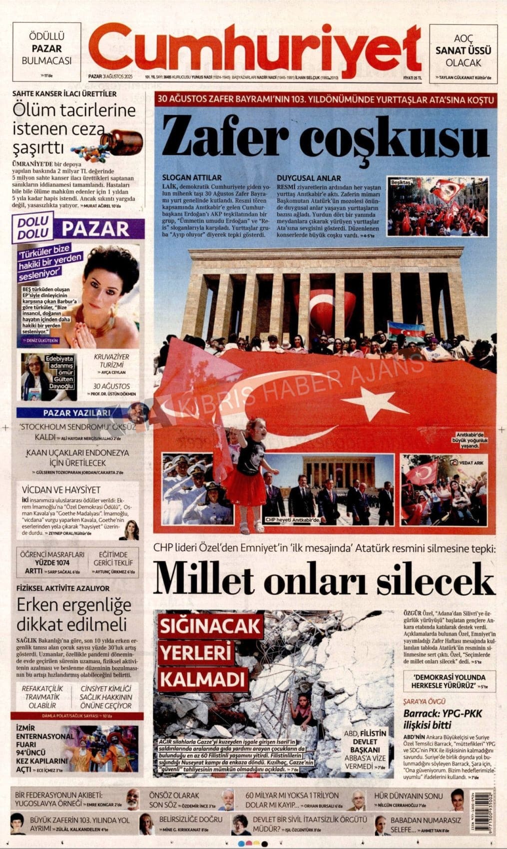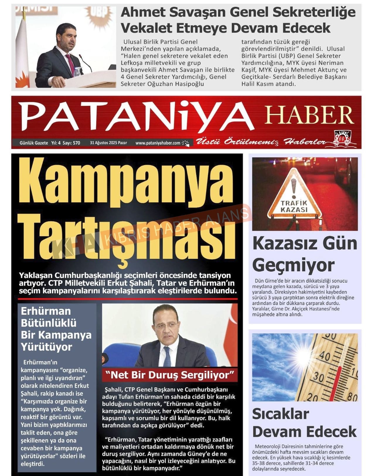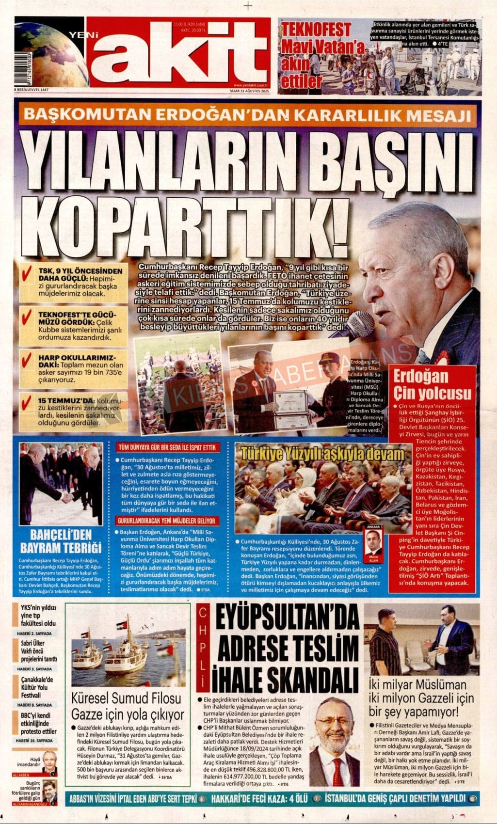 KIBRIS -TÜRKİYE Gazetelerinde Günün Manşetleri (31 AĞUSTOS 2025)