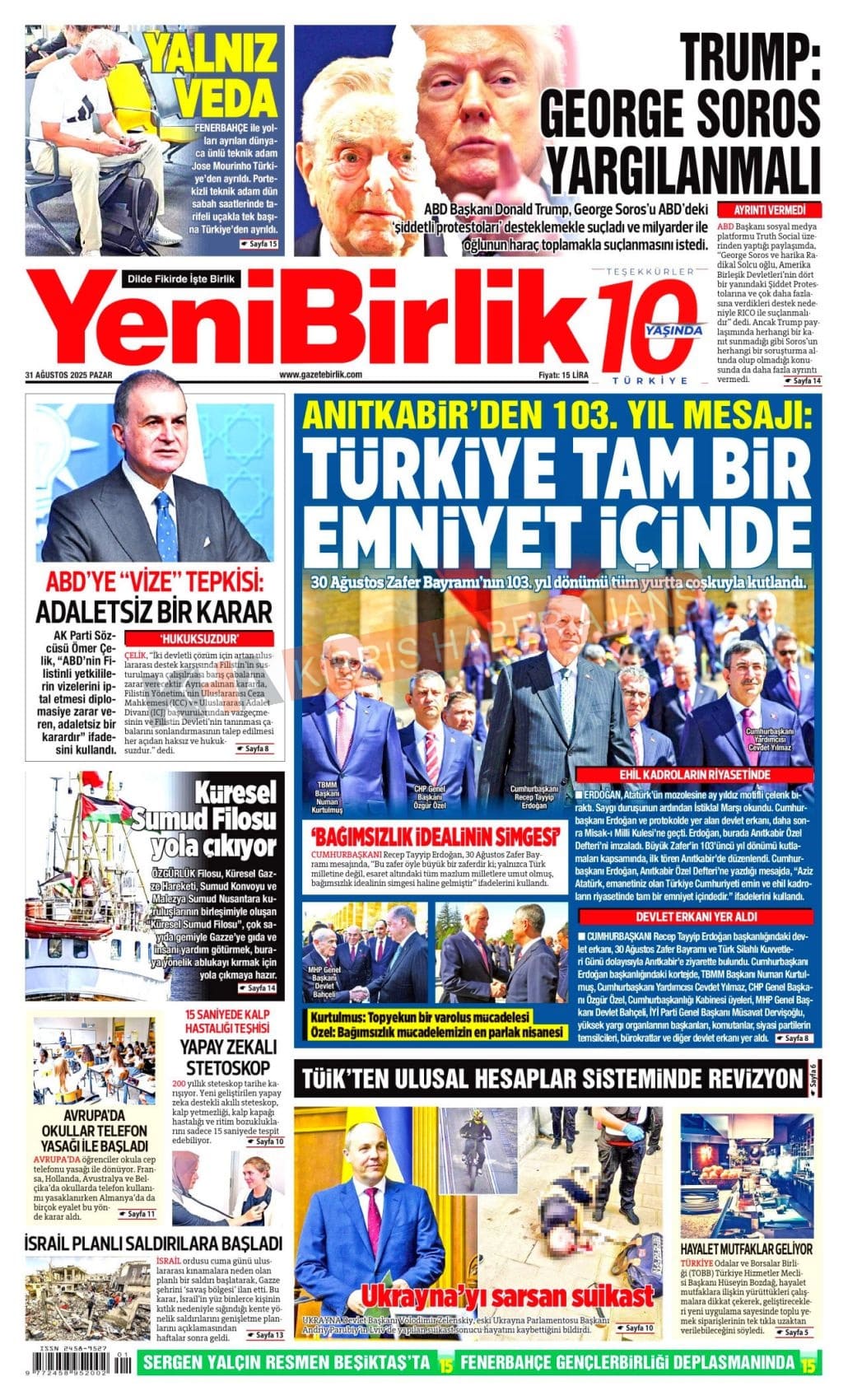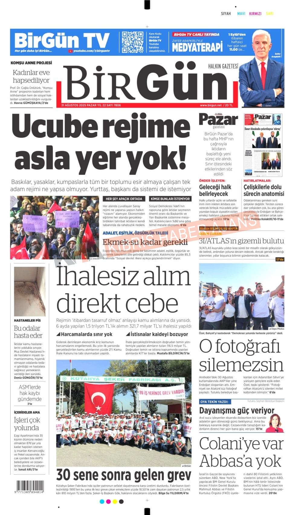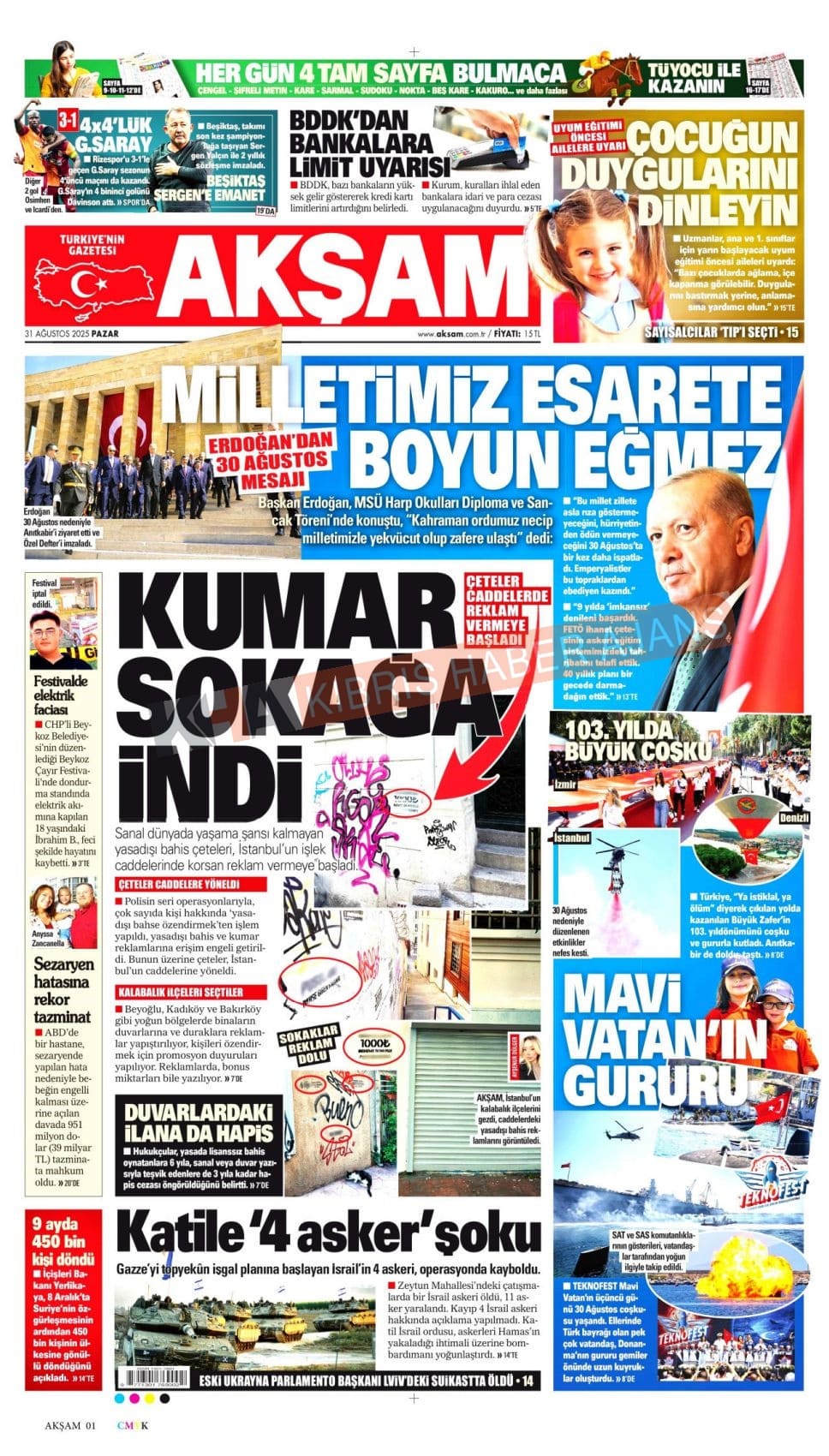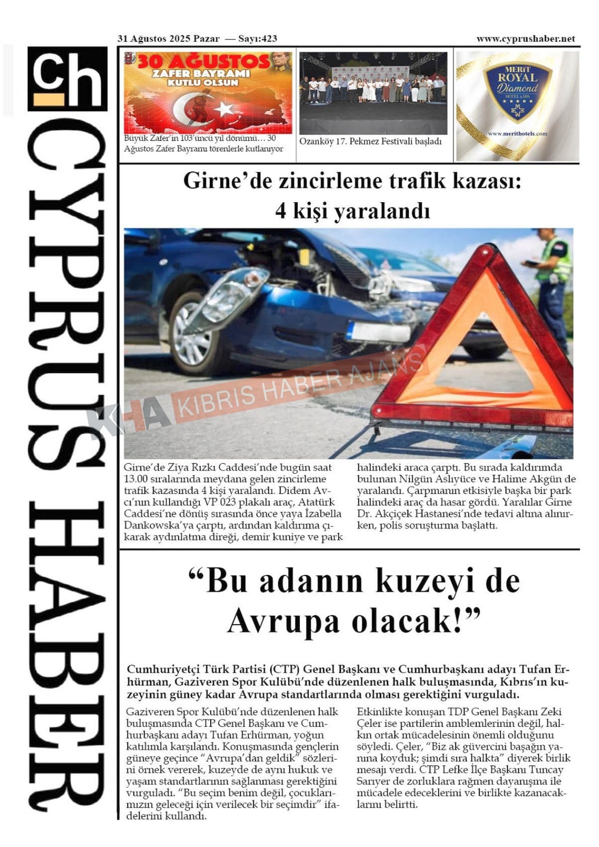 KIBRIS -TÜRKİYE Gazetelerinde Günün Manşetleri (31 AĞUSTOS 2025)