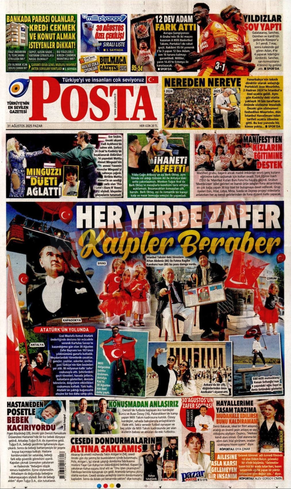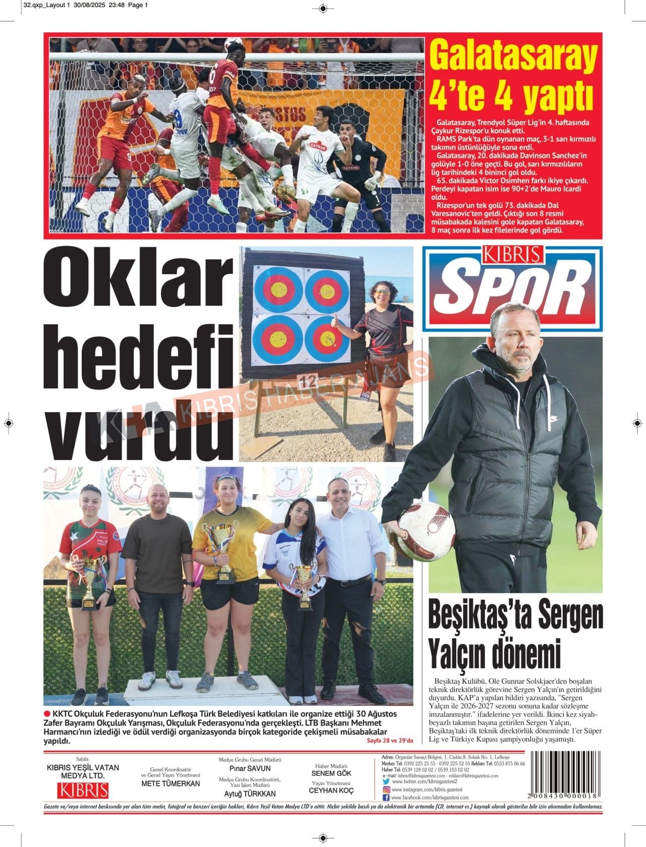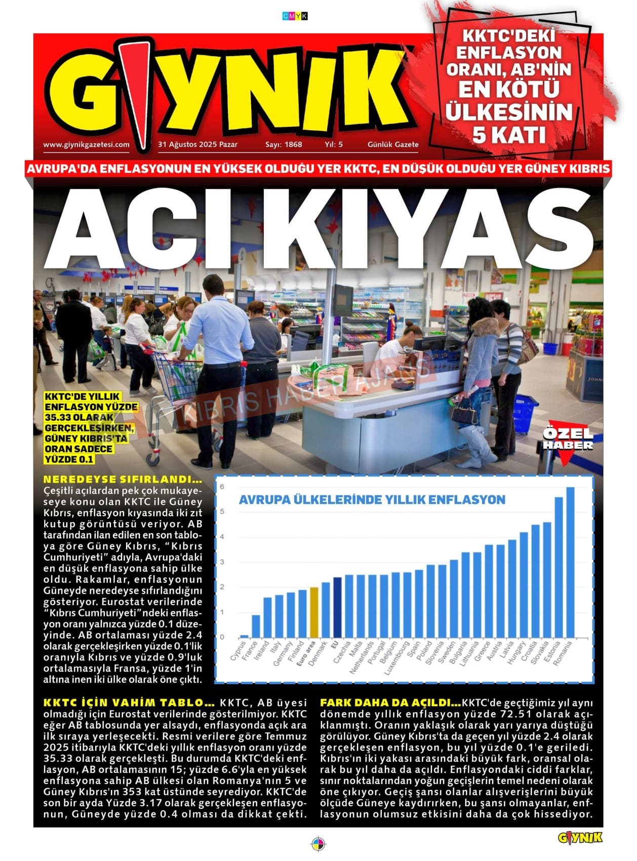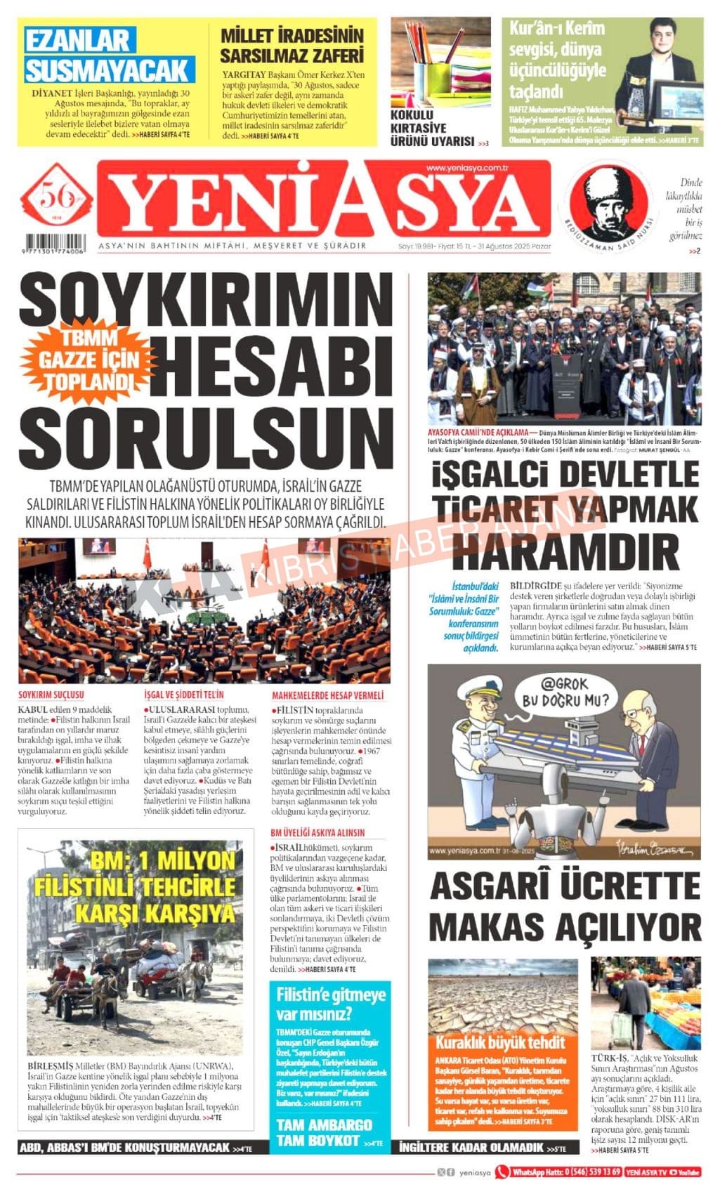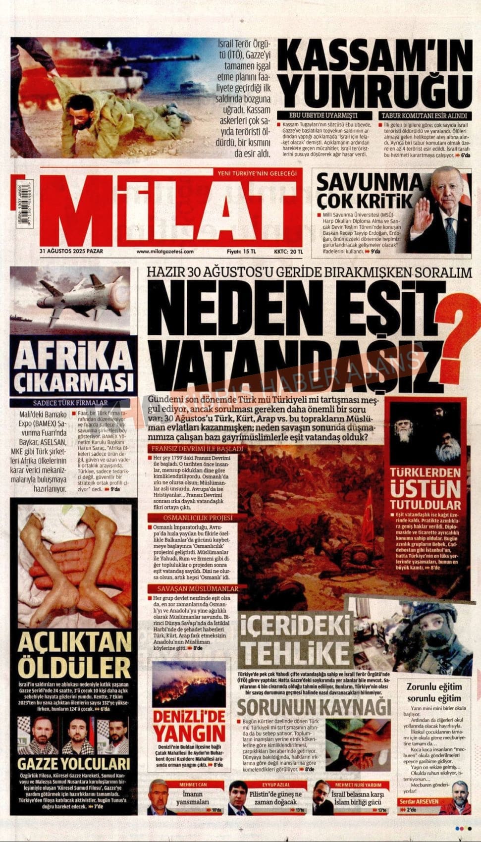 KIBRIS -TÜRKİYE Gazetelerinde Günün Manşetleri (31 AĞUSTOS 2025)