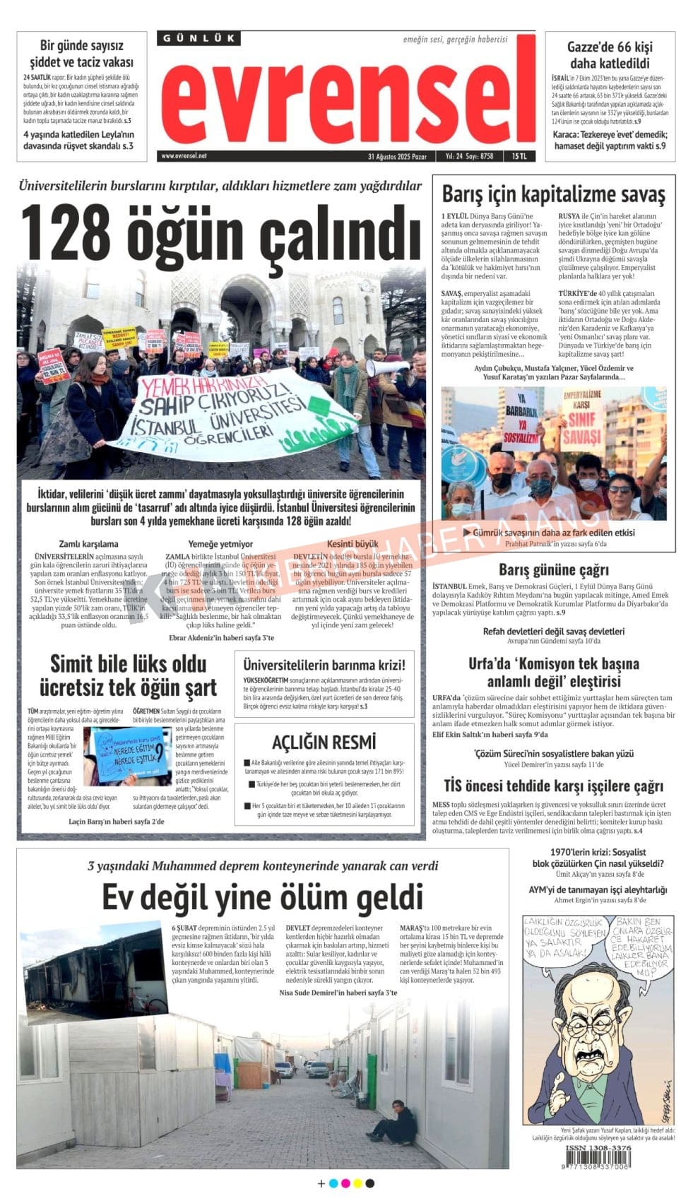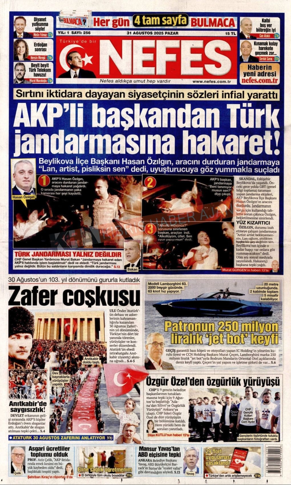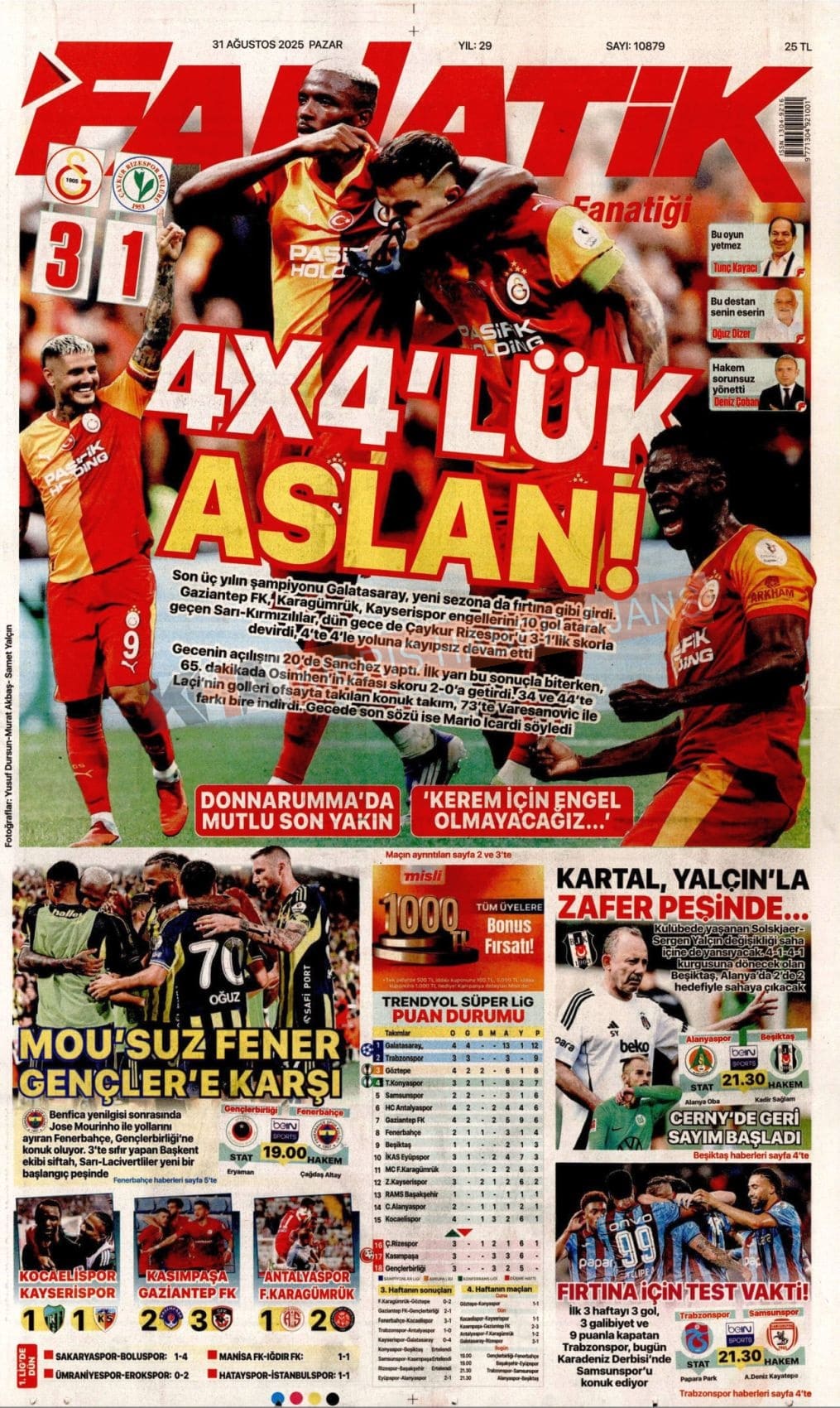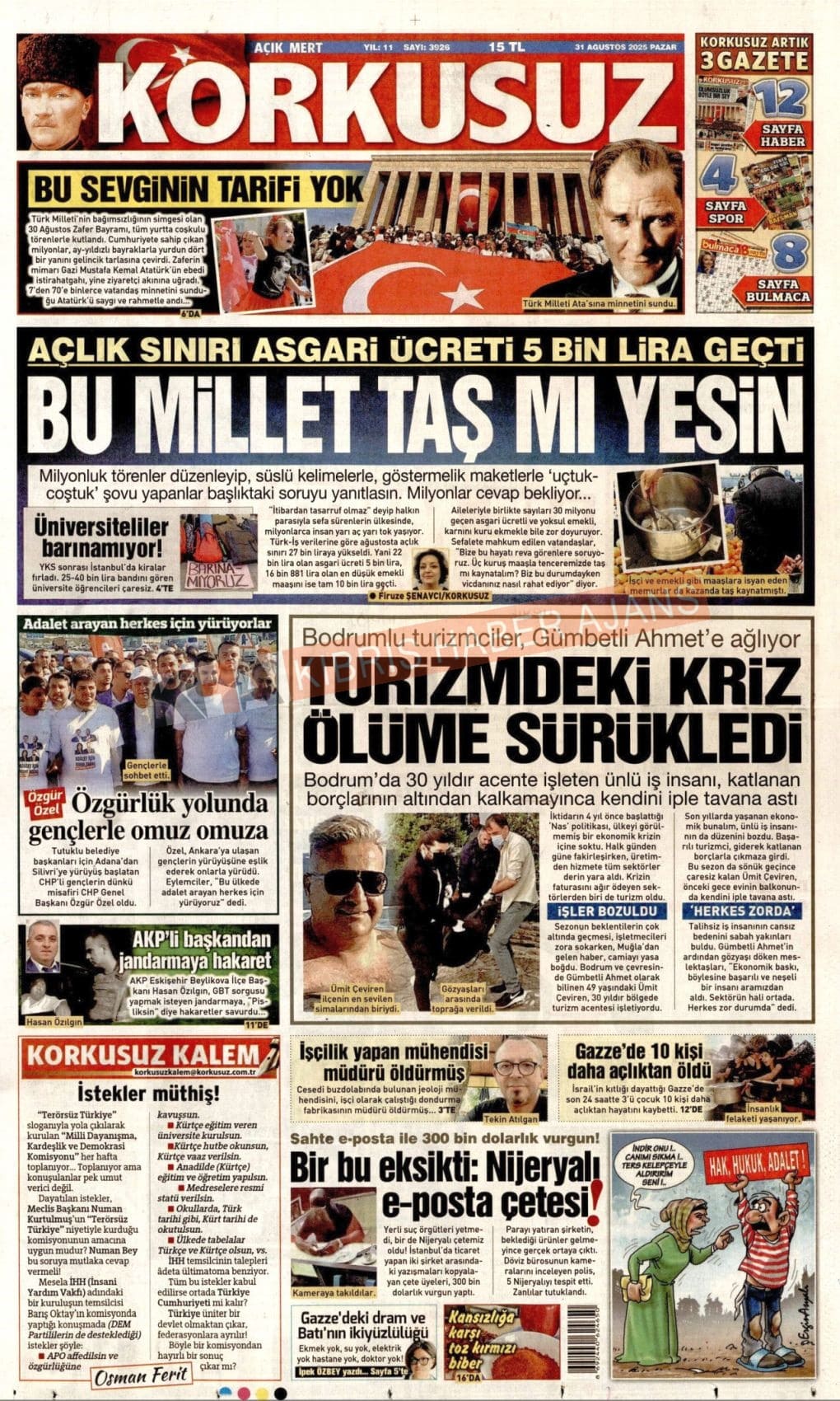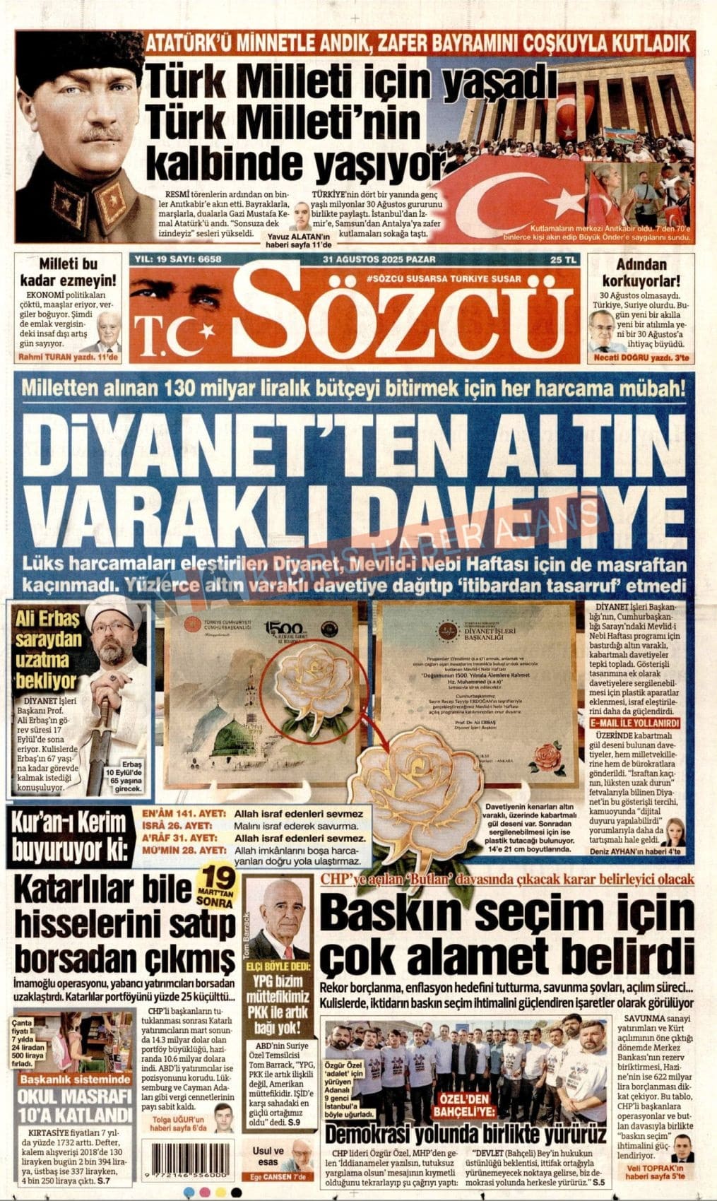 KIBRIS -TÜRKİYE Gazetelerinde Günün Manşetleri (31 AĞUSTOS 2025)