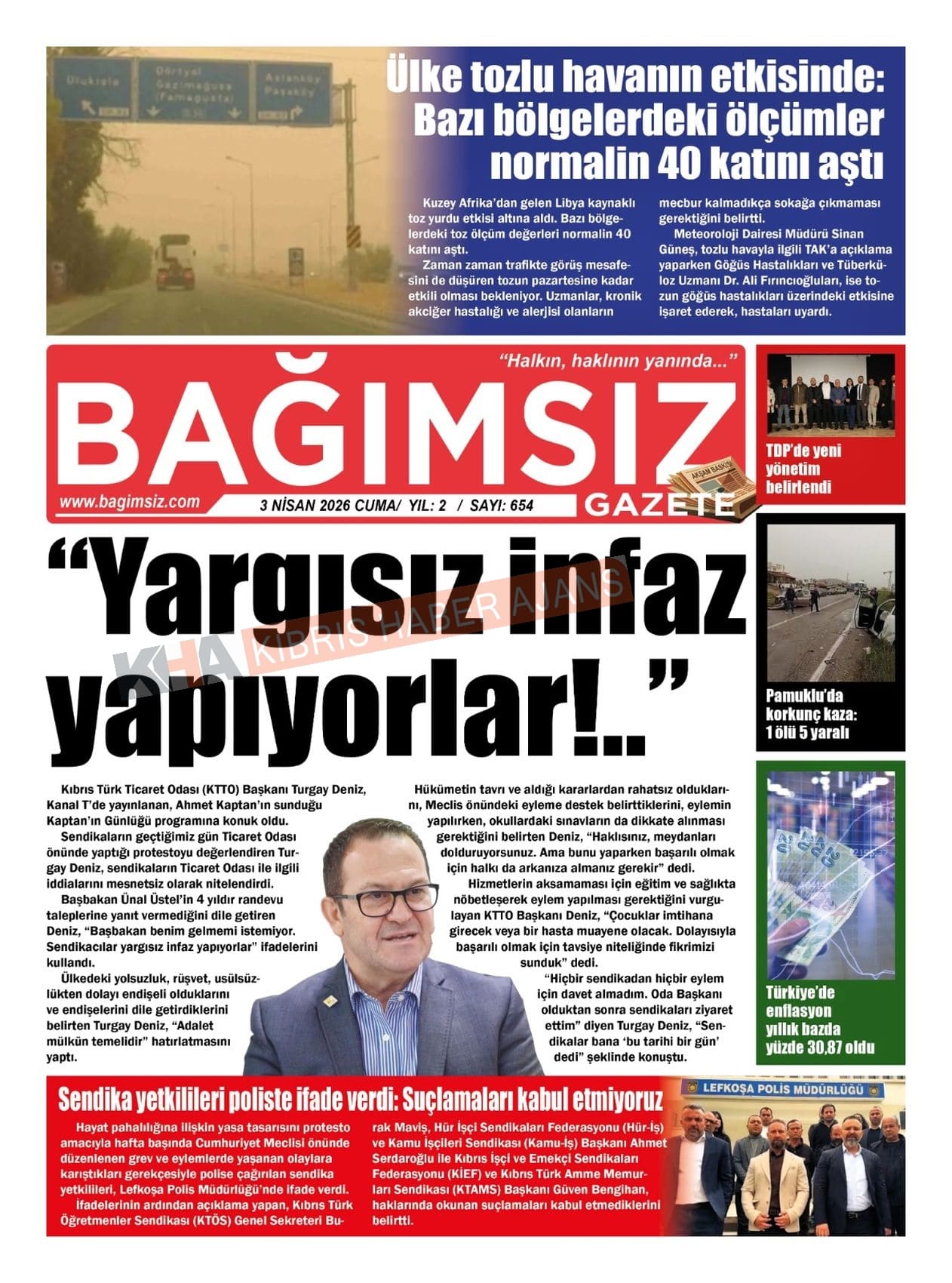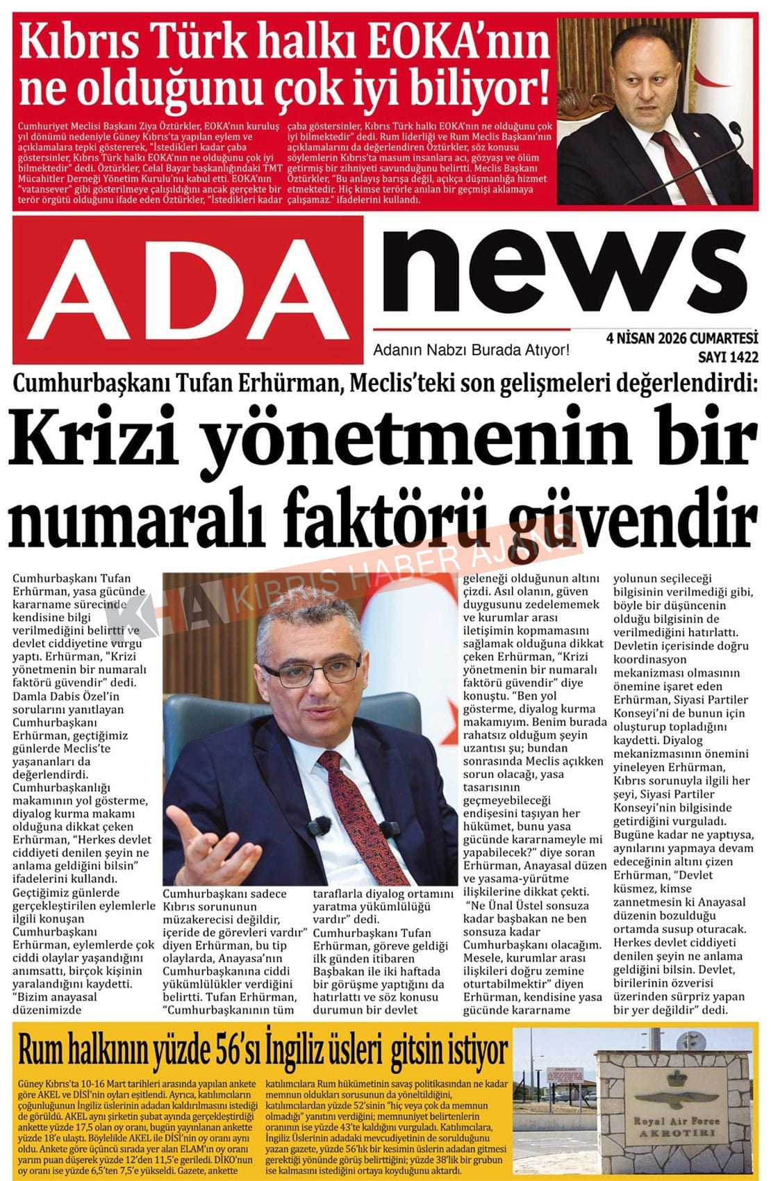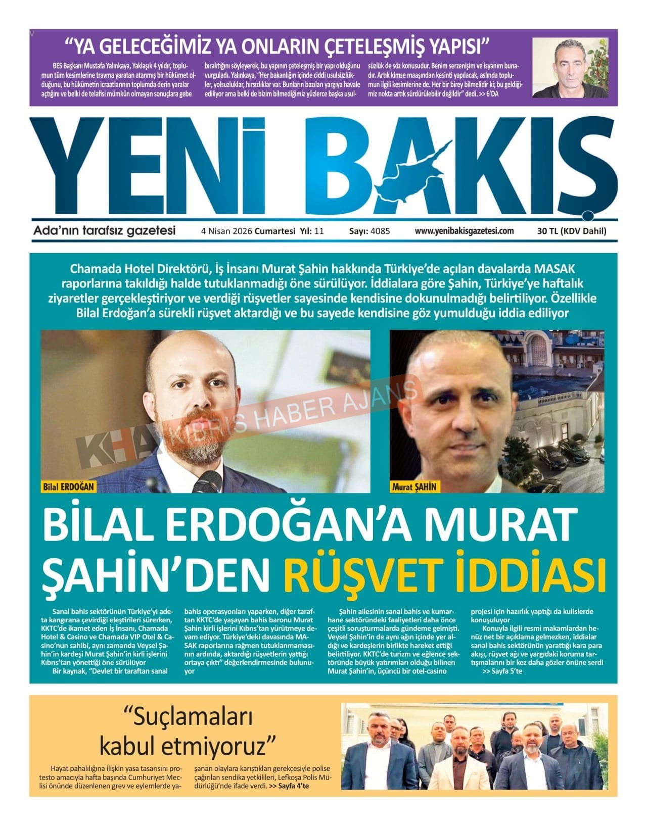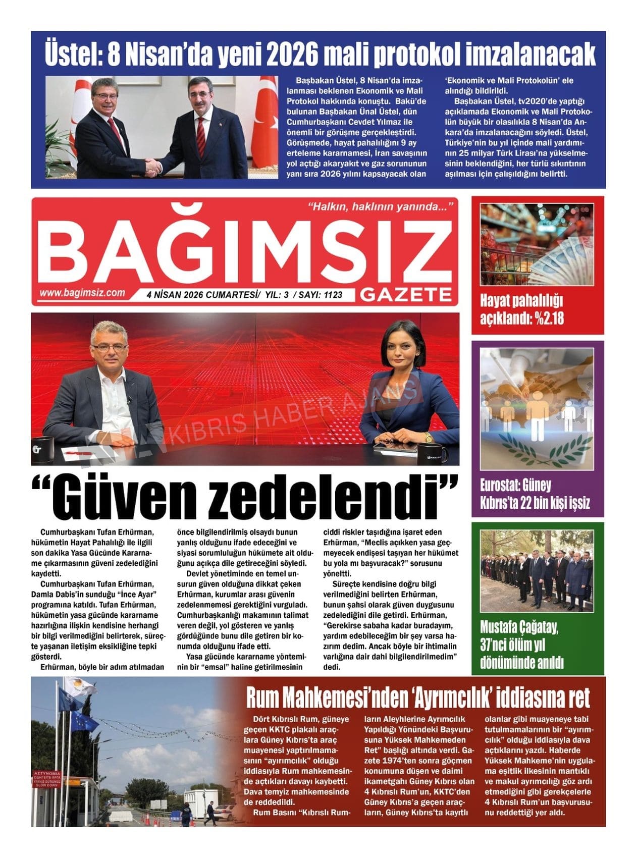 Sitede yayınlanan gazetelerdeki içeriklerden gazete sahipleri sorumludur. Yayınlanan gazeteler ve içeriklerinden Kıbrıs Haber Ajans ve Ajans Cyprus sorumlu tutulamaz.