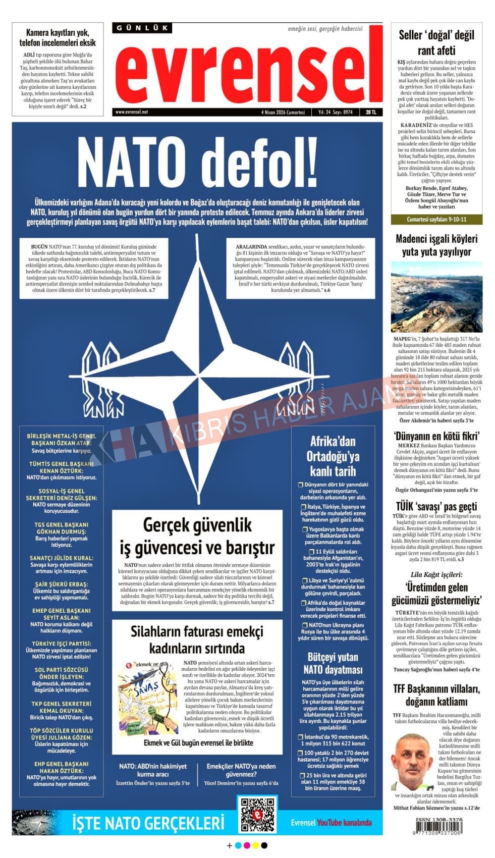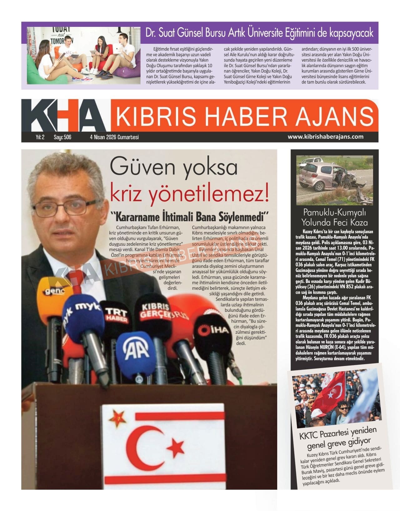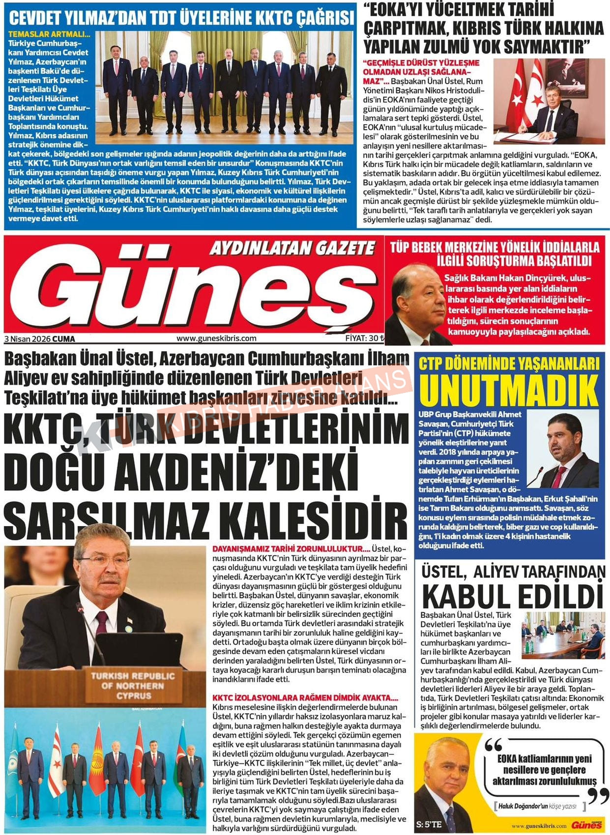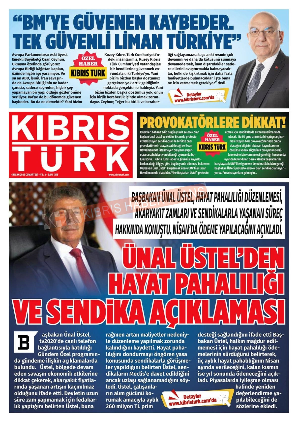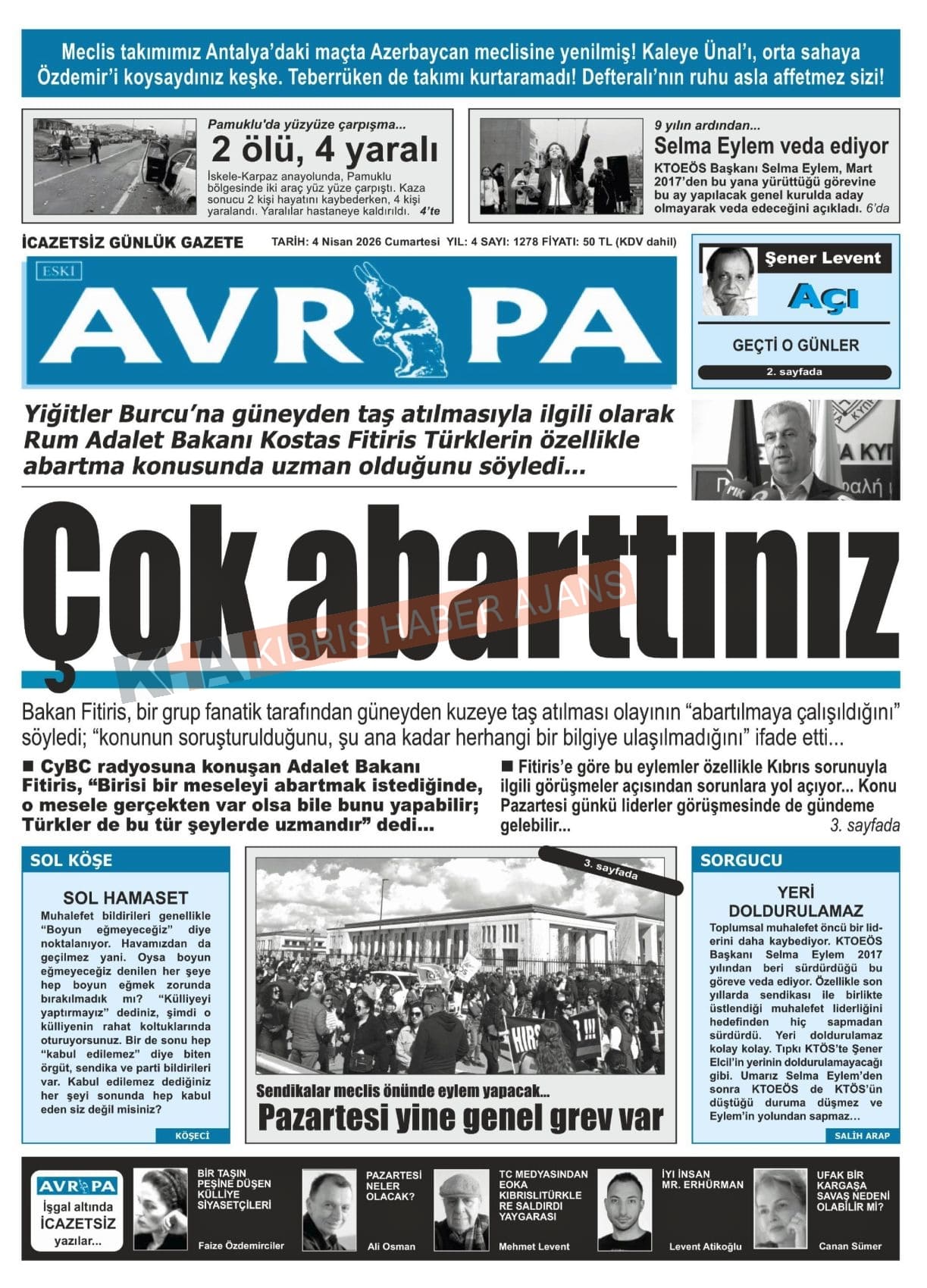 Sitede yayınlanan gazetelerdeki içeriklerden gazete sahipleri sorumludur. Yayınlanan gazeteler ve içeriklerinden Kıbrıs Haber Ajans ve Ajans Cyprus sorumlu tutulamaz.