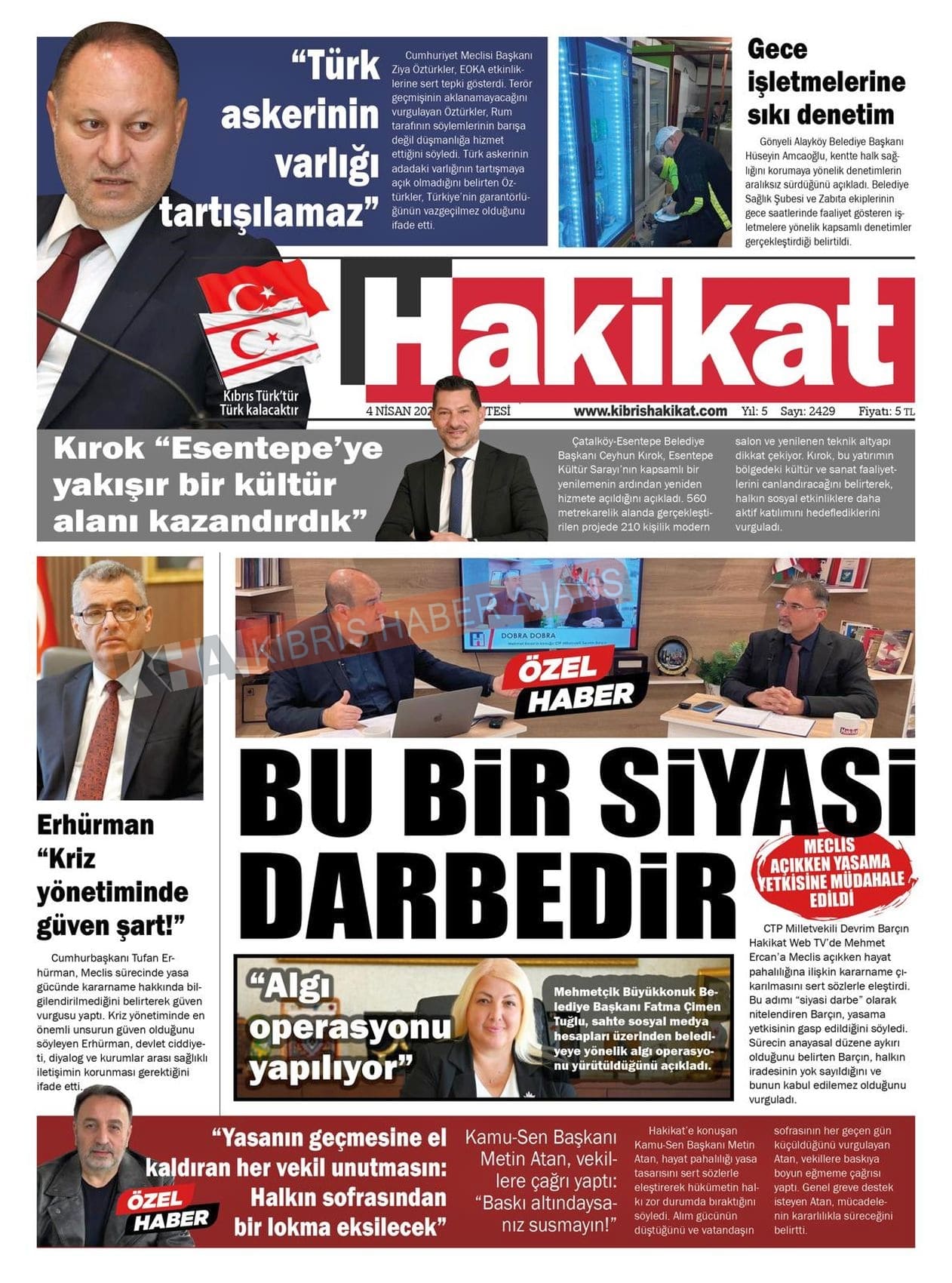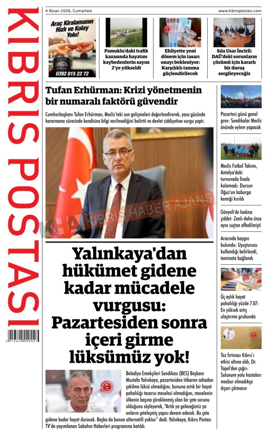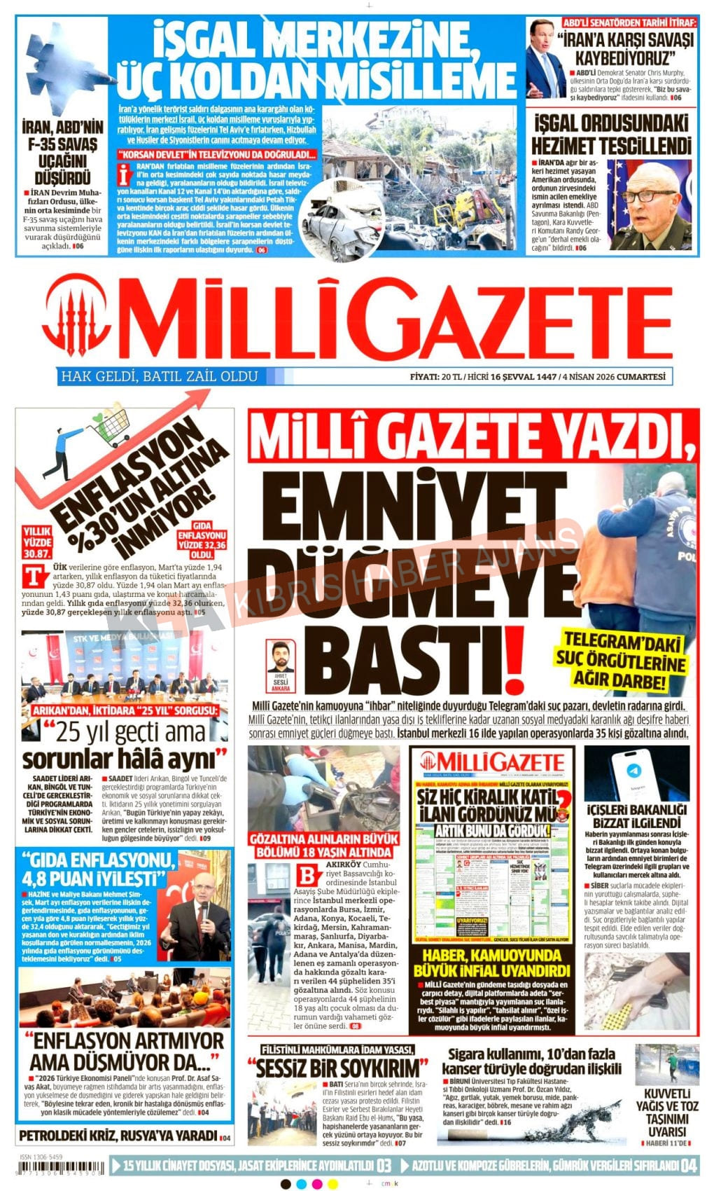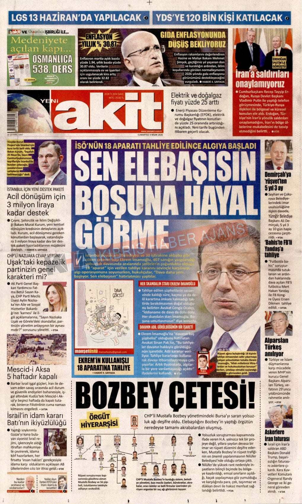 Sitede yayınlanan gazetelerdeki içeriklerden gazete sahipleri sorumludur. Yayınlanan gazeteler ve içeriklerinden Kıbrıs Haber Ajans ve Ajans Cyprus sorumlu tutulamaz.