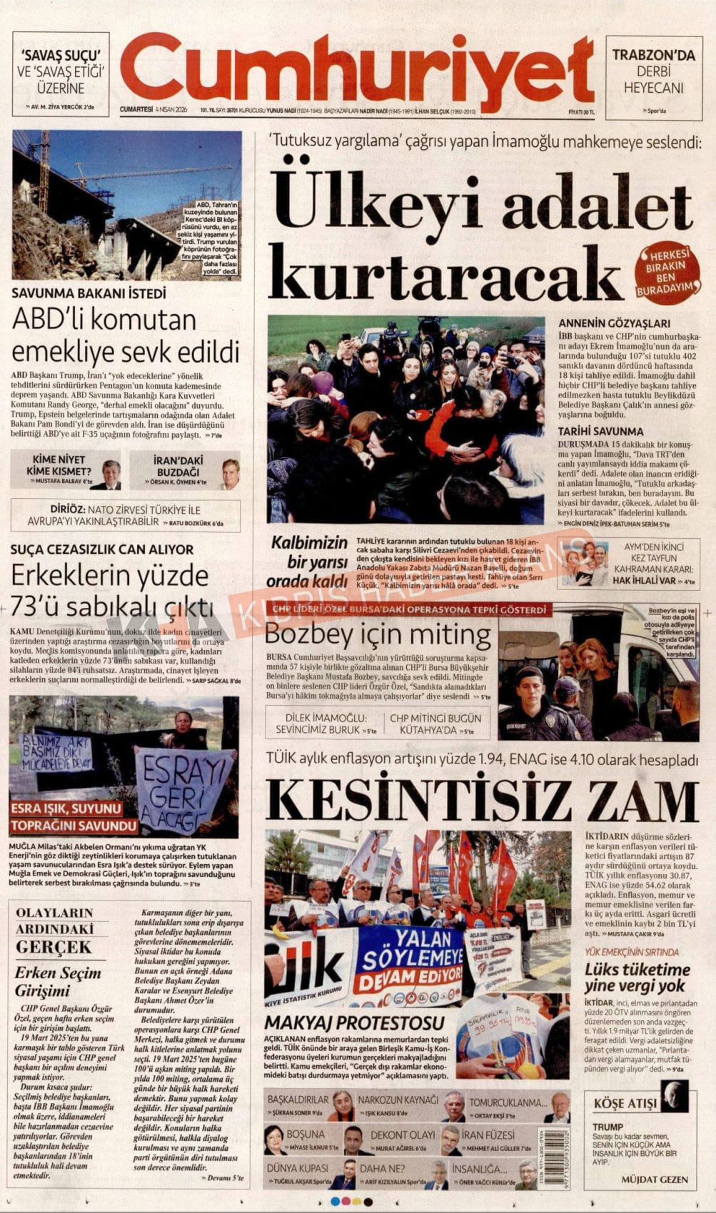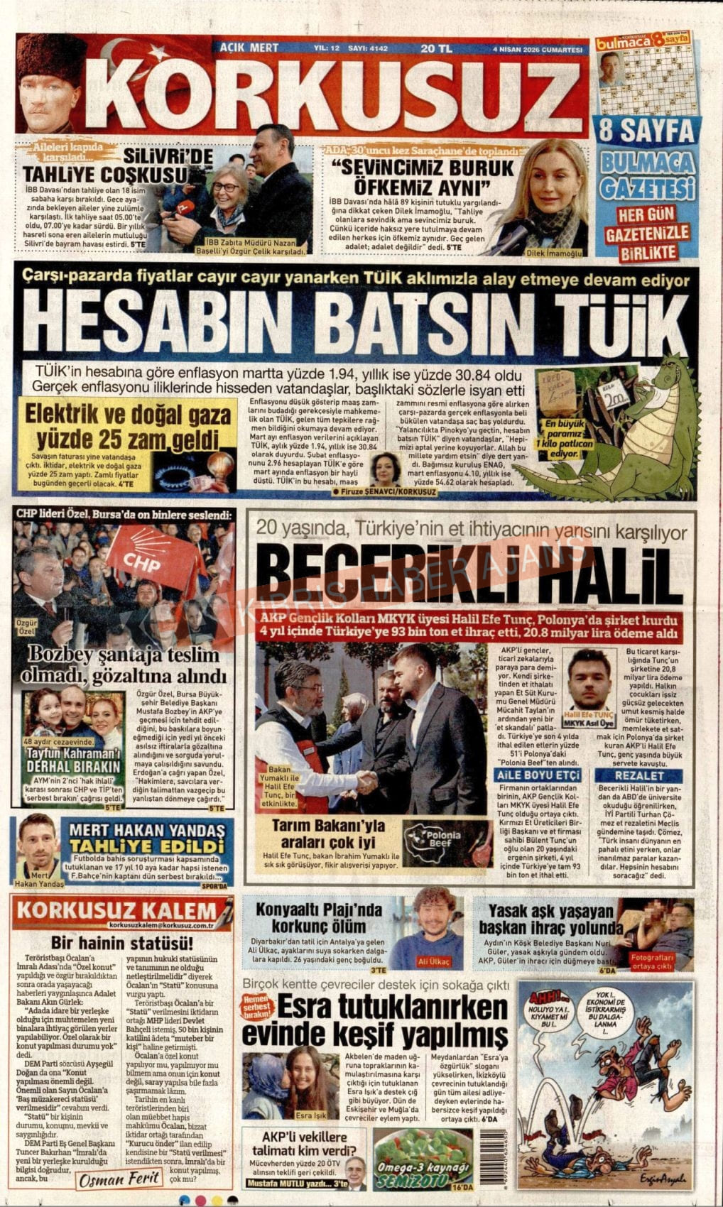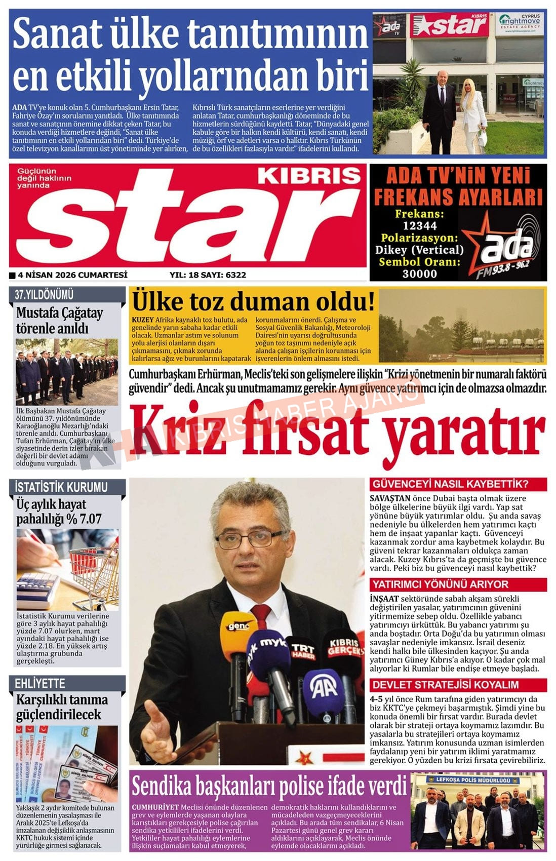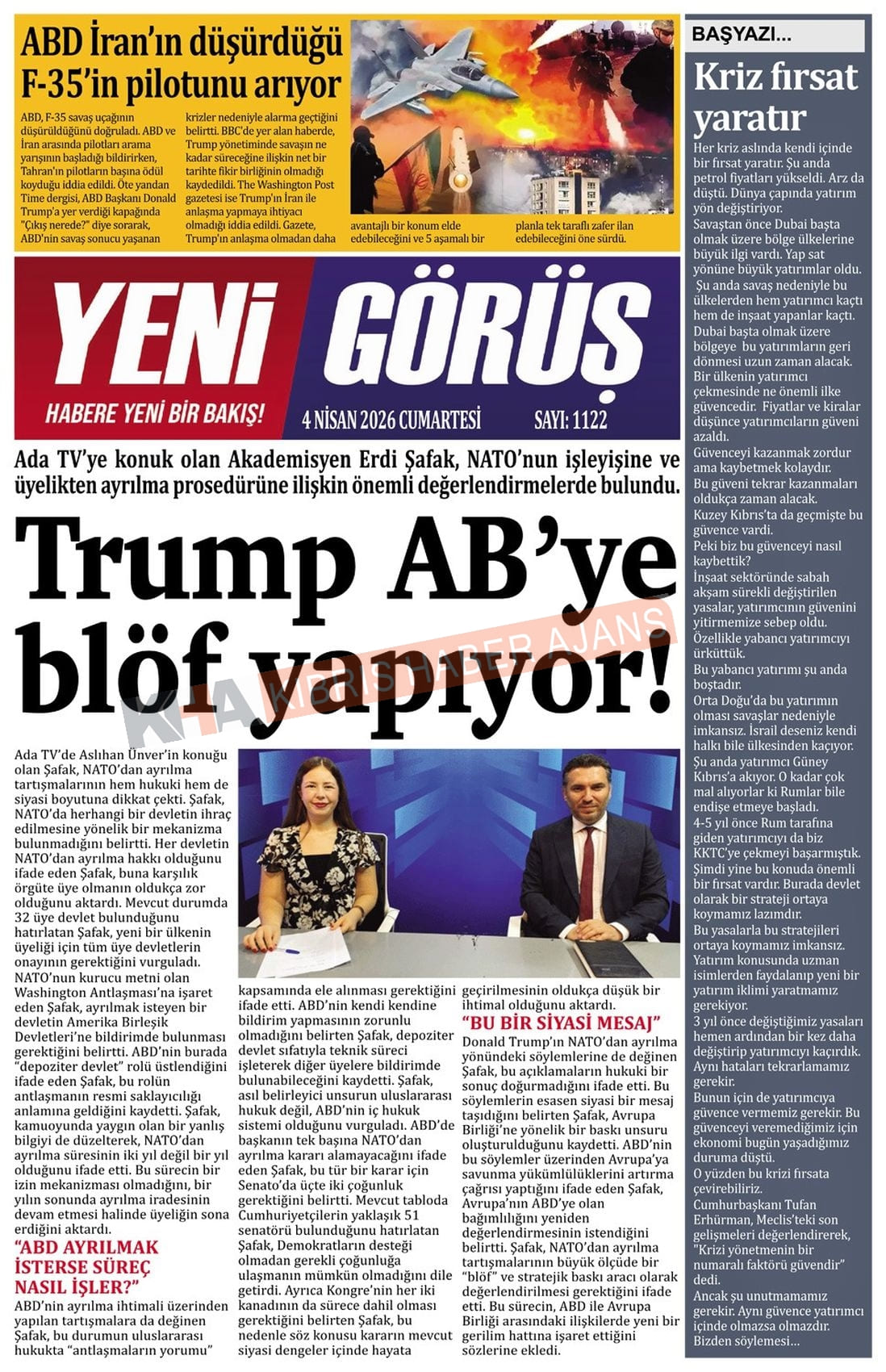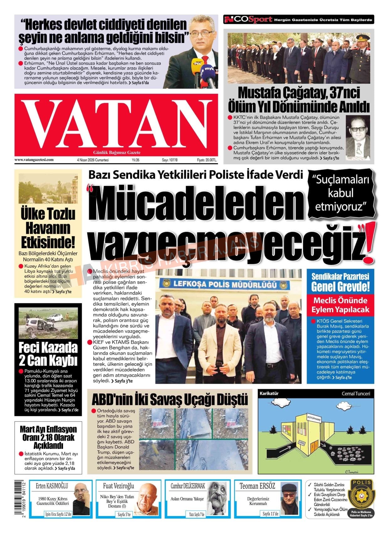 Sitede yayınlanan gazetelerdeki içeriklerden gazete sahipleri sorumludur. Yayınlanan gazeteler ve içeriklerinden Kıbrıs Haber Ajans ve Ajans Cyprus sorumlu tutulamaz.