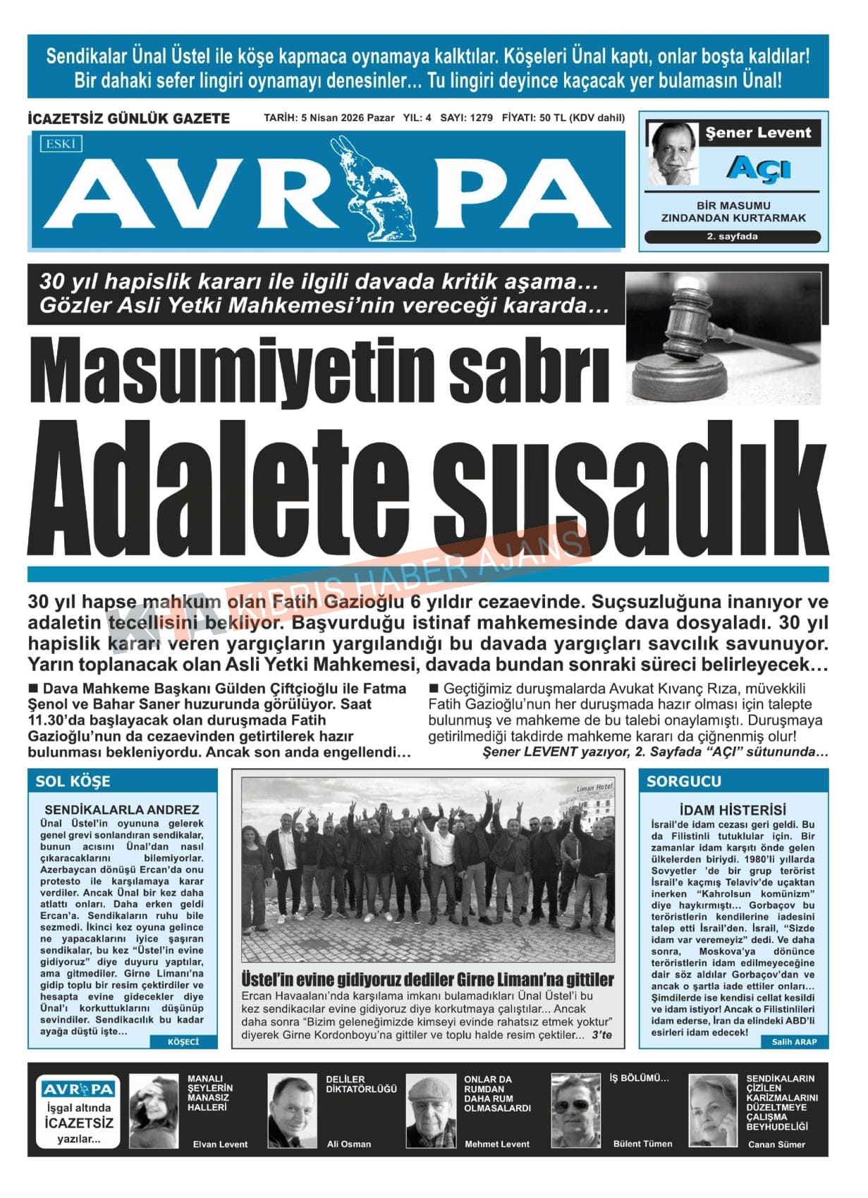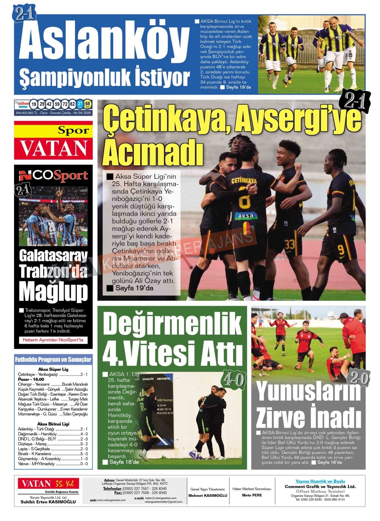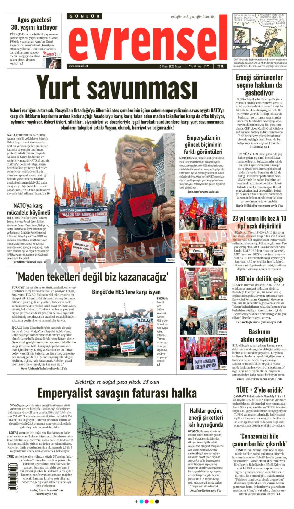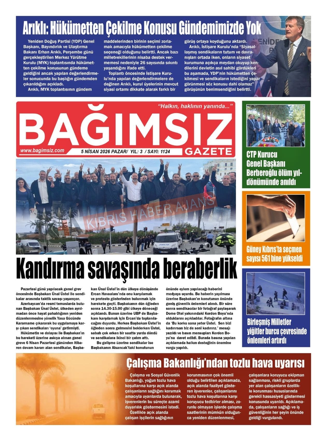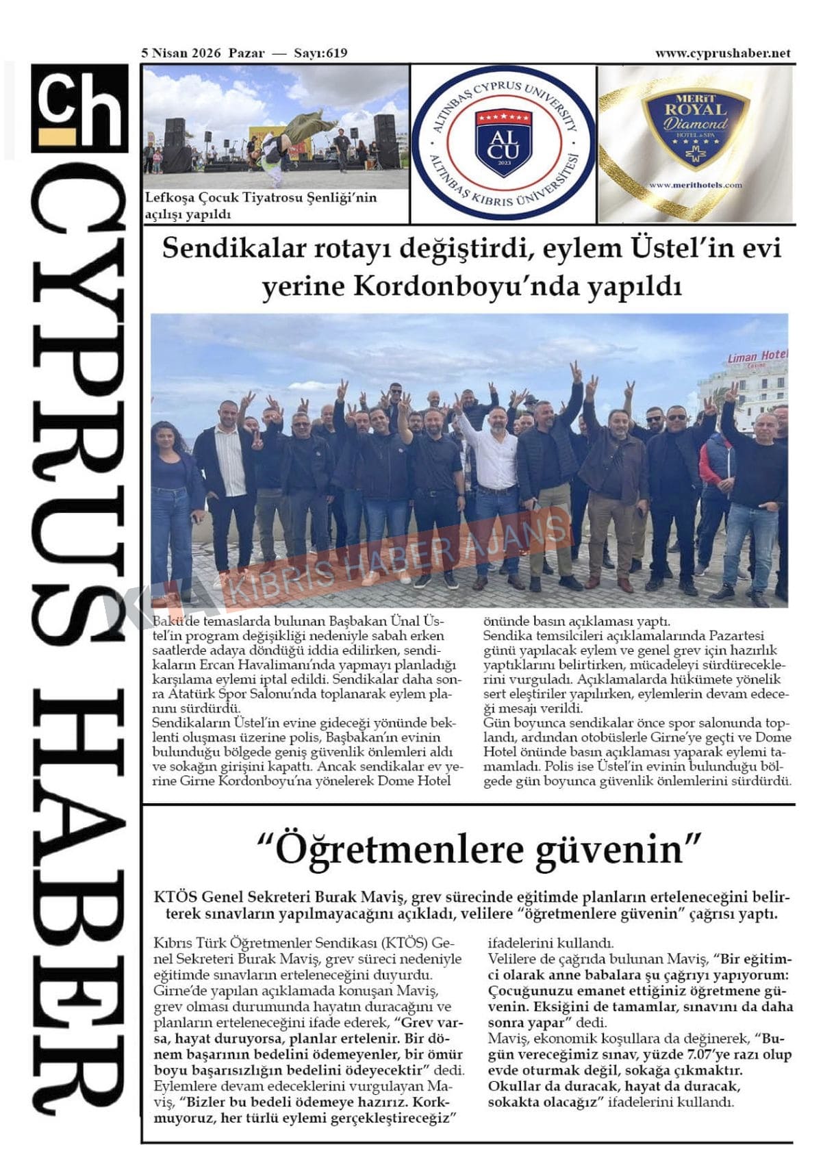 Sitede yayınlanan gazetelerdeki içeriklerden gazete sahipleri sorumludur. Yayınlanan gazeteler ve içeriklerinden Kıbrıs Haber Ajans ve Ajans Cyprus sorumlu tutulamaz.