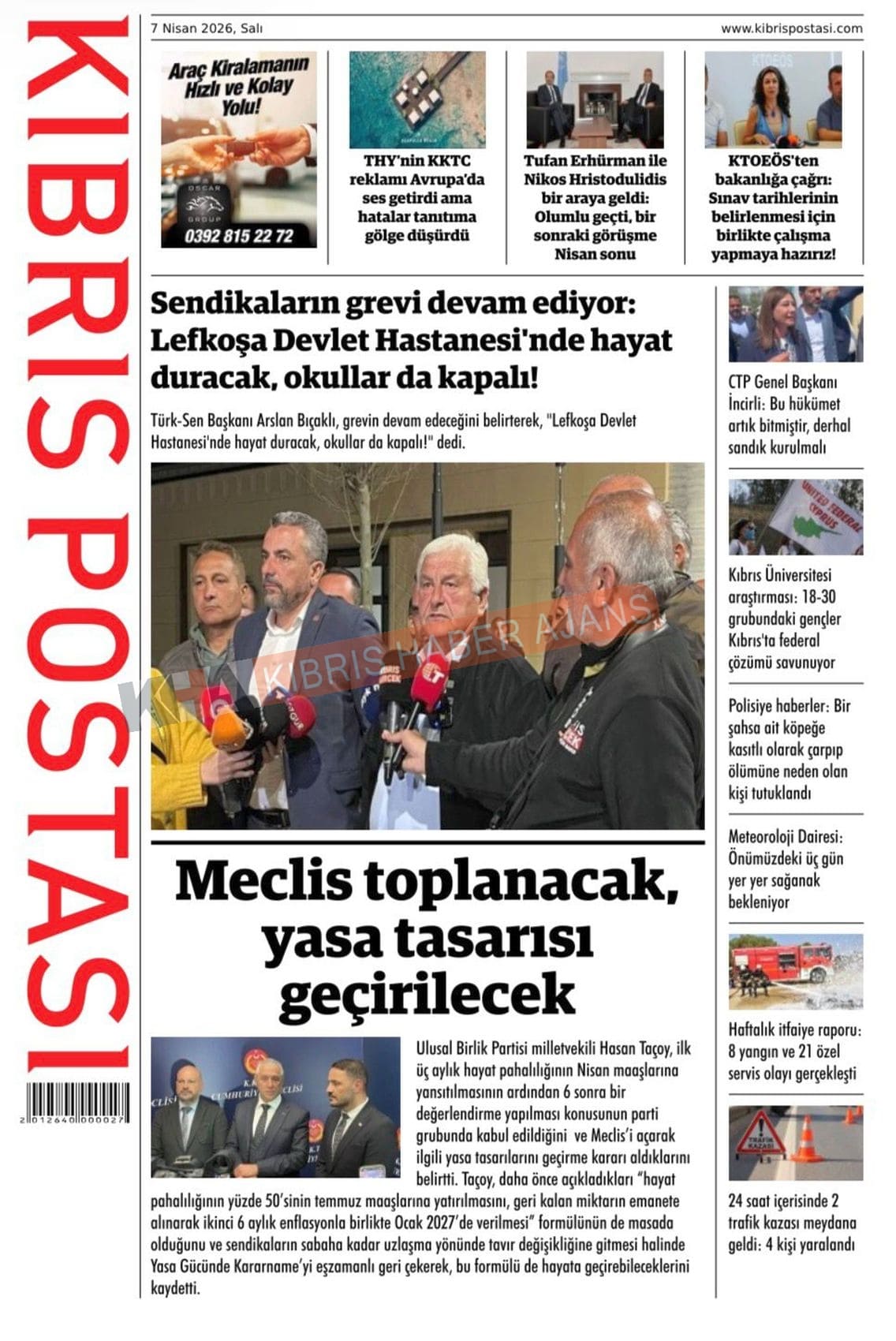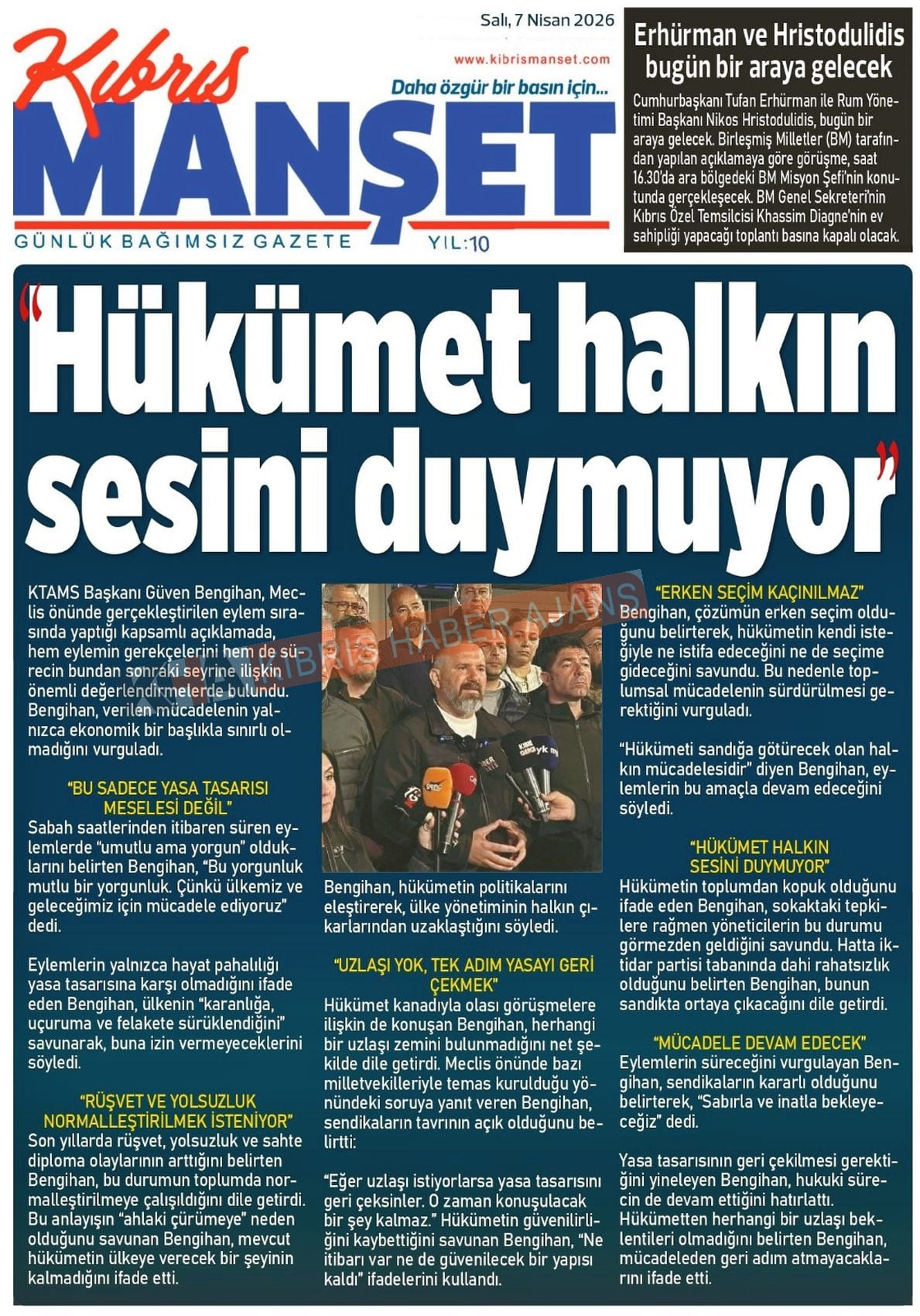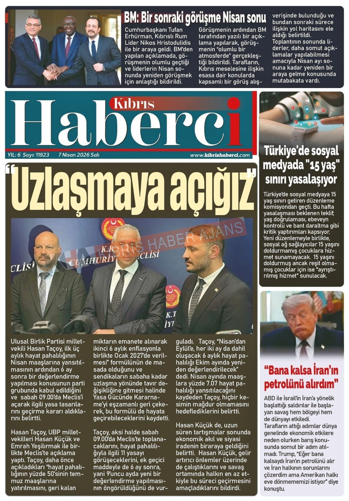 KKTC-TC Gazetelerinde Bugün (07 NİSAN 2026)