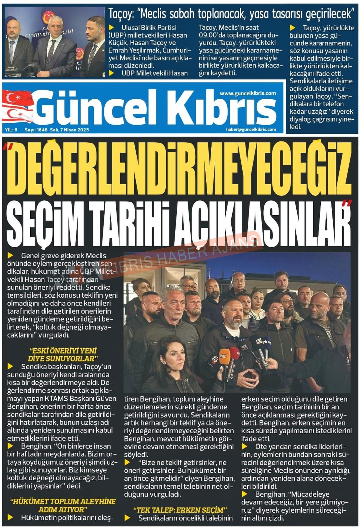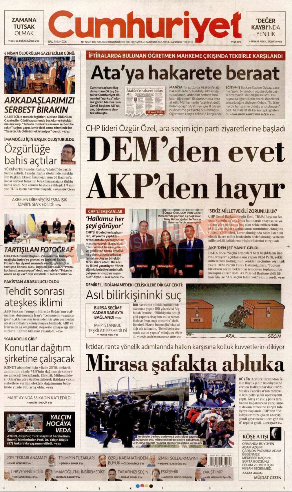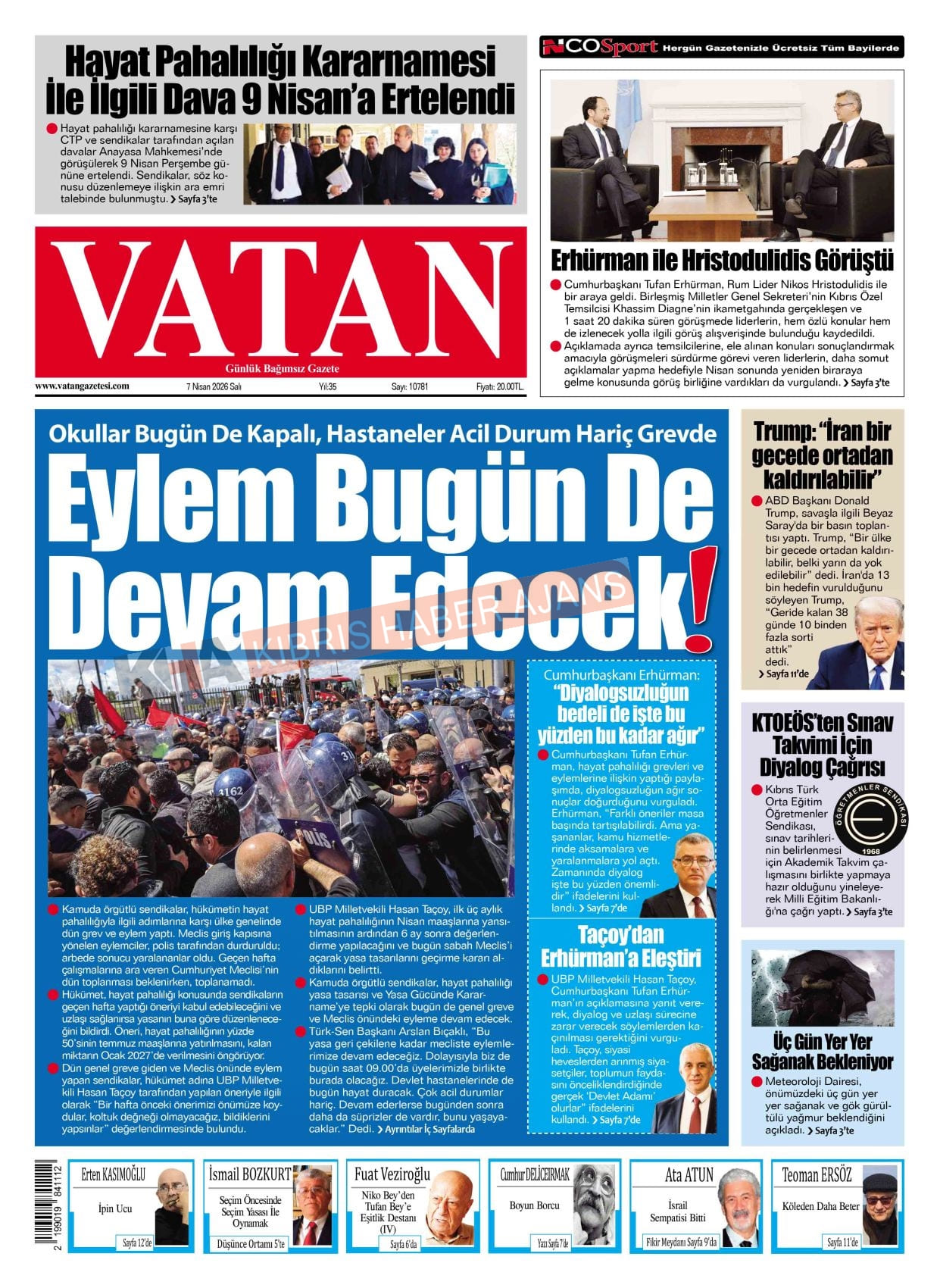 KKTC-TC Gazetelerinde Bugün (07 NİSAN 2026)