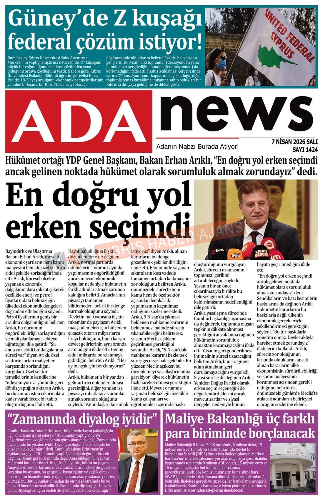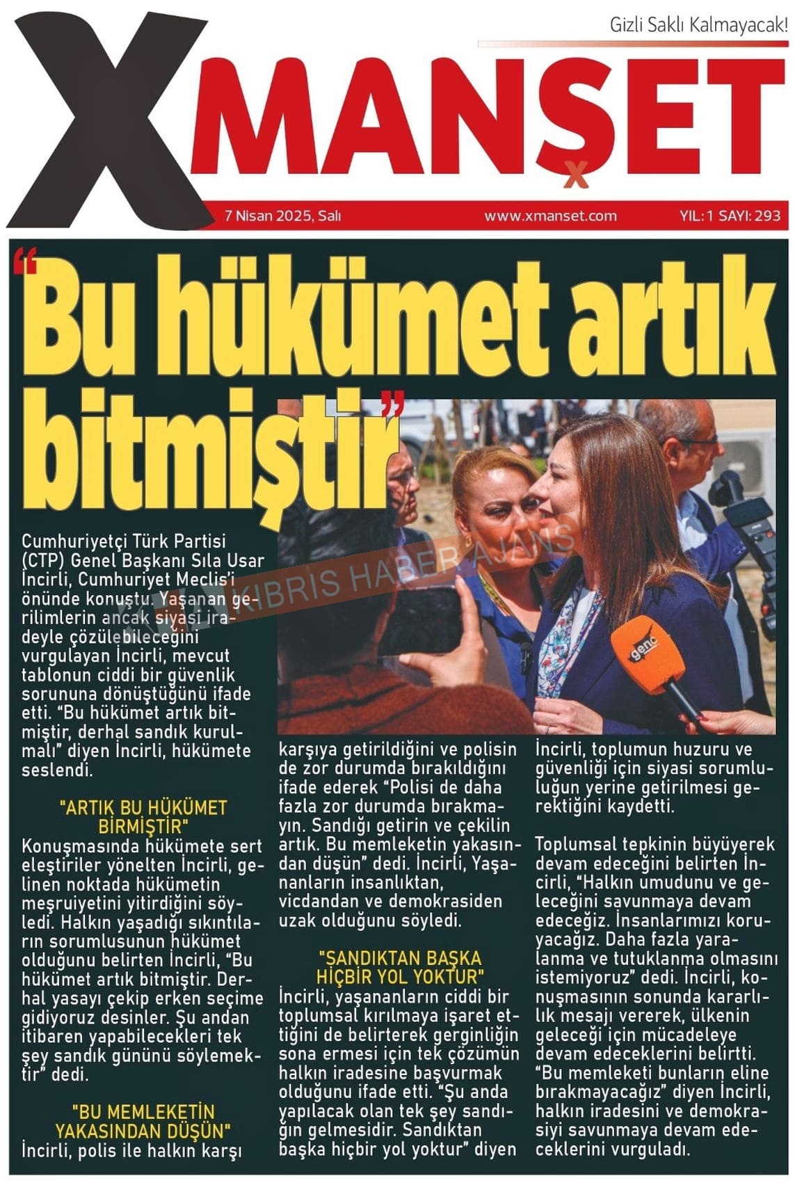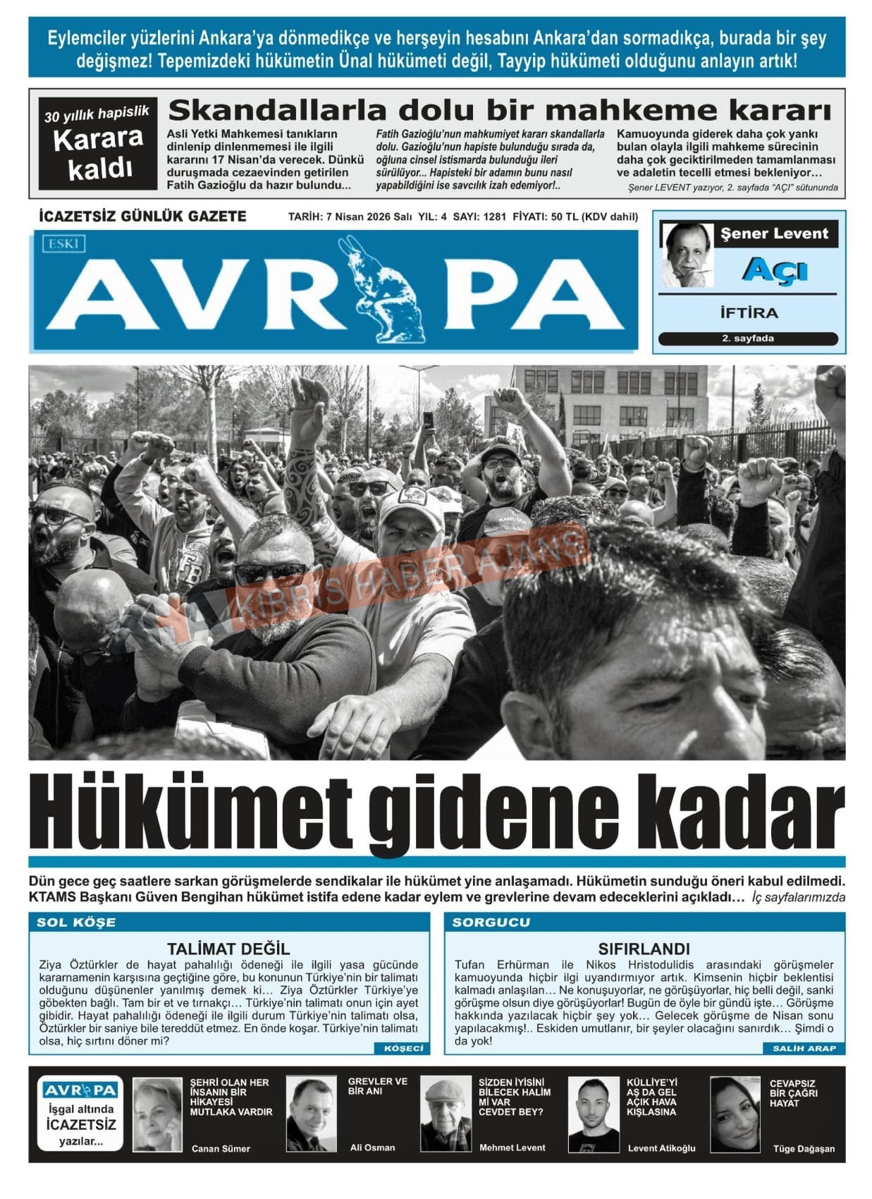 Sitede yayınlanan gazetelerdeki içeriklerden gazete sahipleri sorumludur. Yayınlanan gazeteler ve içeriklerinden Kıbrıs Haber Ajans ve Ajans Cyprus sorumlu tutulamaz.