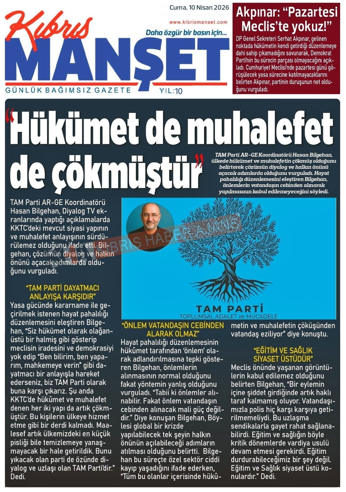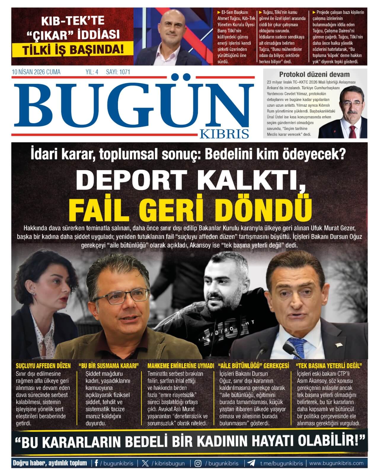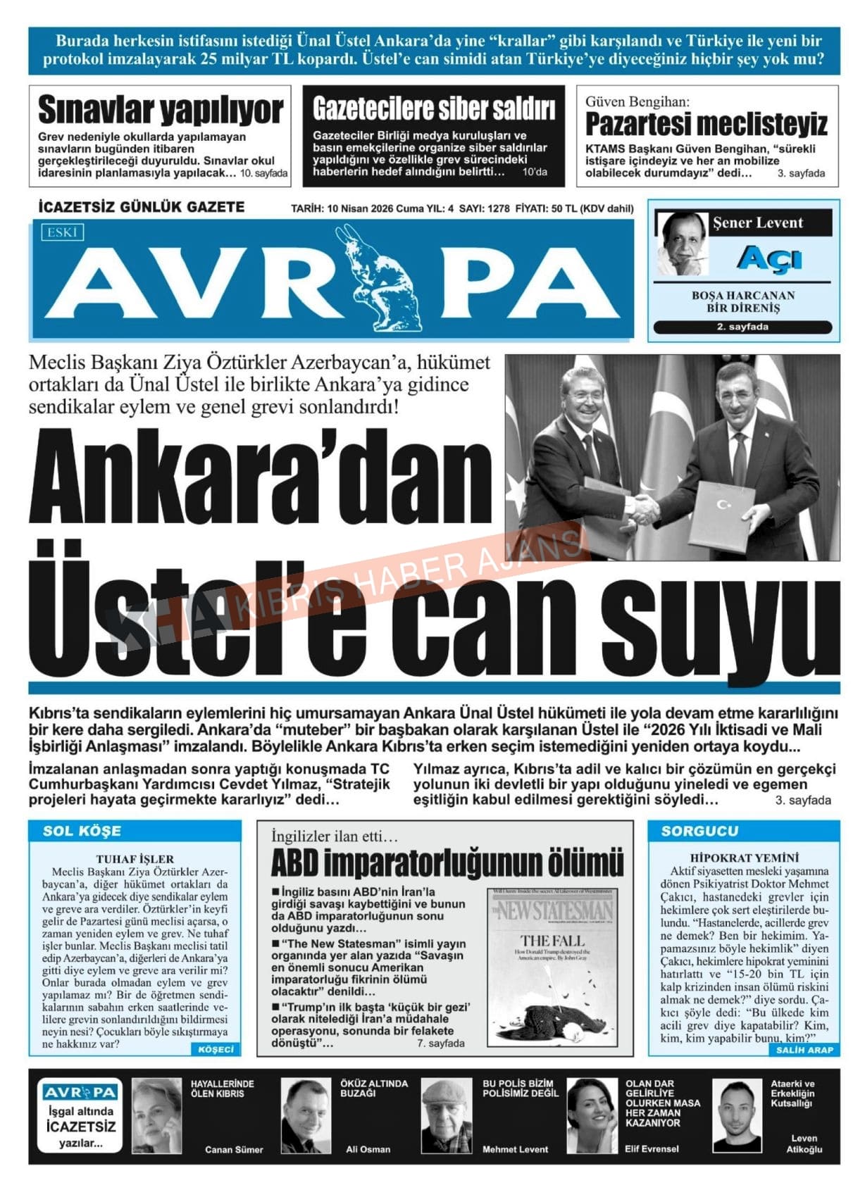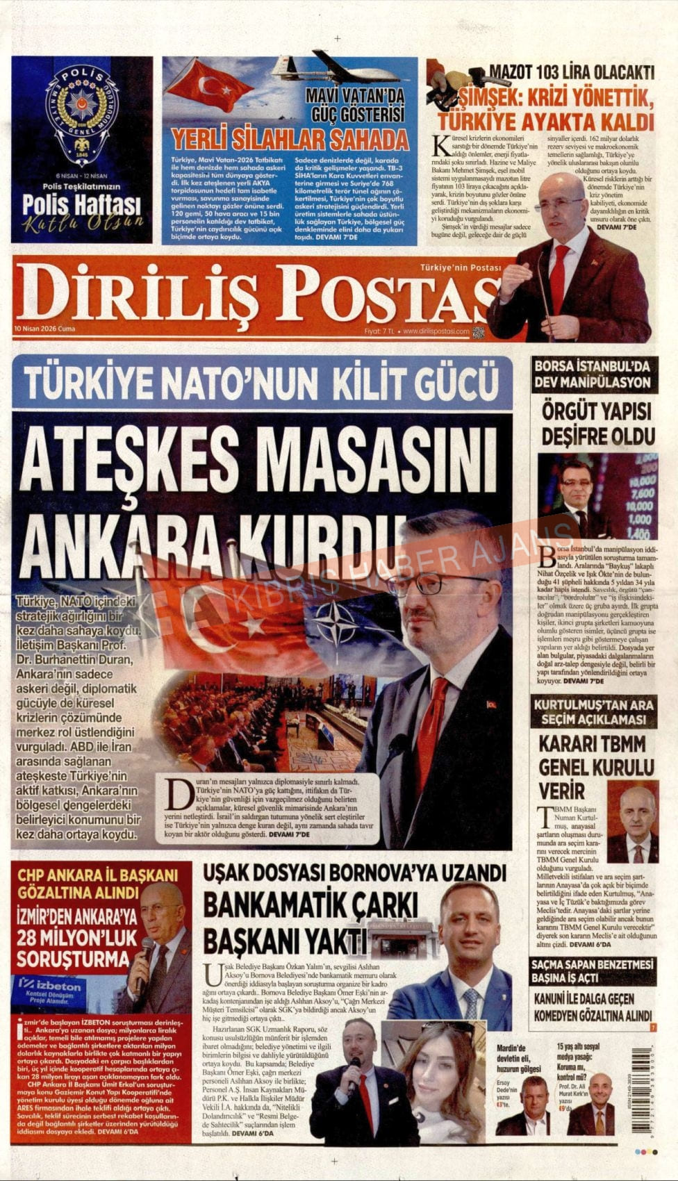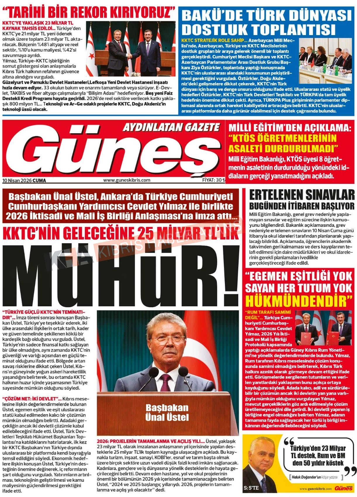 KKTC-TC Gazetelerinde Bugün (10 NİSAN 2026)