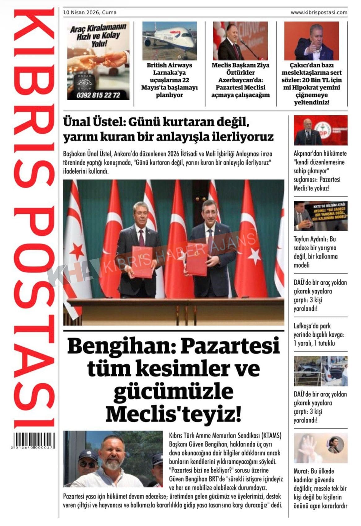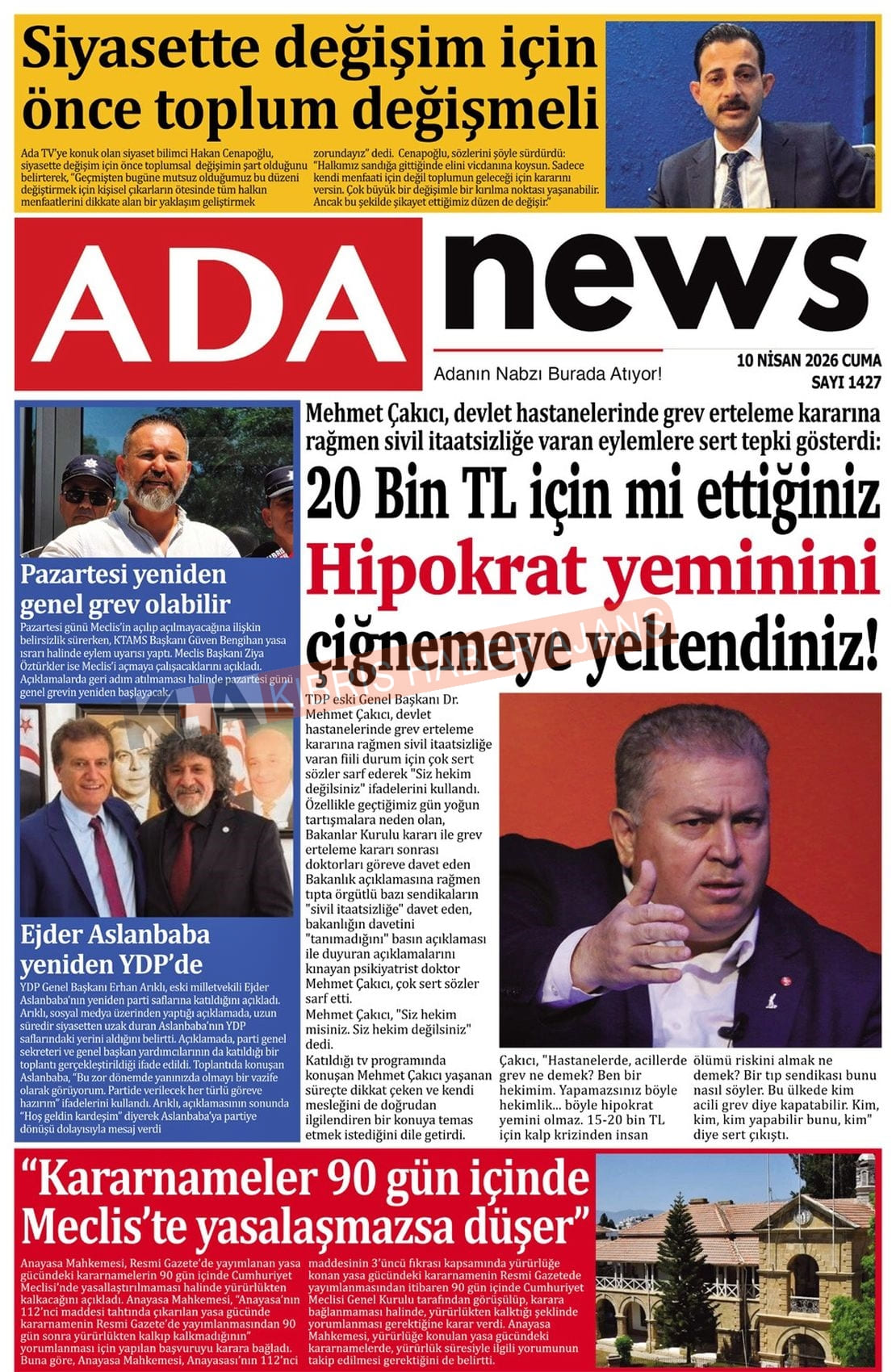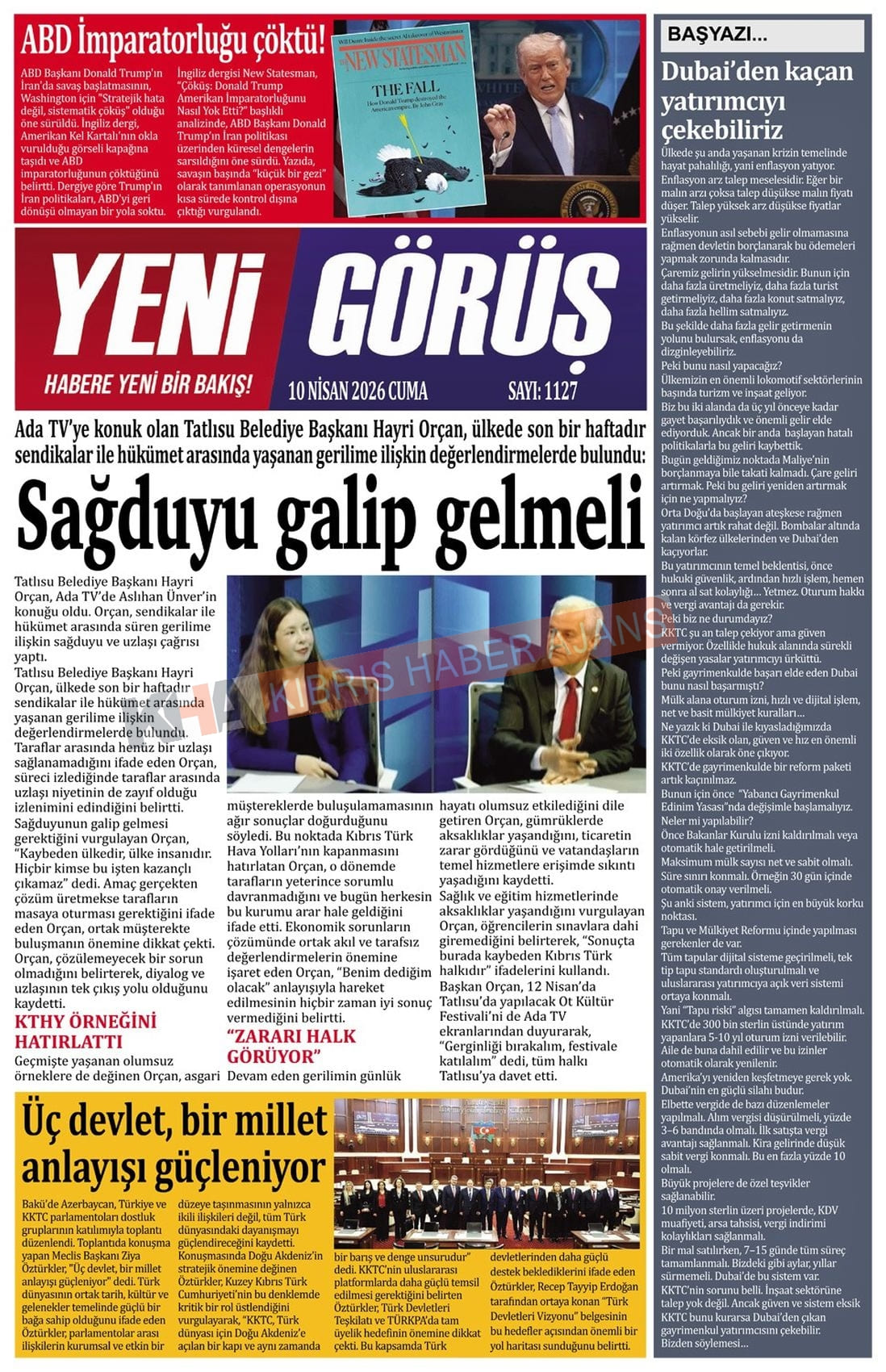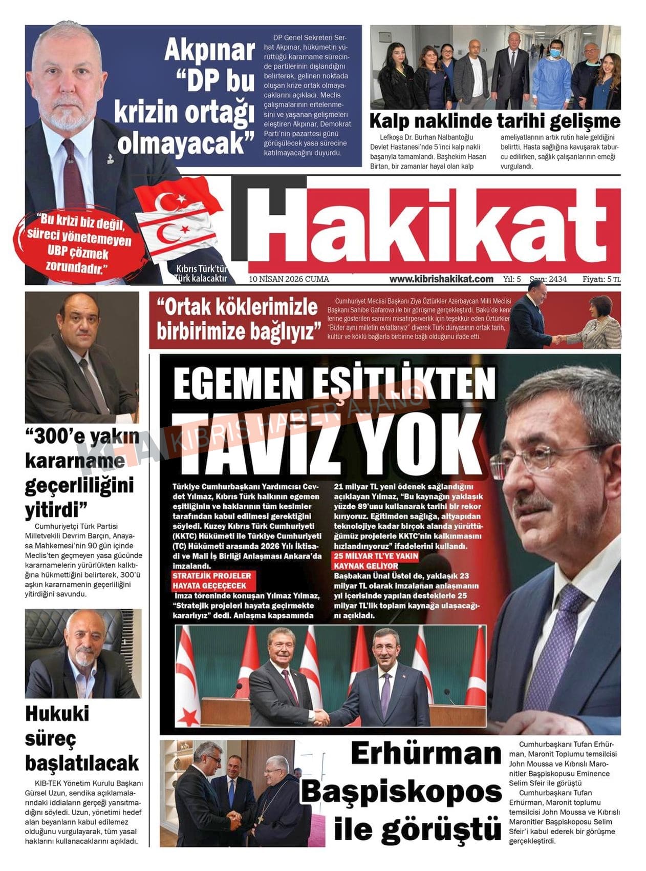 KKTC-TC Gazetelerinde Bugün (10 NİSAN 2026)