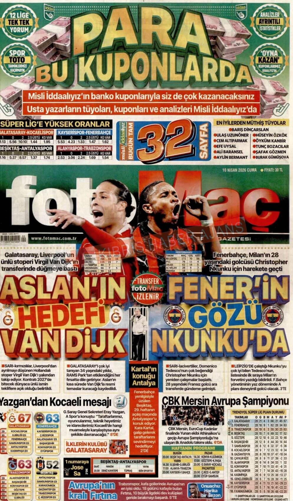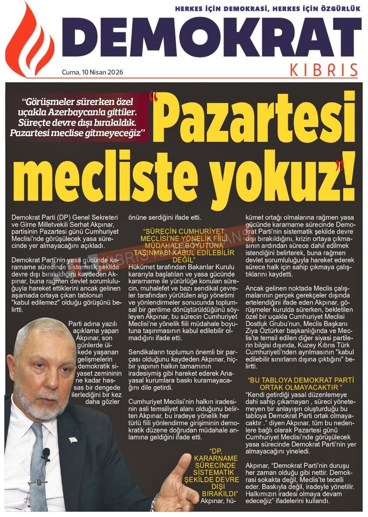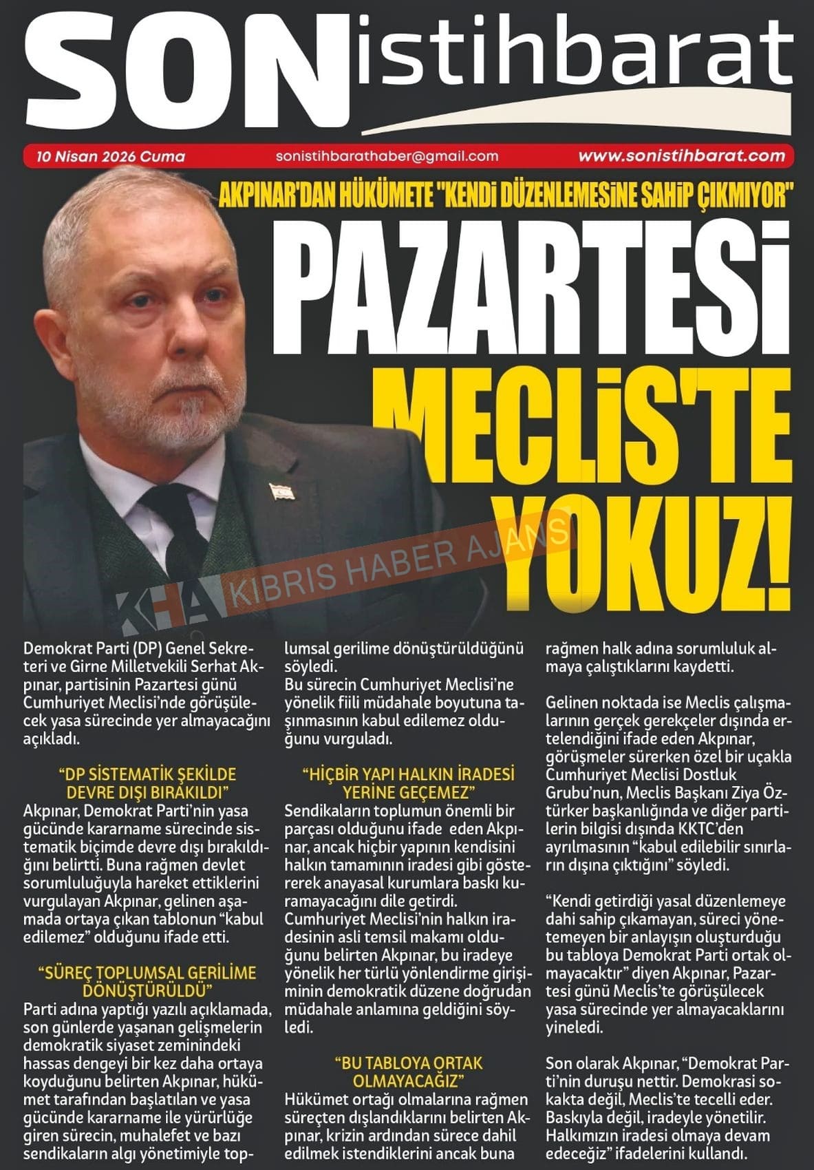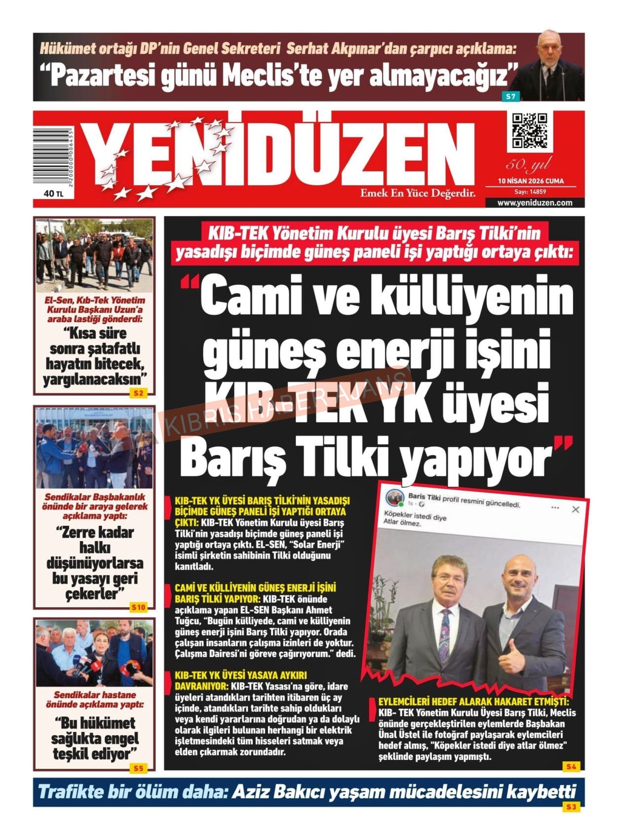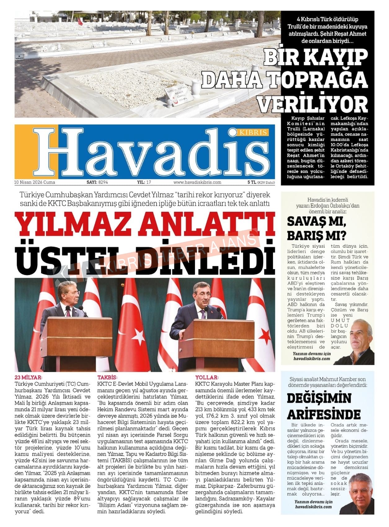 KKTC-TC Gazetelerinde Bugün (10 NİSAN 2026)