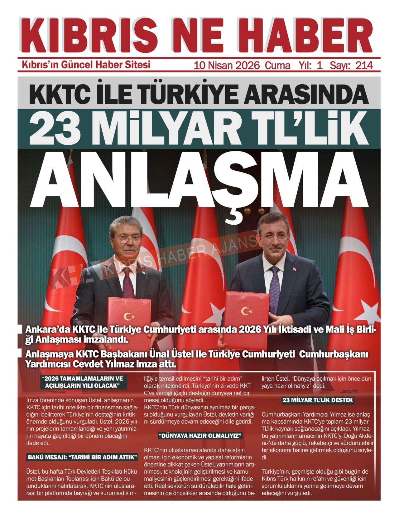 Sitede yayınlanan gazetelerdeki içeriklerden gazete sahipleri sorumludur. Yayınlanan gazeteler ve içeriklerinden Kıbrıs Haber Ajans ve Ajans Cyprus sorumlu tutulamaz.