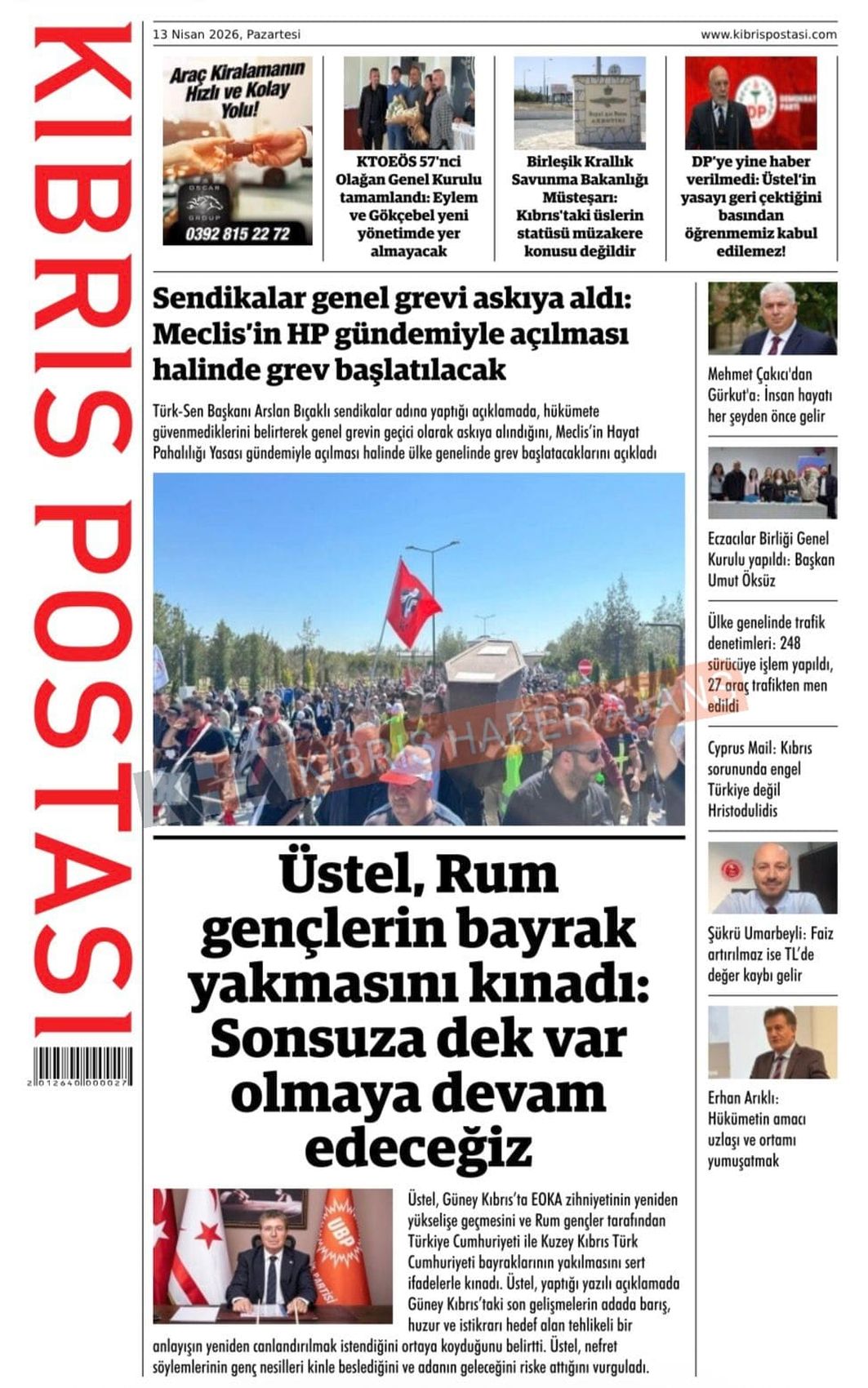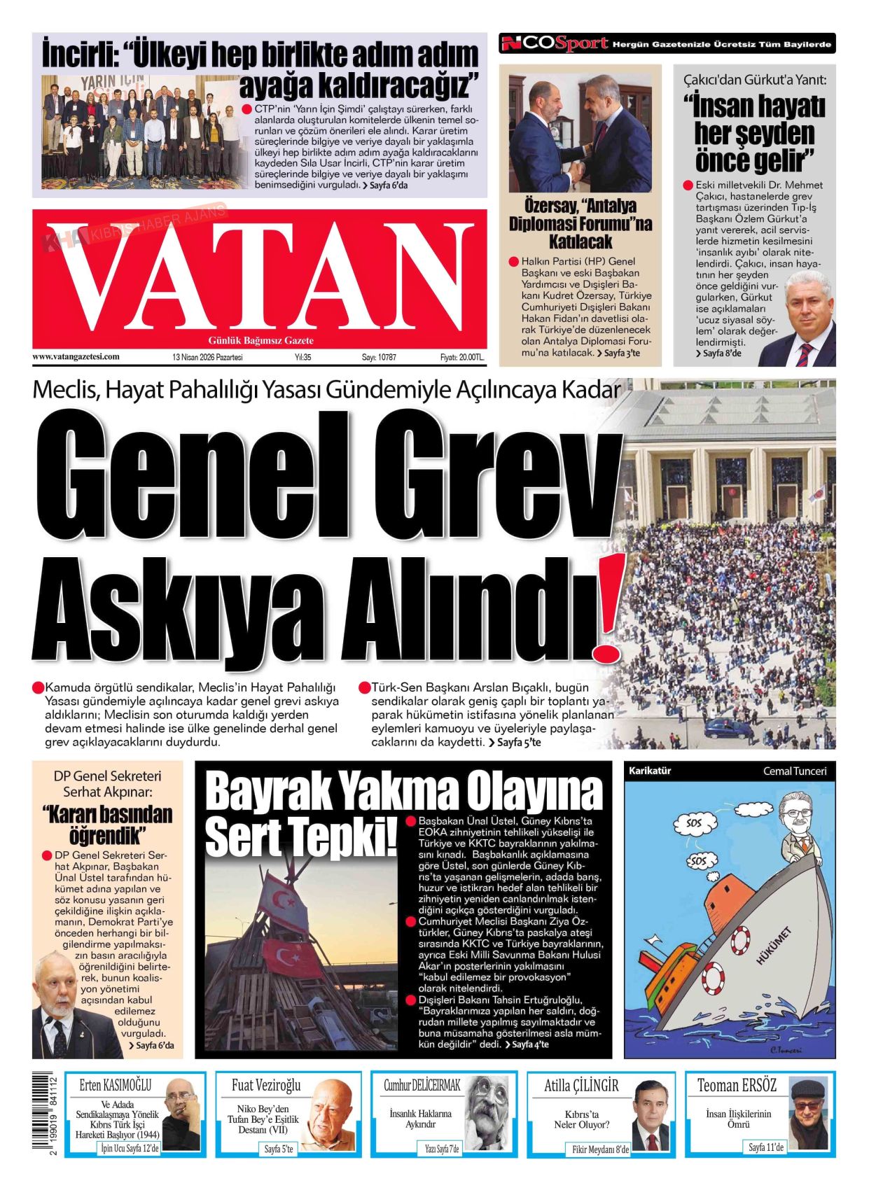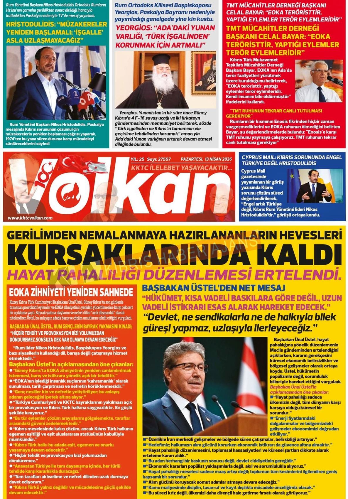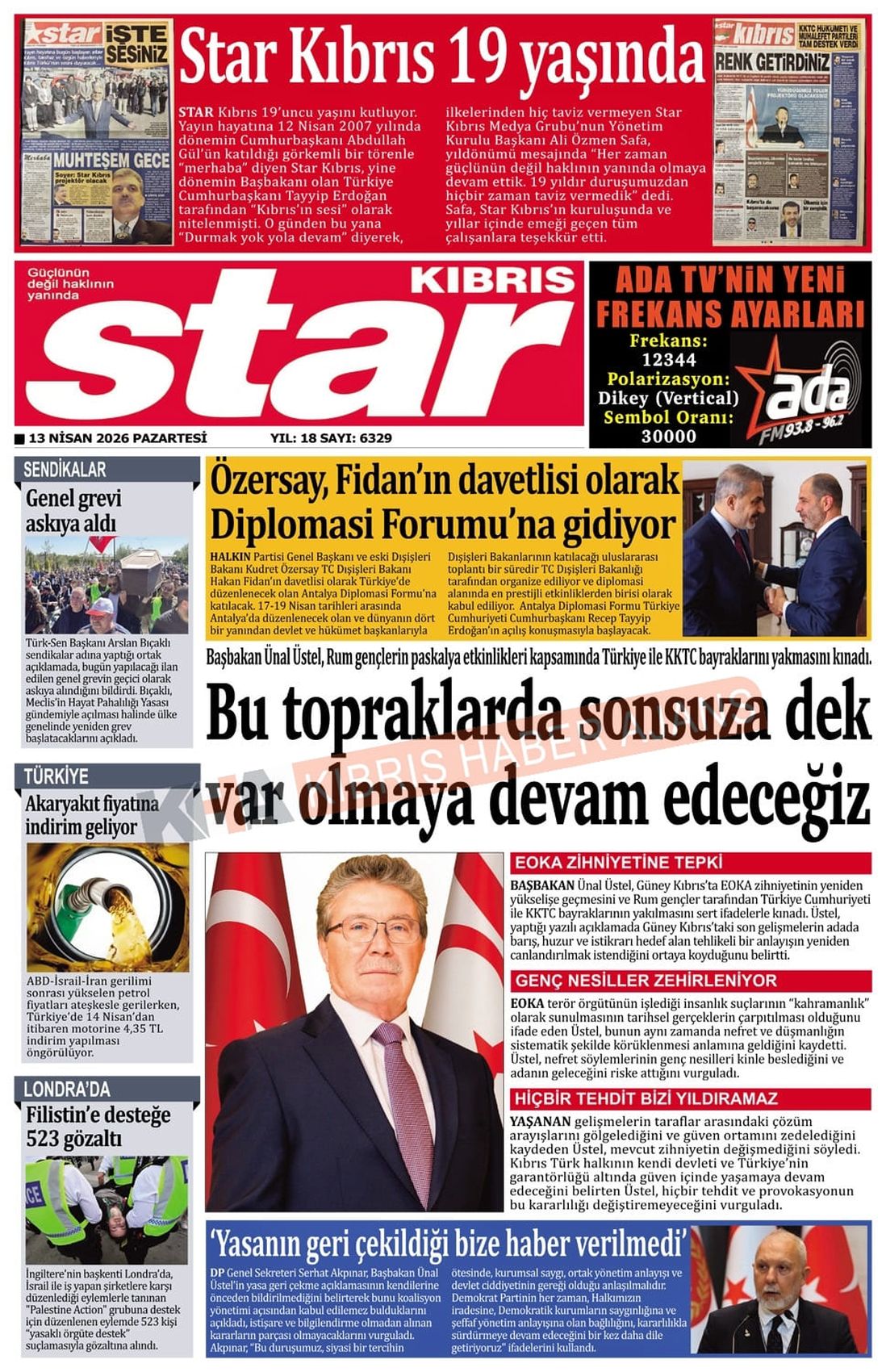 KKTC-TC Gazetelerinde Bugün (13 NİSAN 2026)