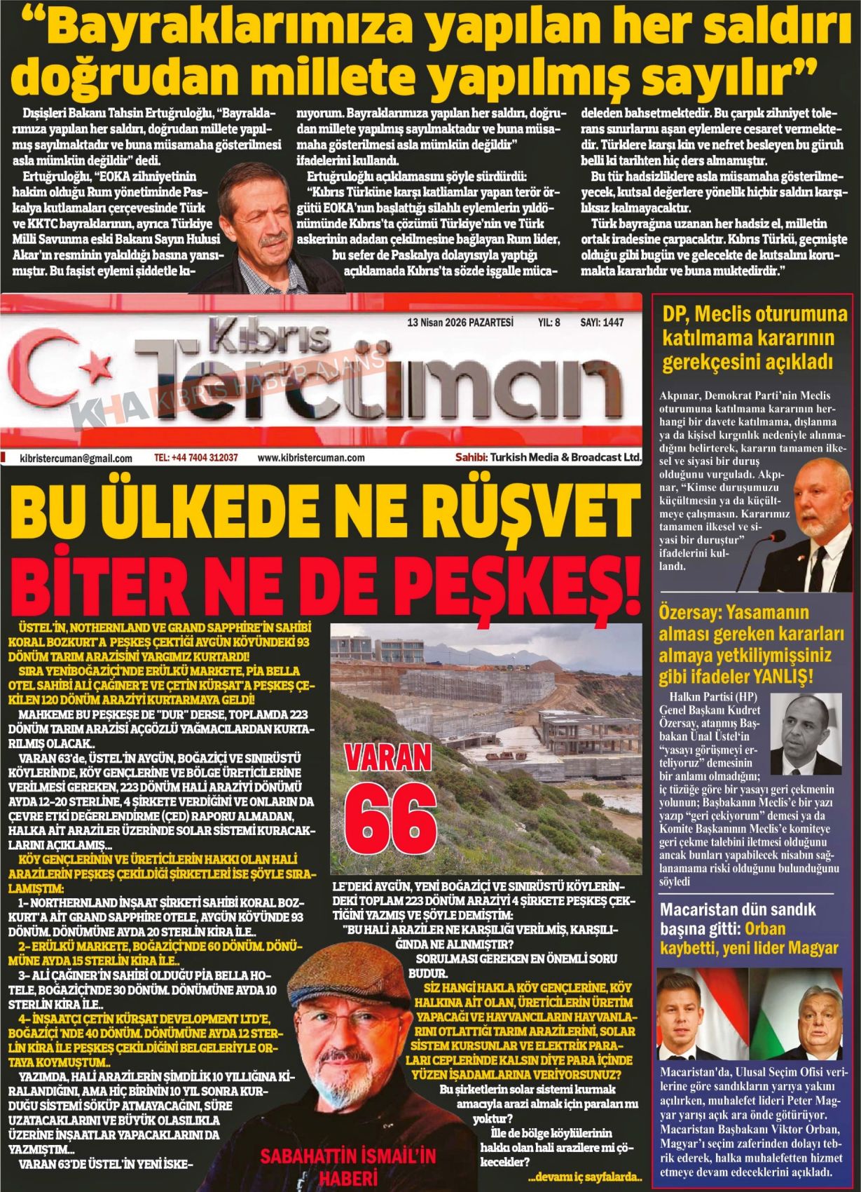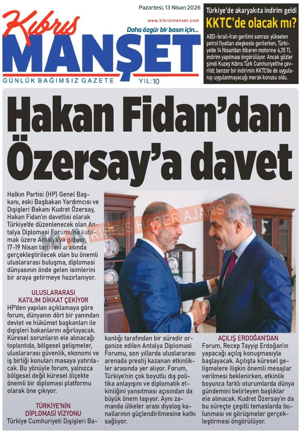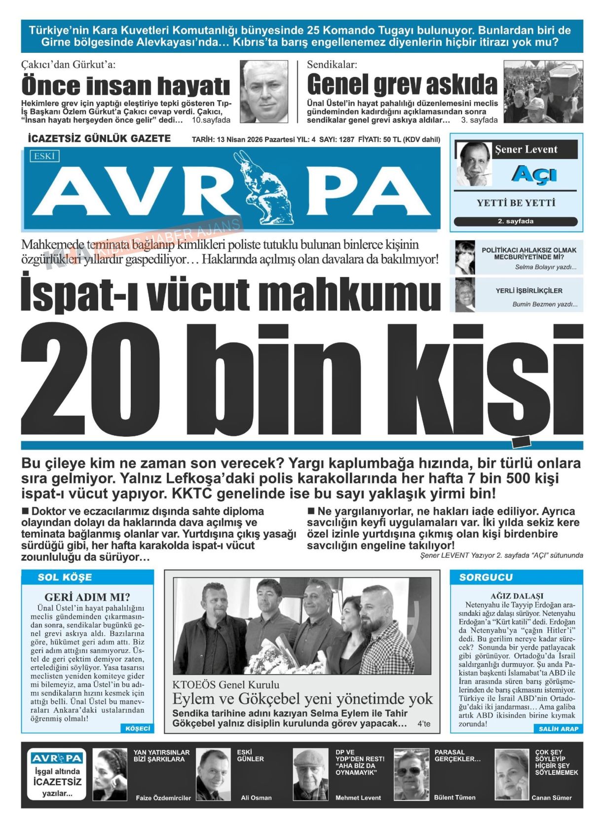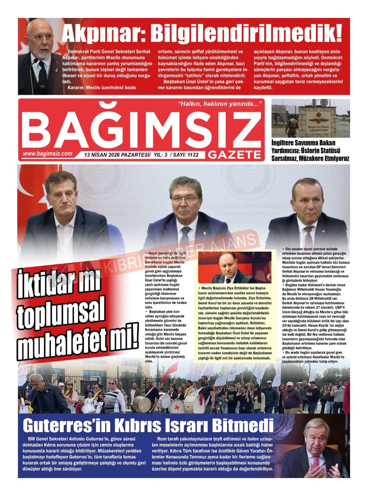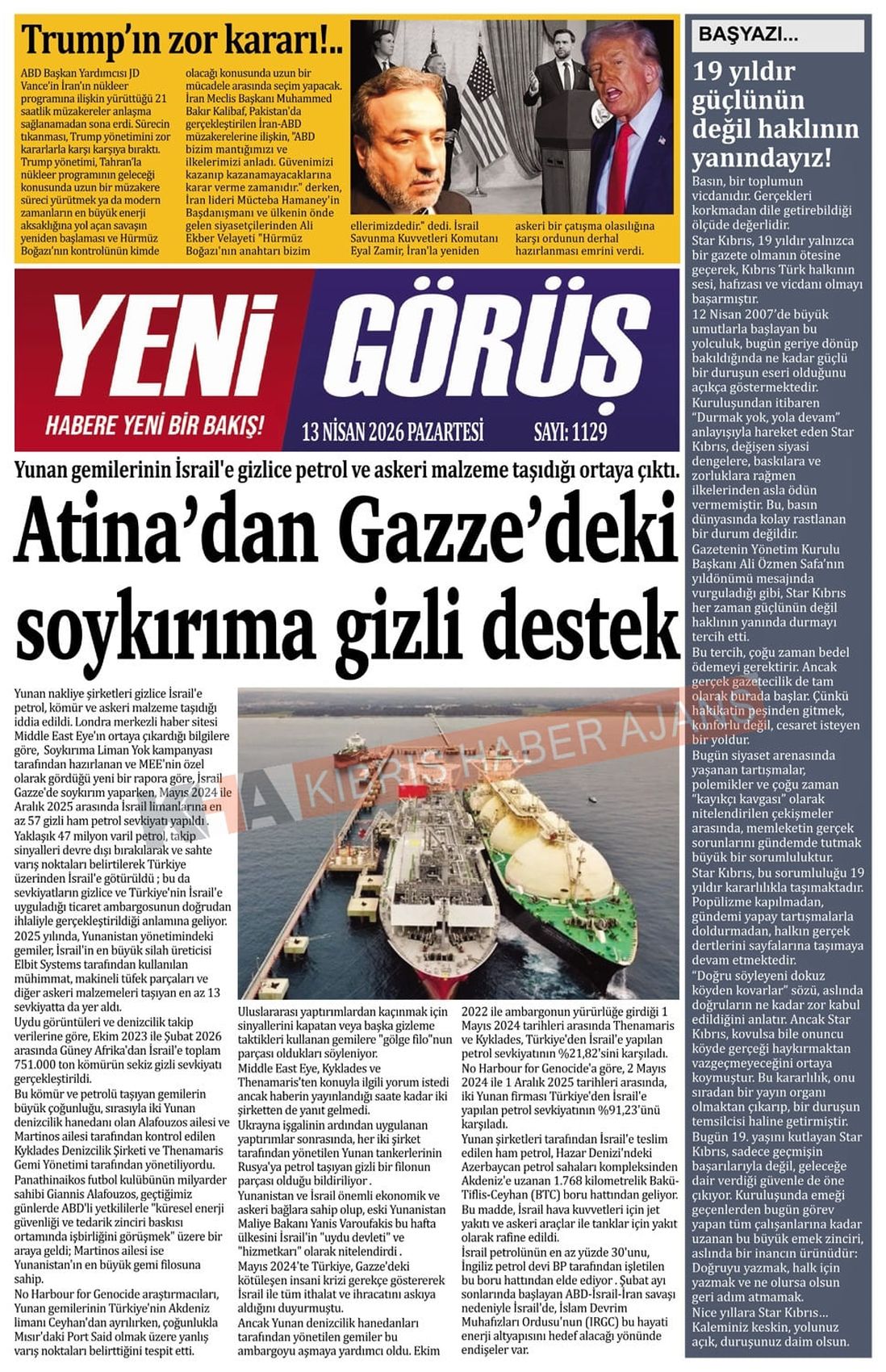 KKTC-TC Gazetelerinde Bugün (13 NİSAN 2026)