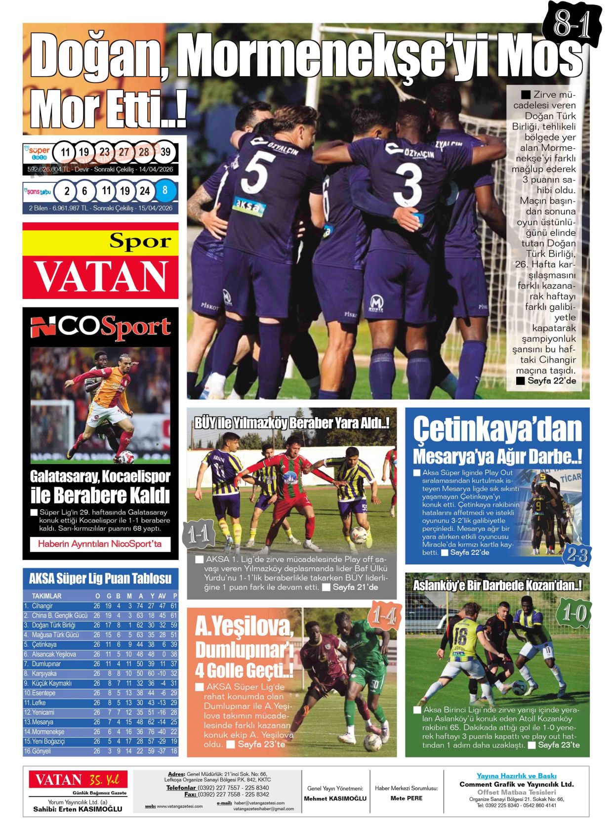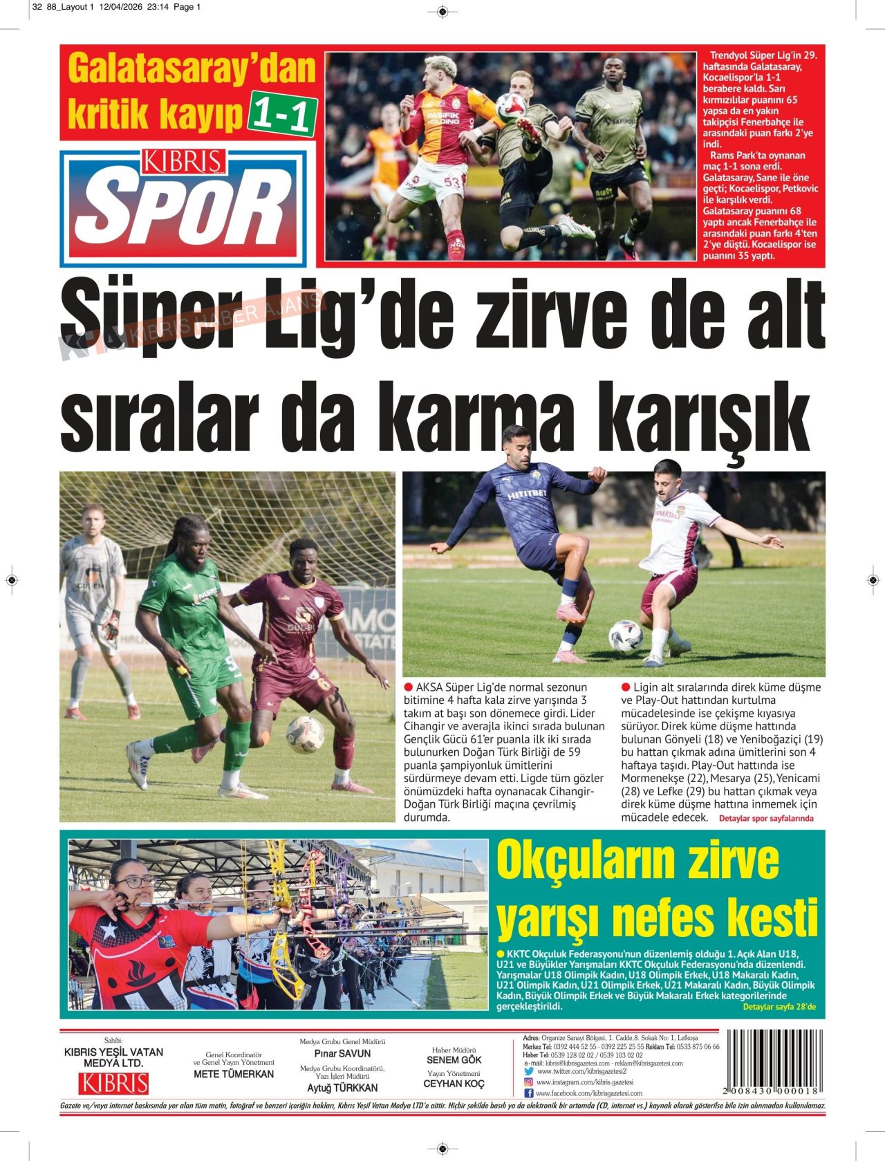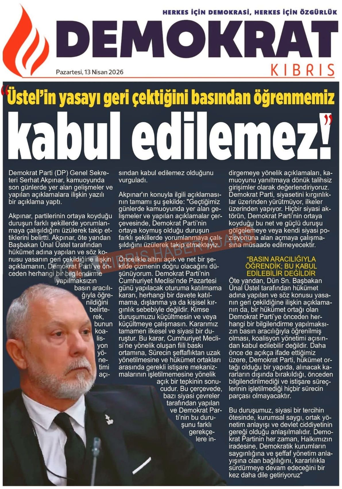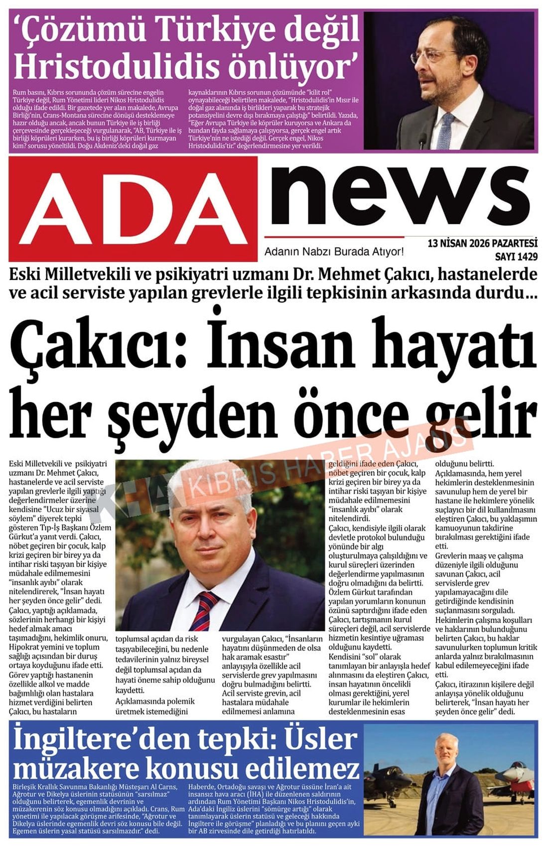 KKTC-TC Gazetelerinde Bugün (13 NİSAN 2026)