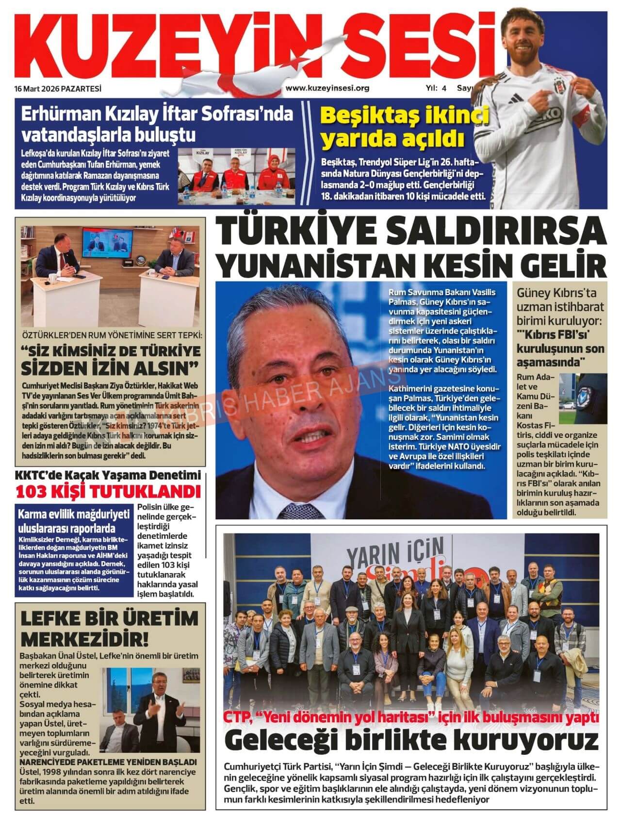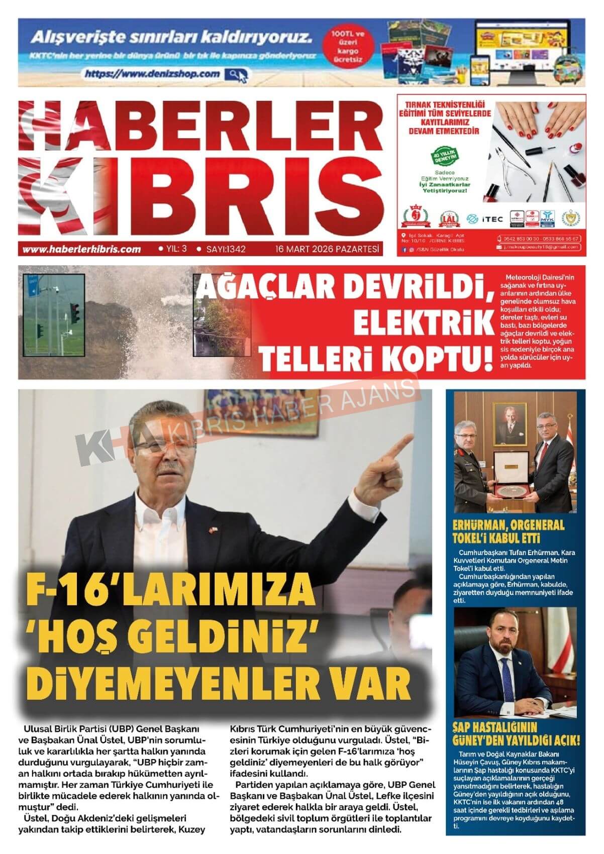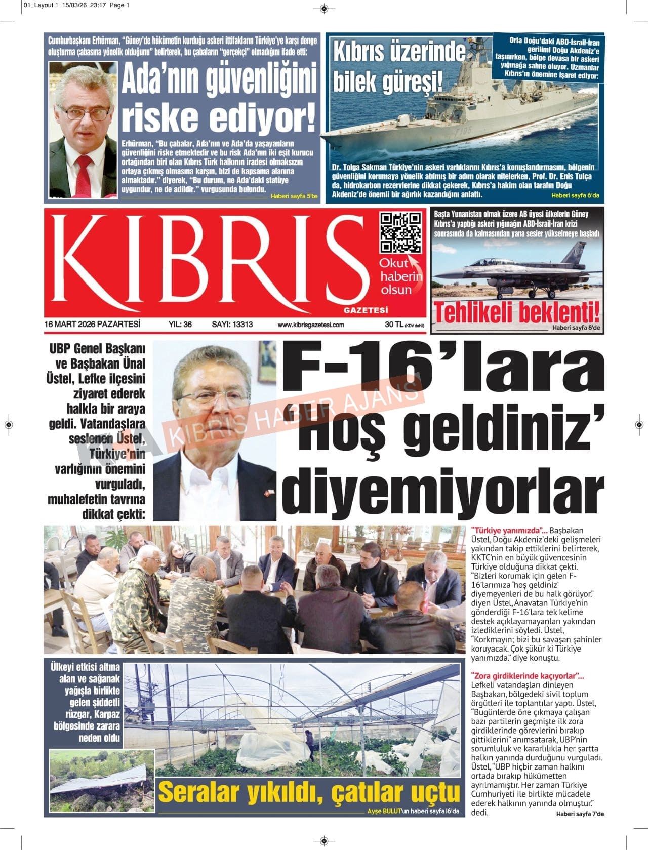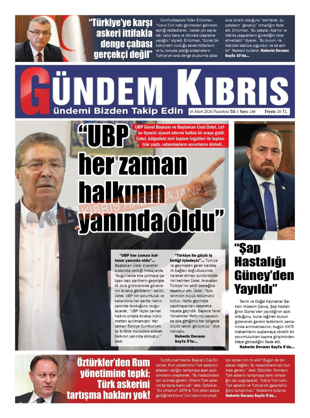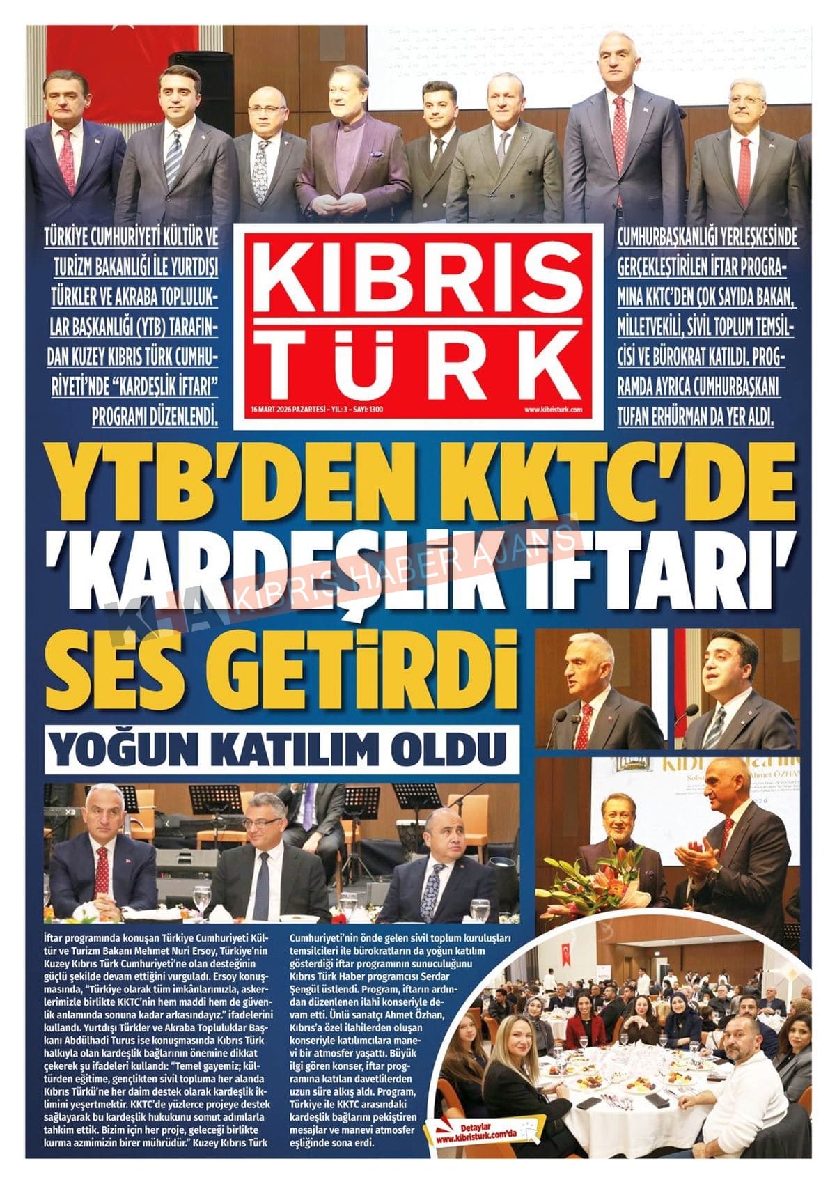 KKTC-TC Gazetelerinde Bugün (16 MART 2026)