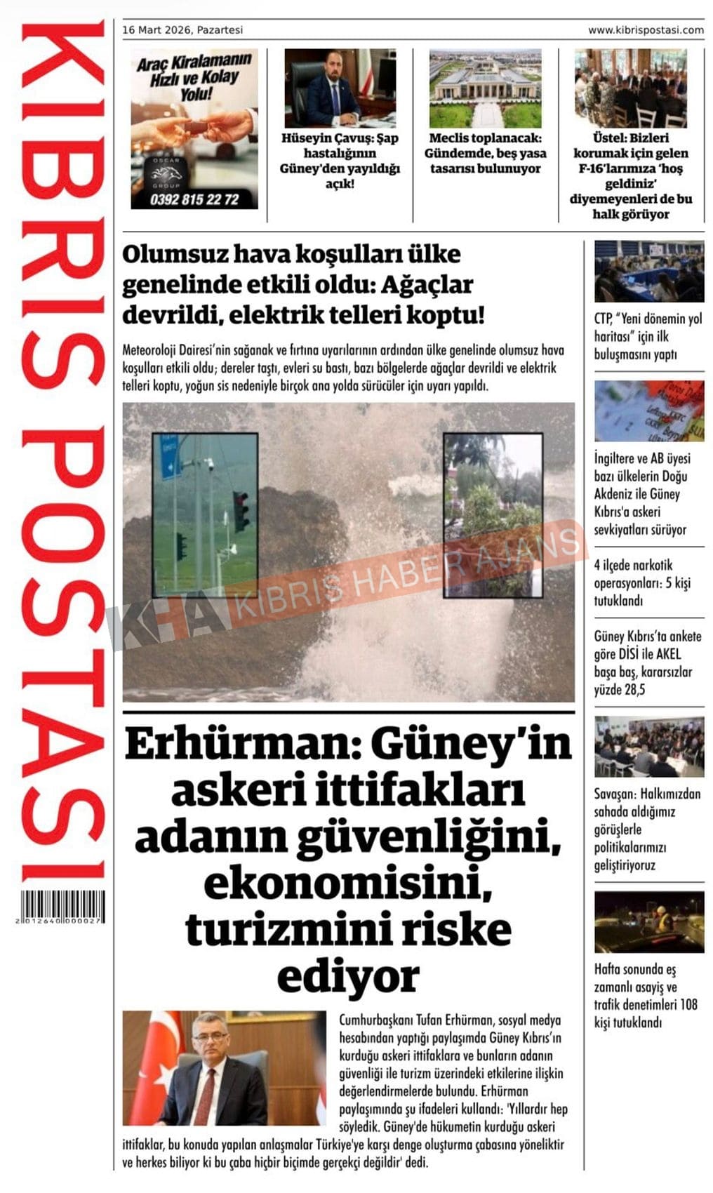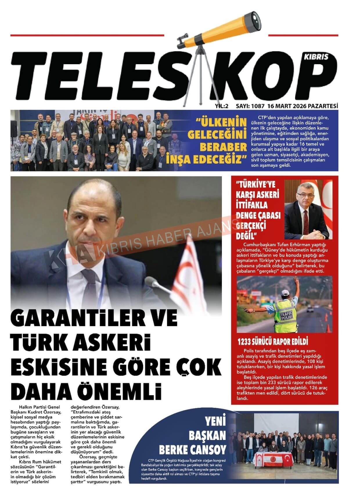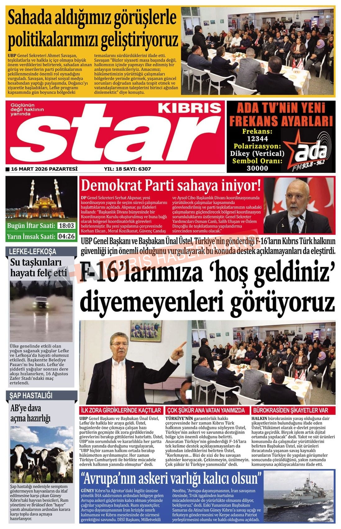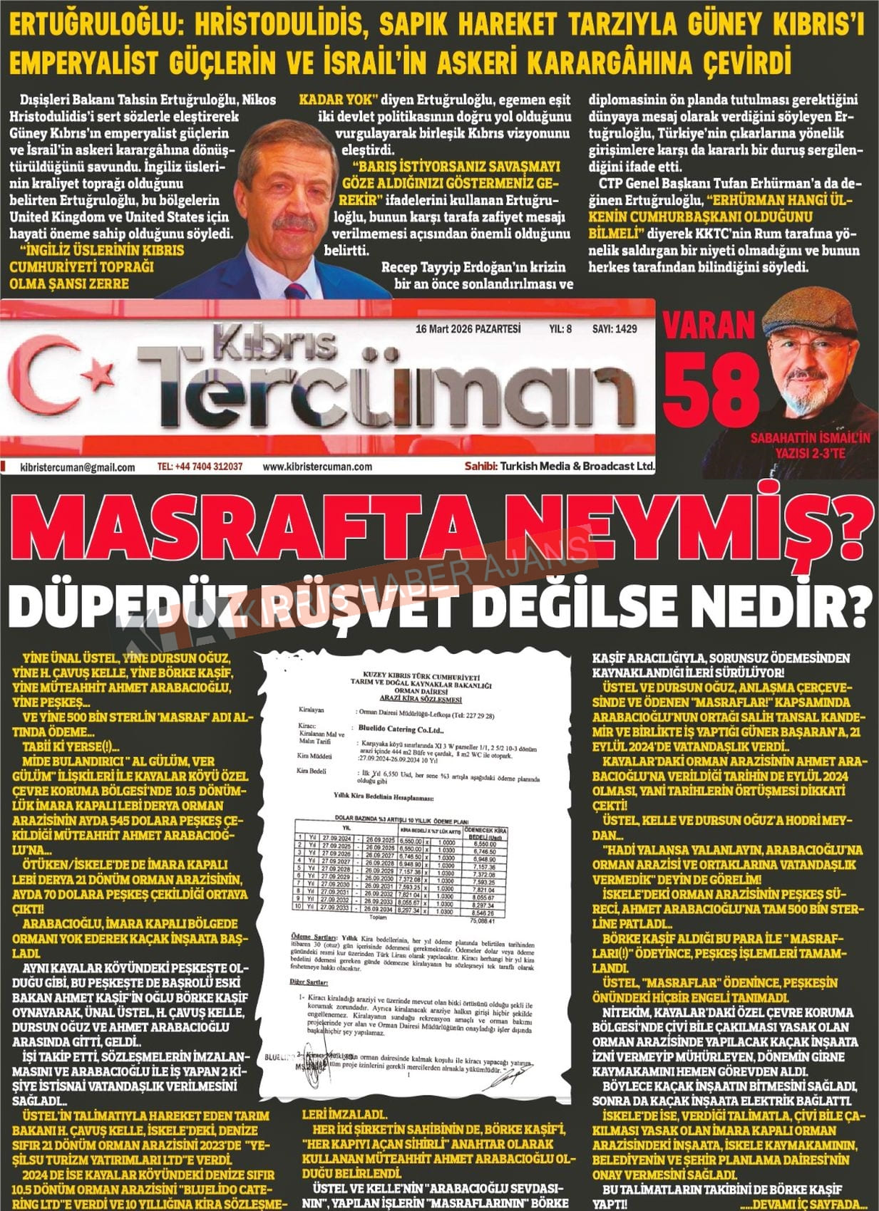 KKTC-TC Gazetelerinde Bugün (16 MART 2026)