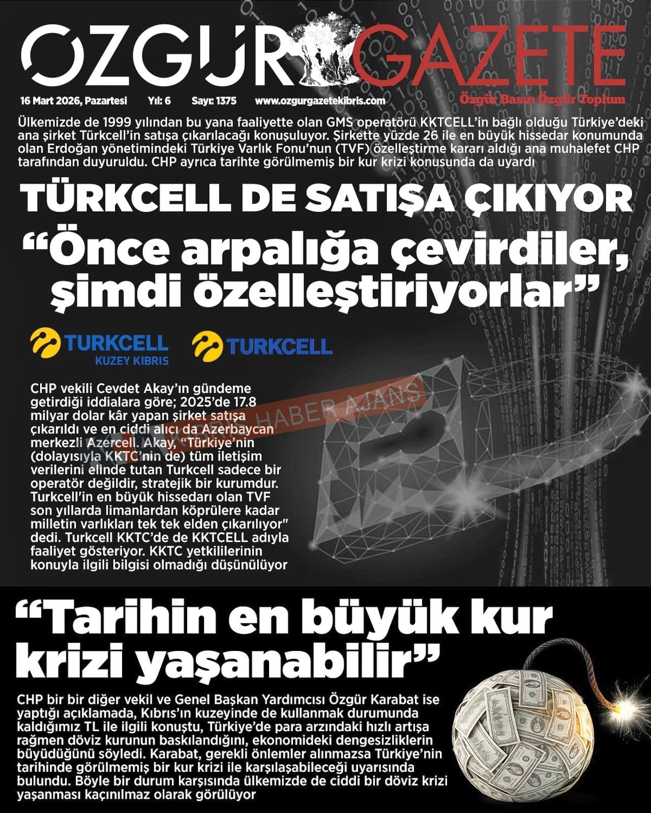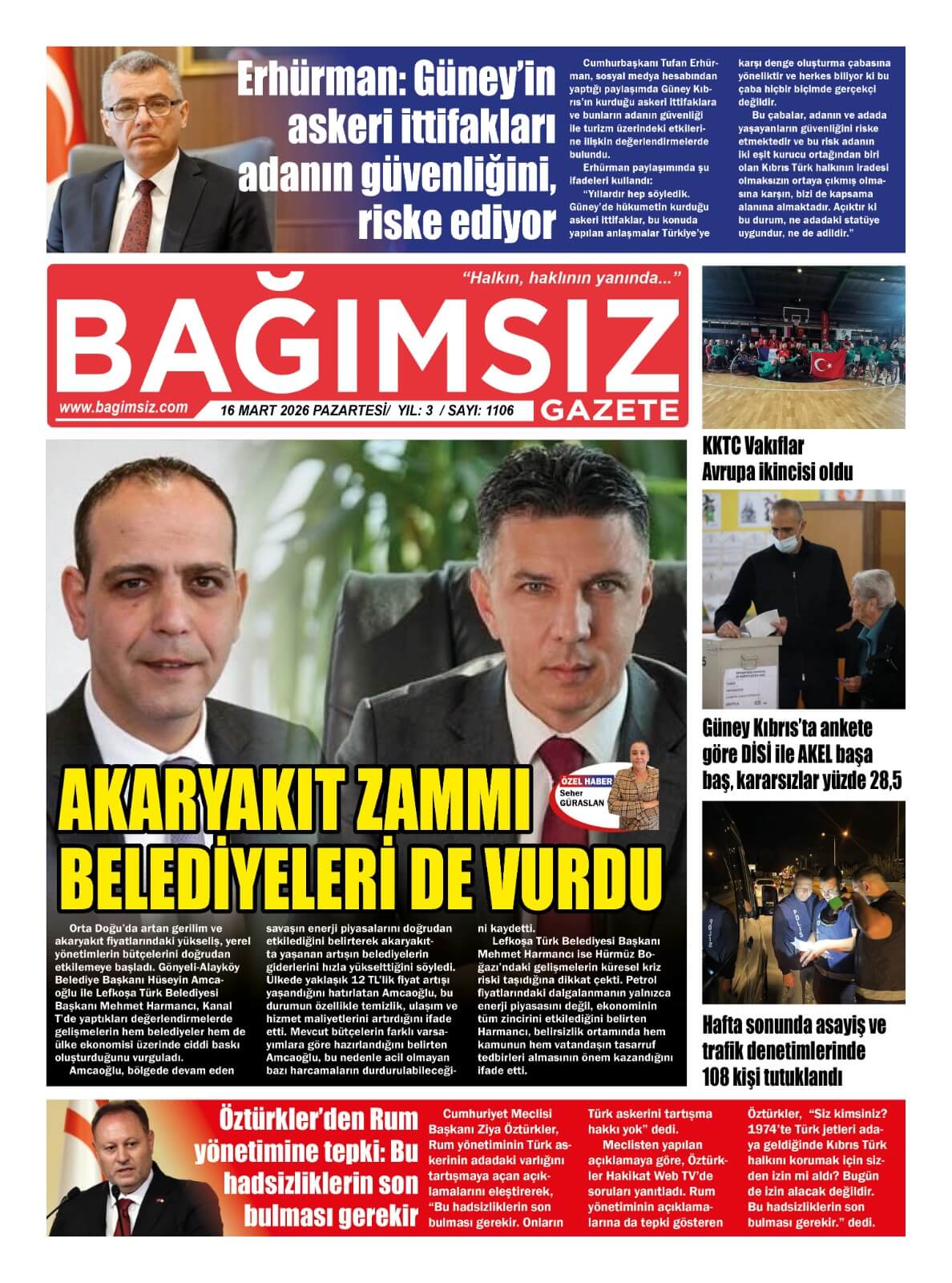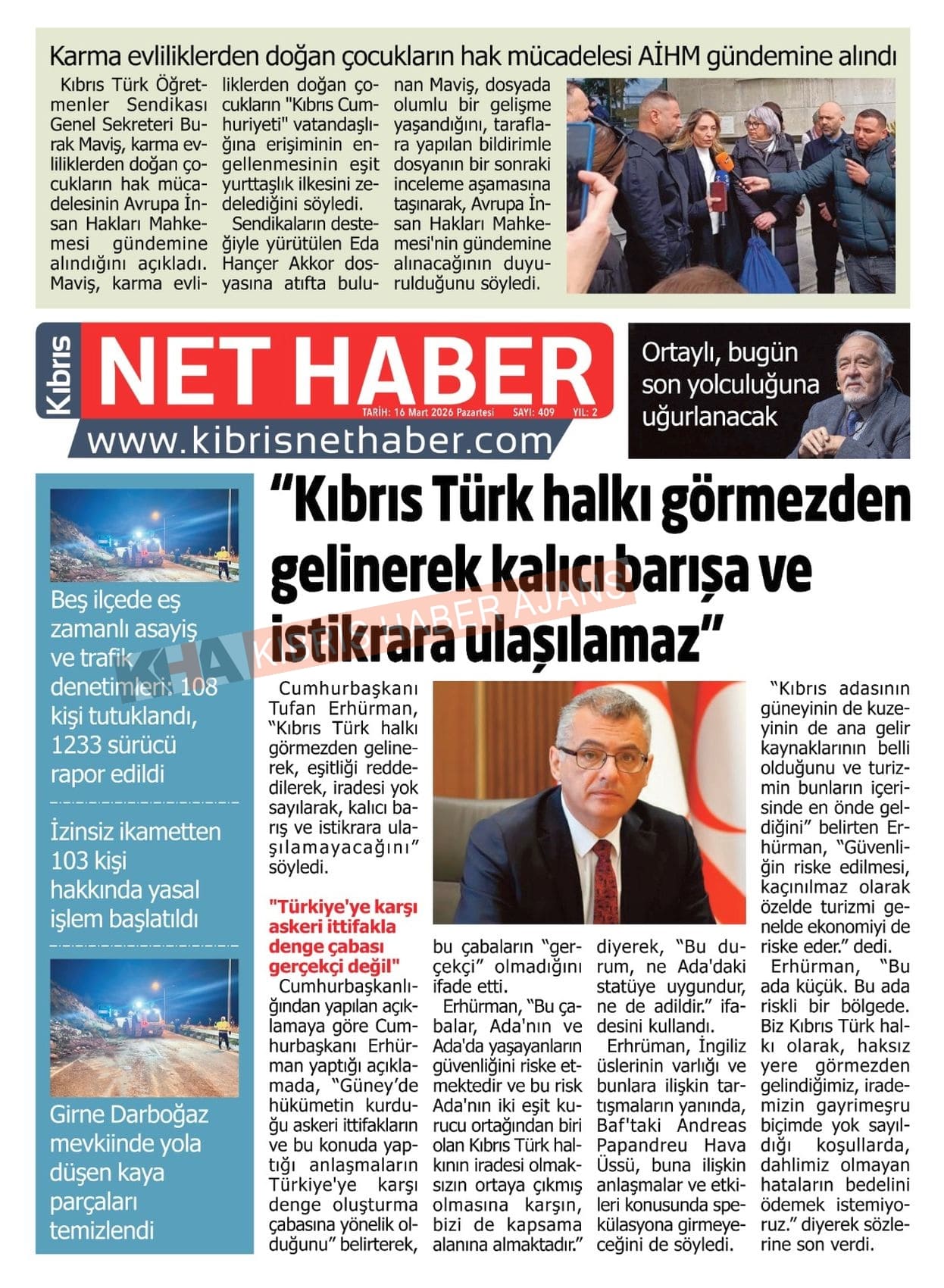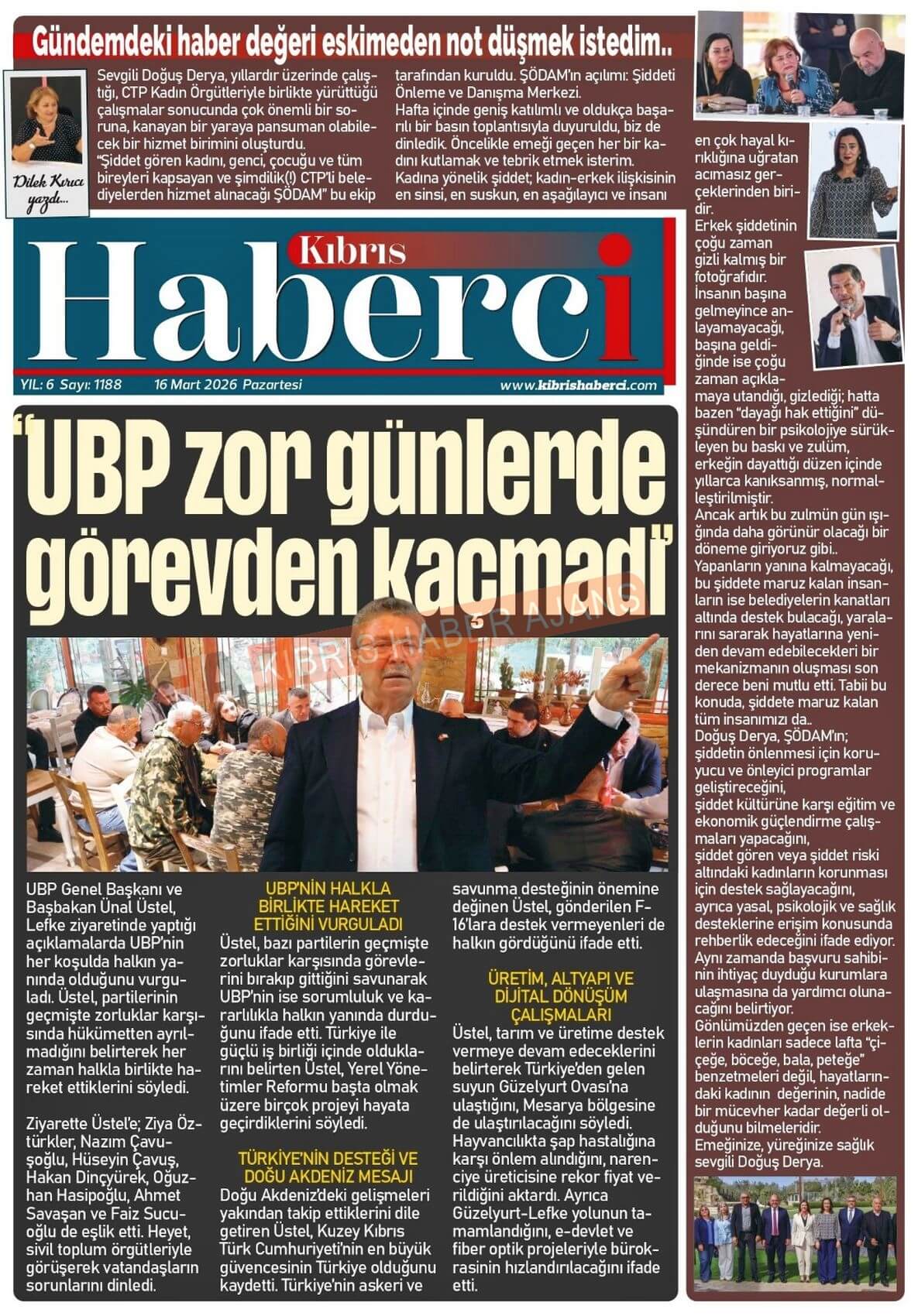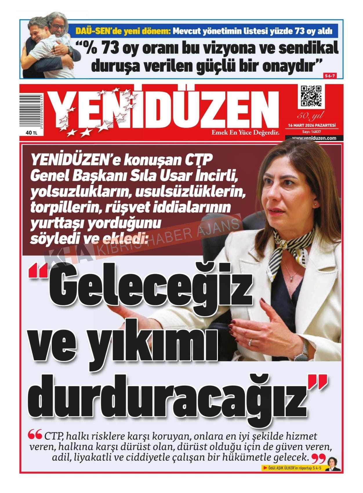 KKTC-TC Gazetelerinde Bugün (16 MART 2026)