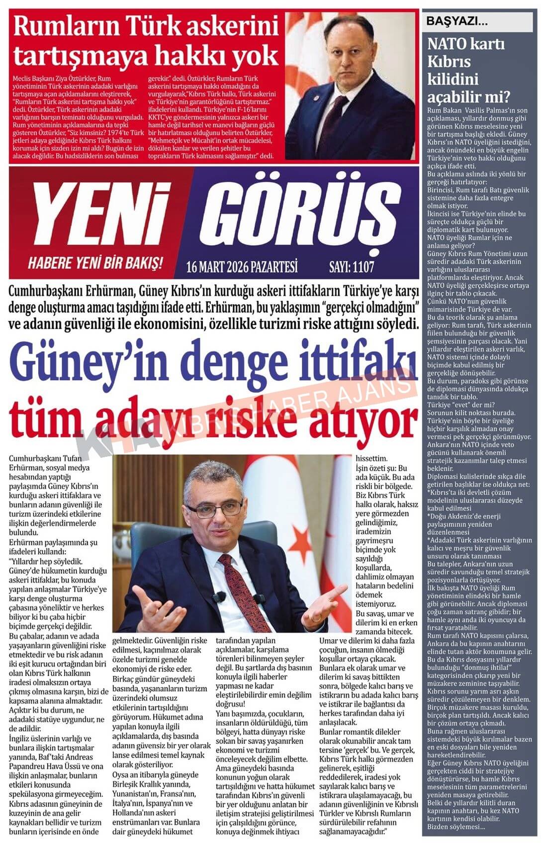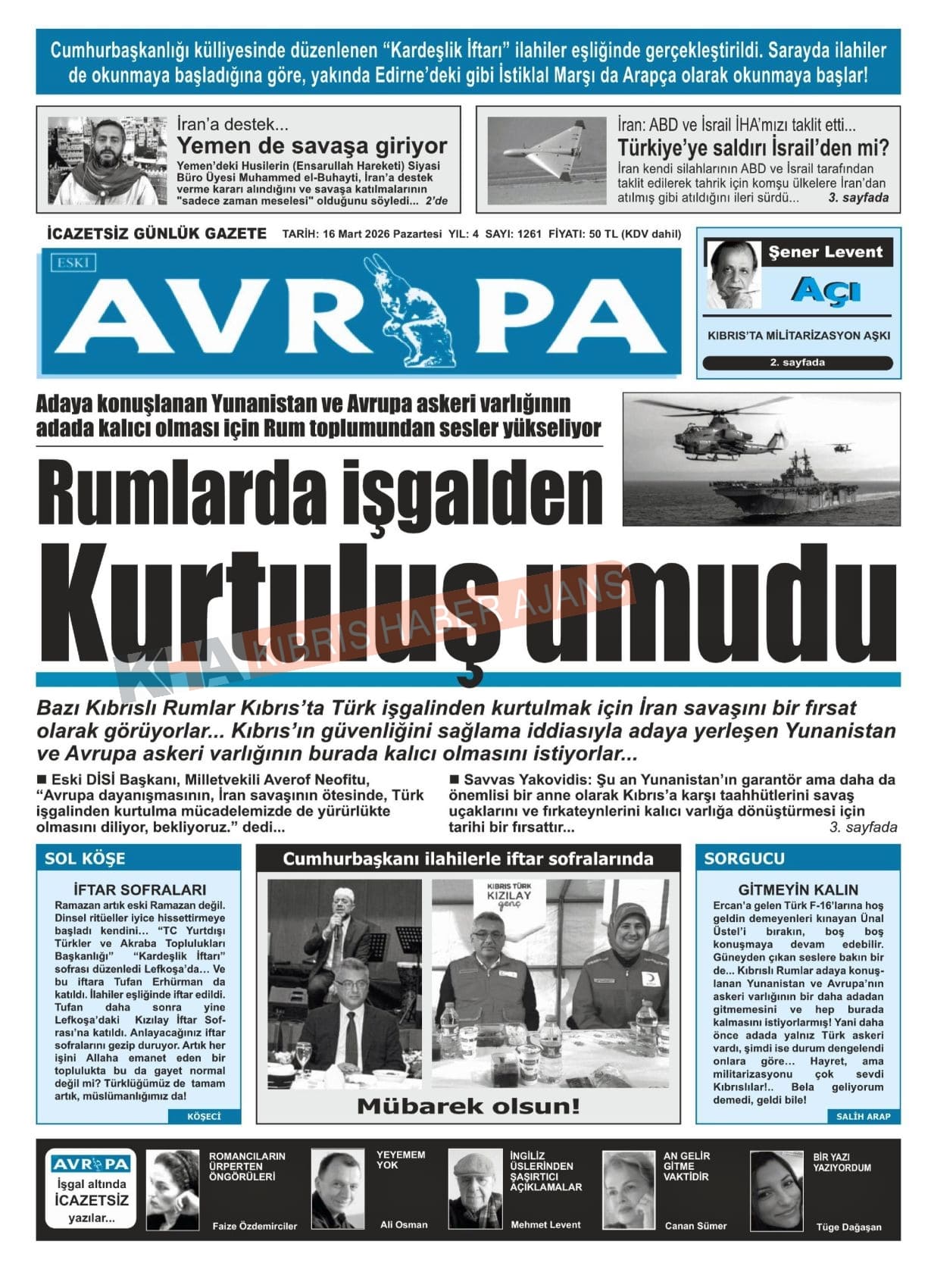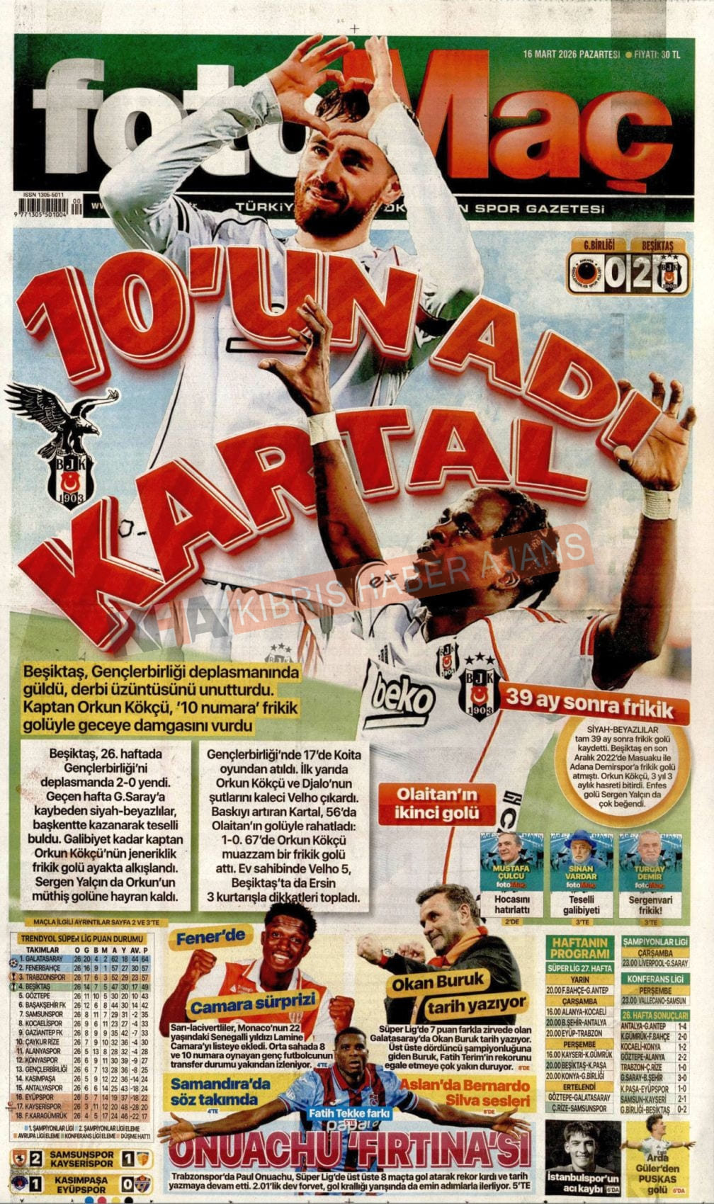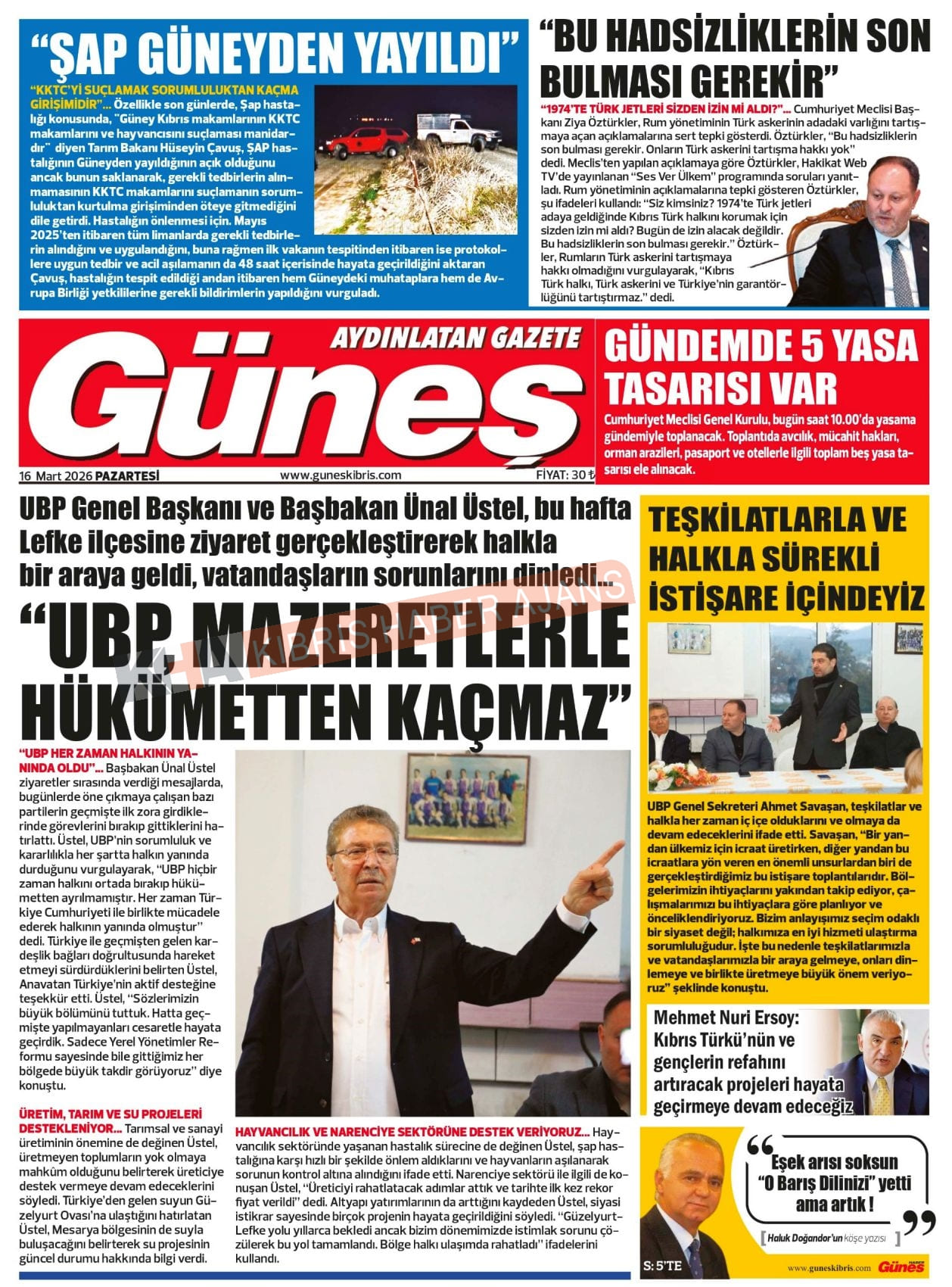 KKTC-TC Gazetelerinde Bugün (16 MART 2026)