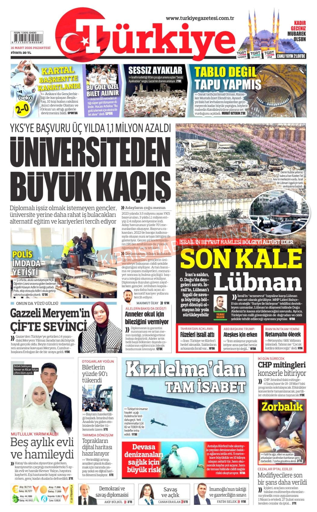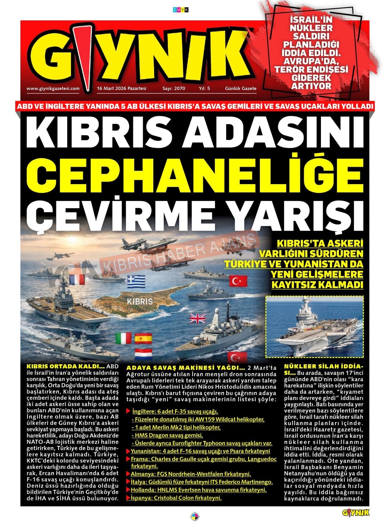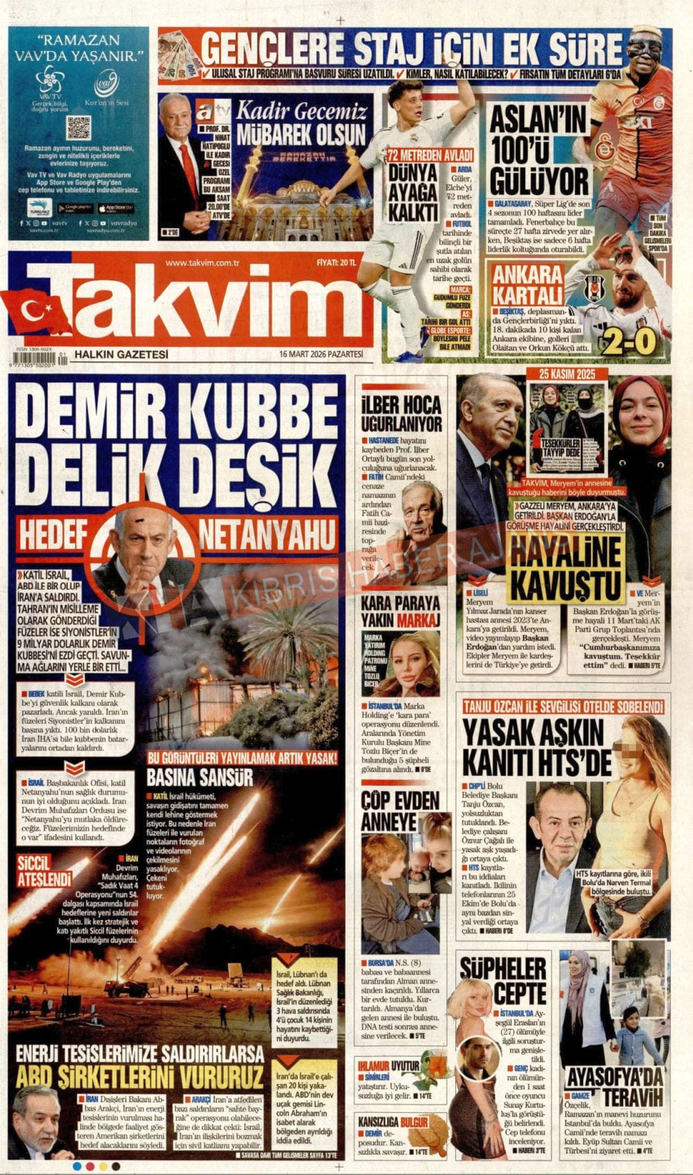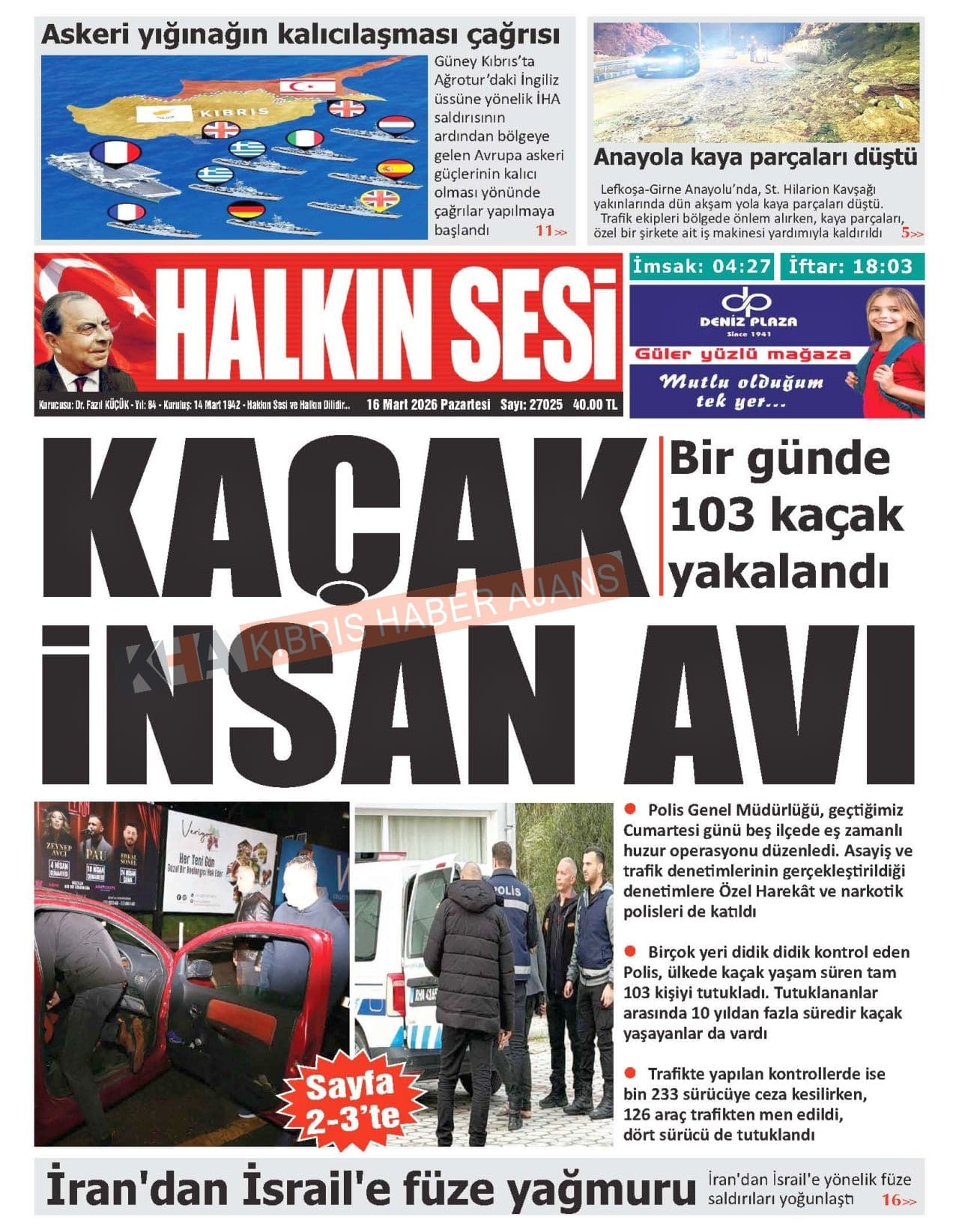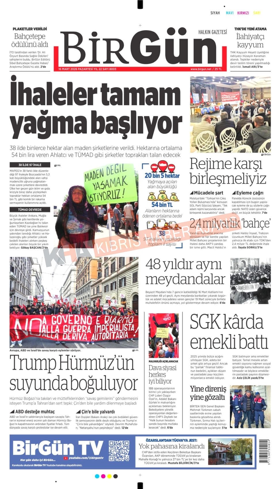 KKTC-TC Gazetelerinde Bugün (16 MART 2026)