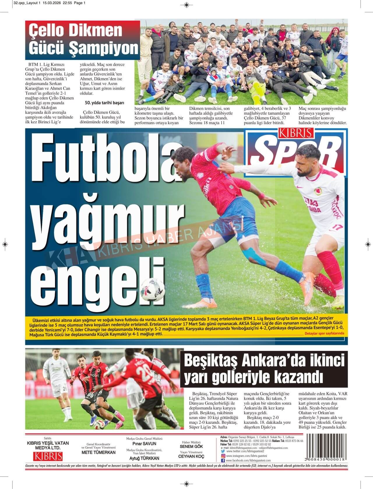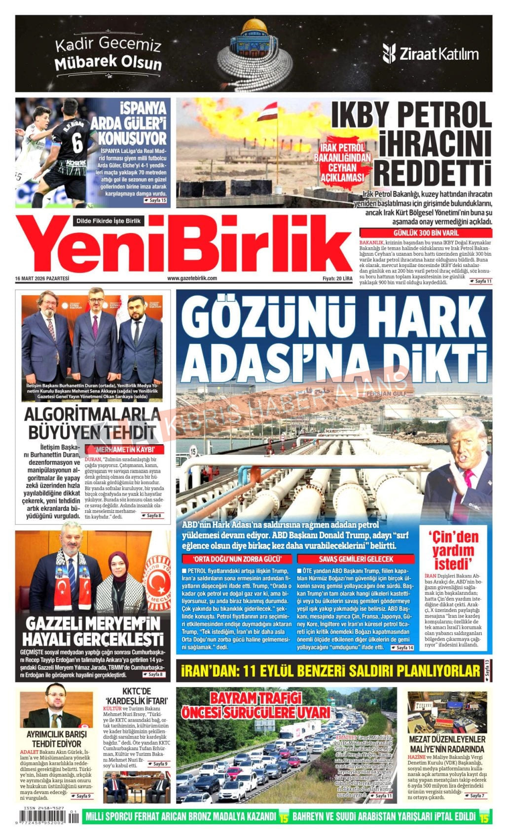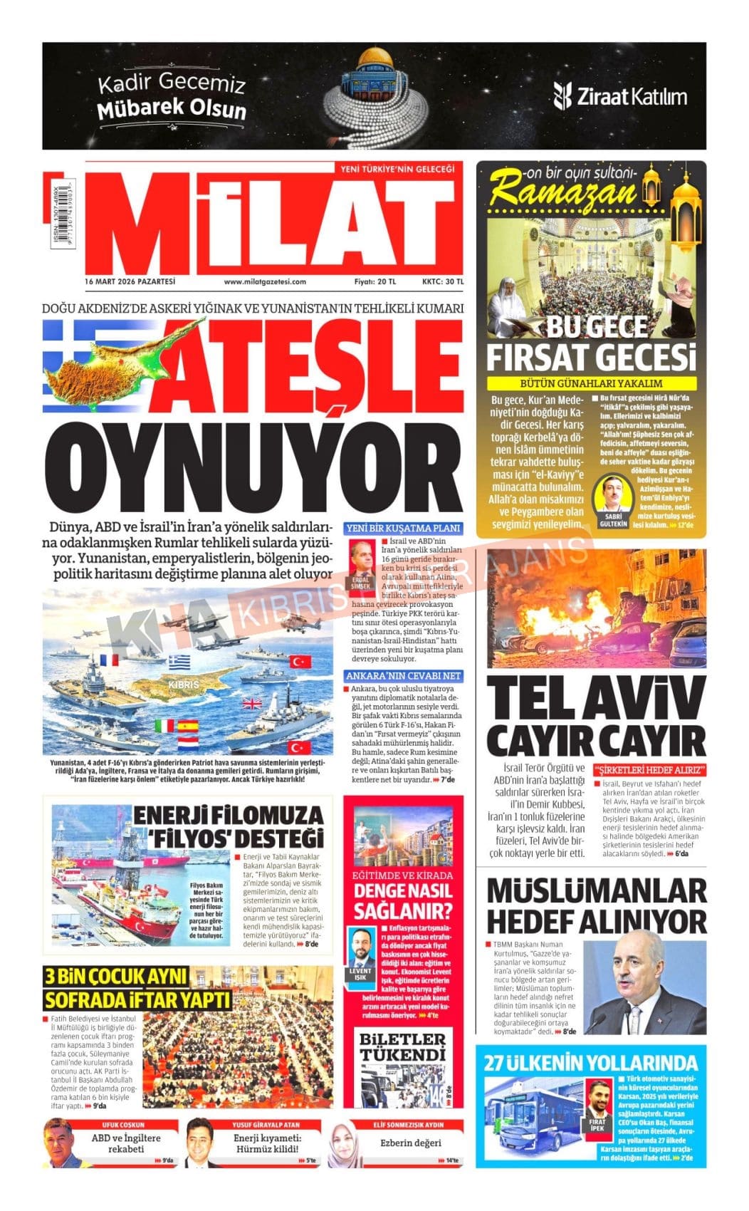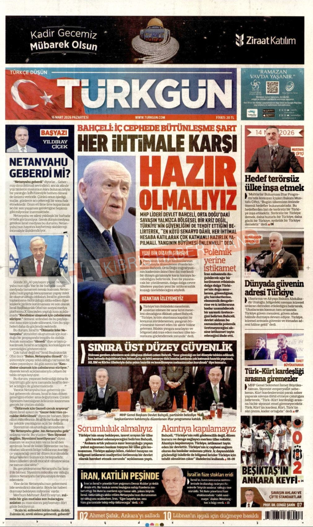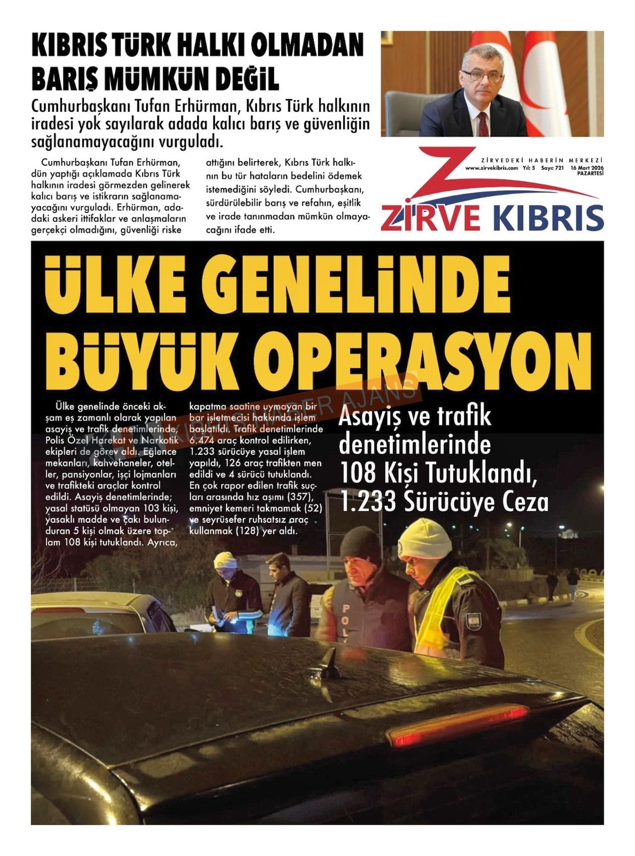 KKTC-TC Gazetelerinde Bugün (16 MART 2026)
