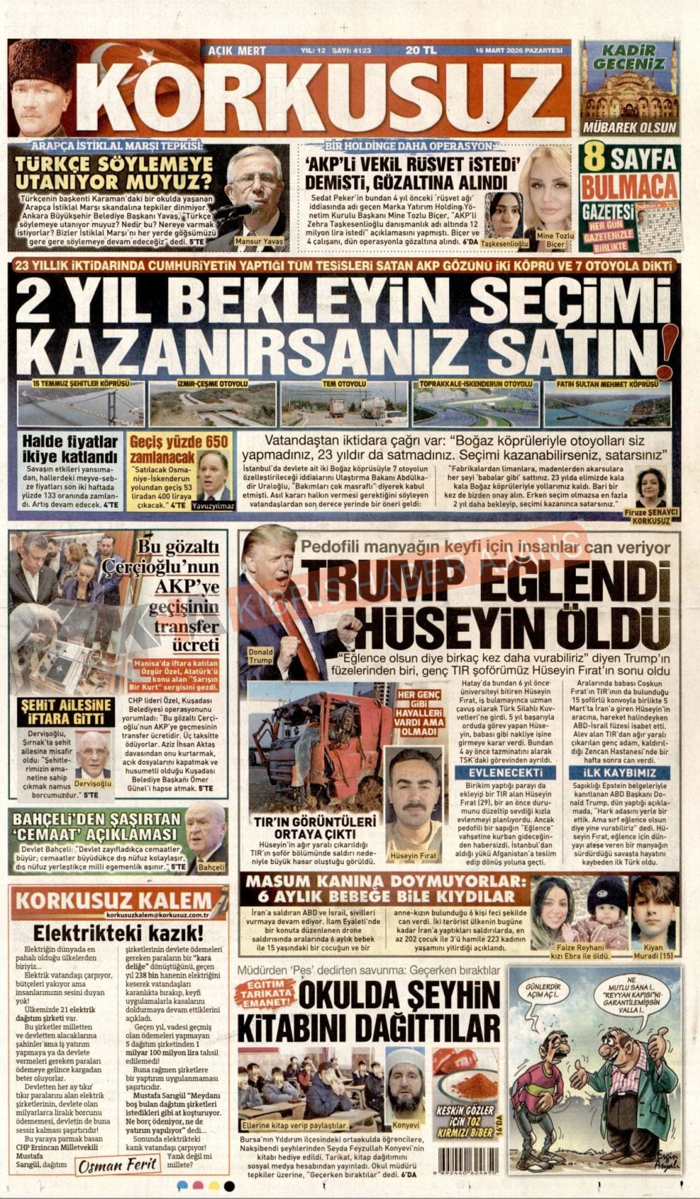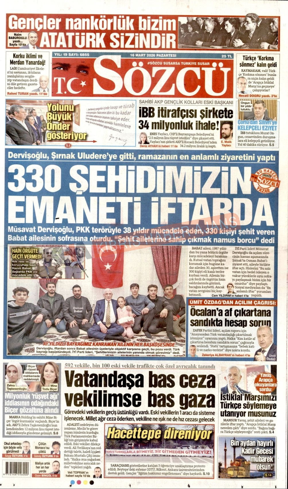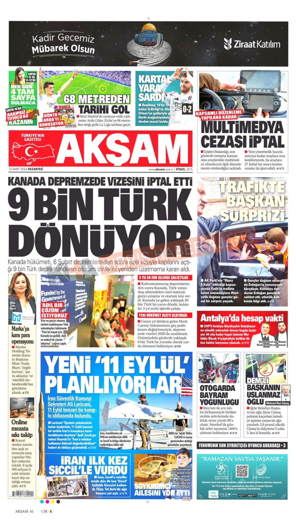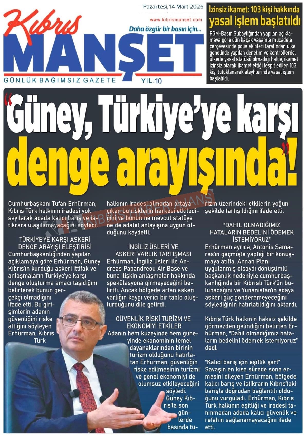 KKTC-TC Gazetelerinde Bugün (16 MART 2026)