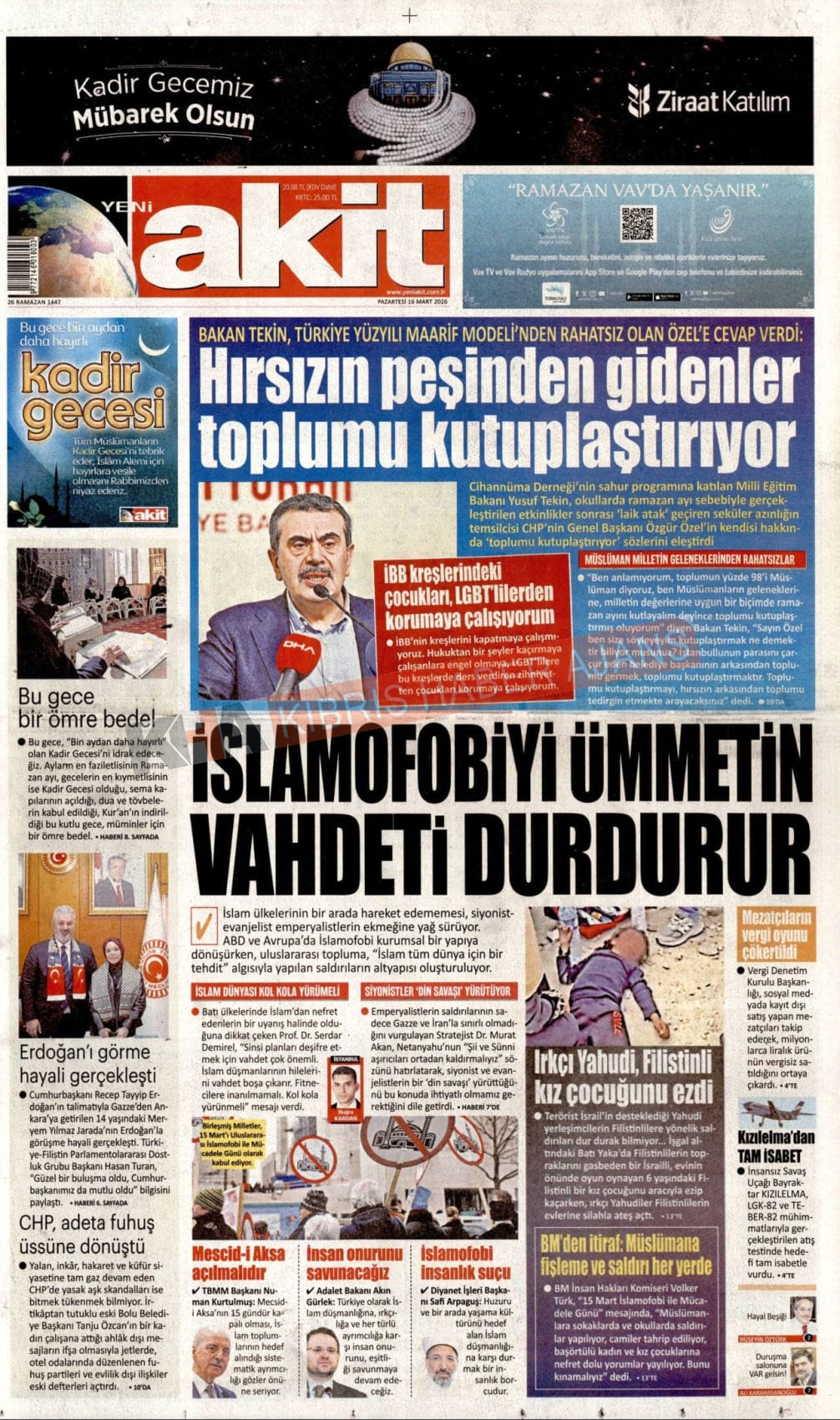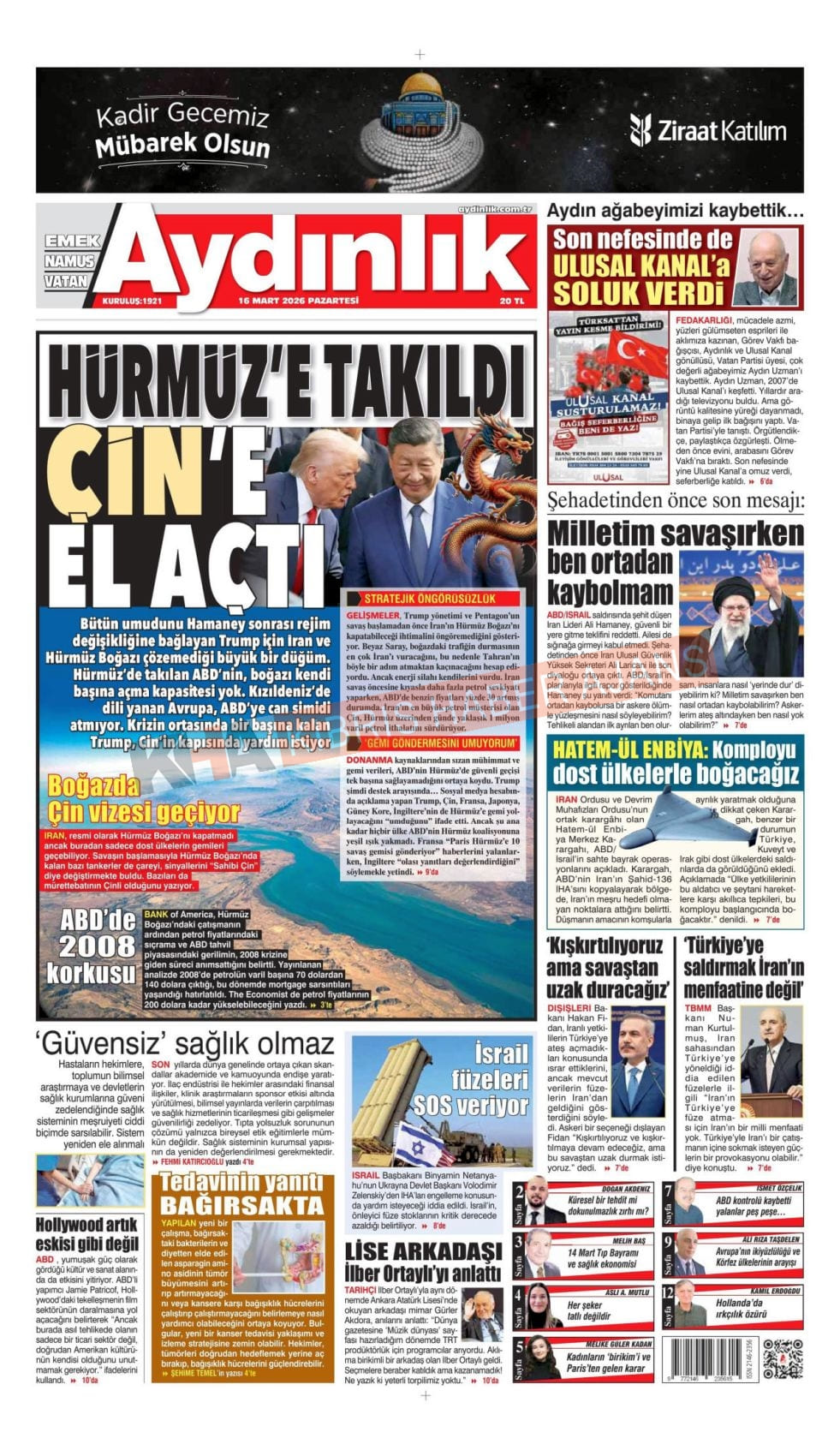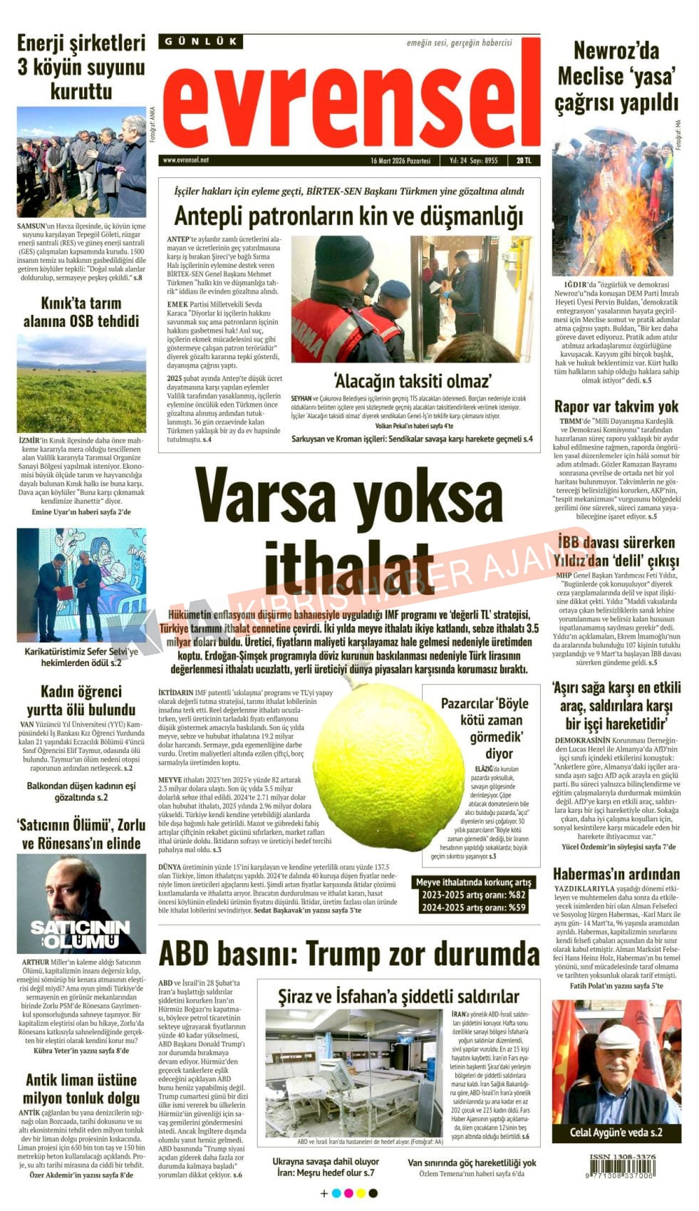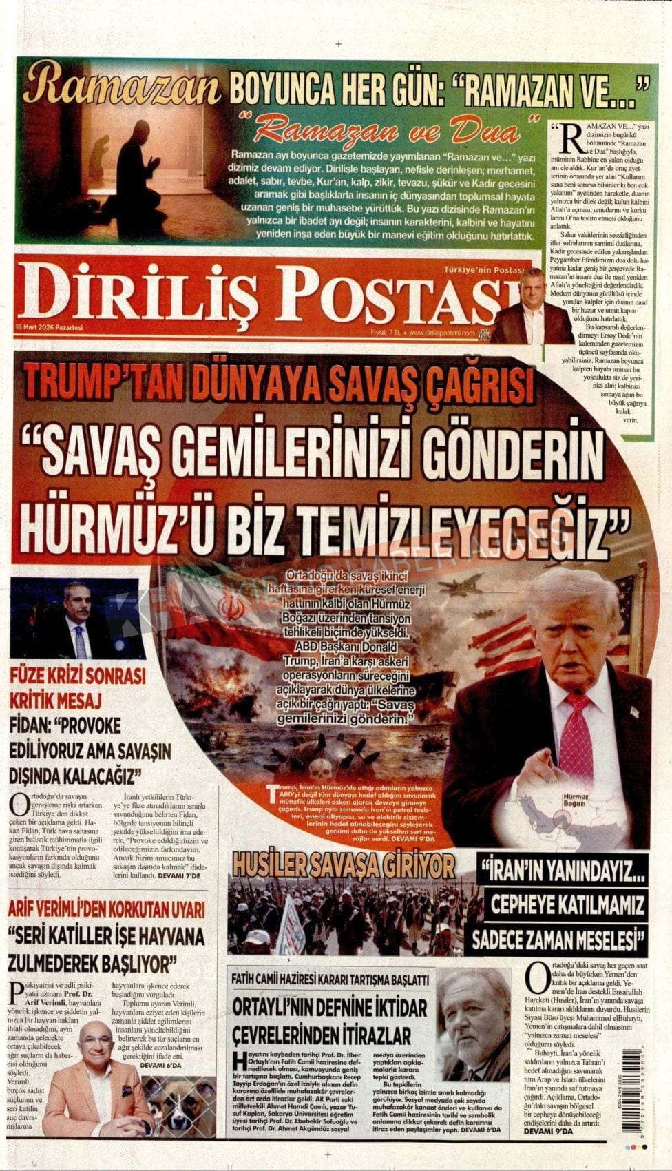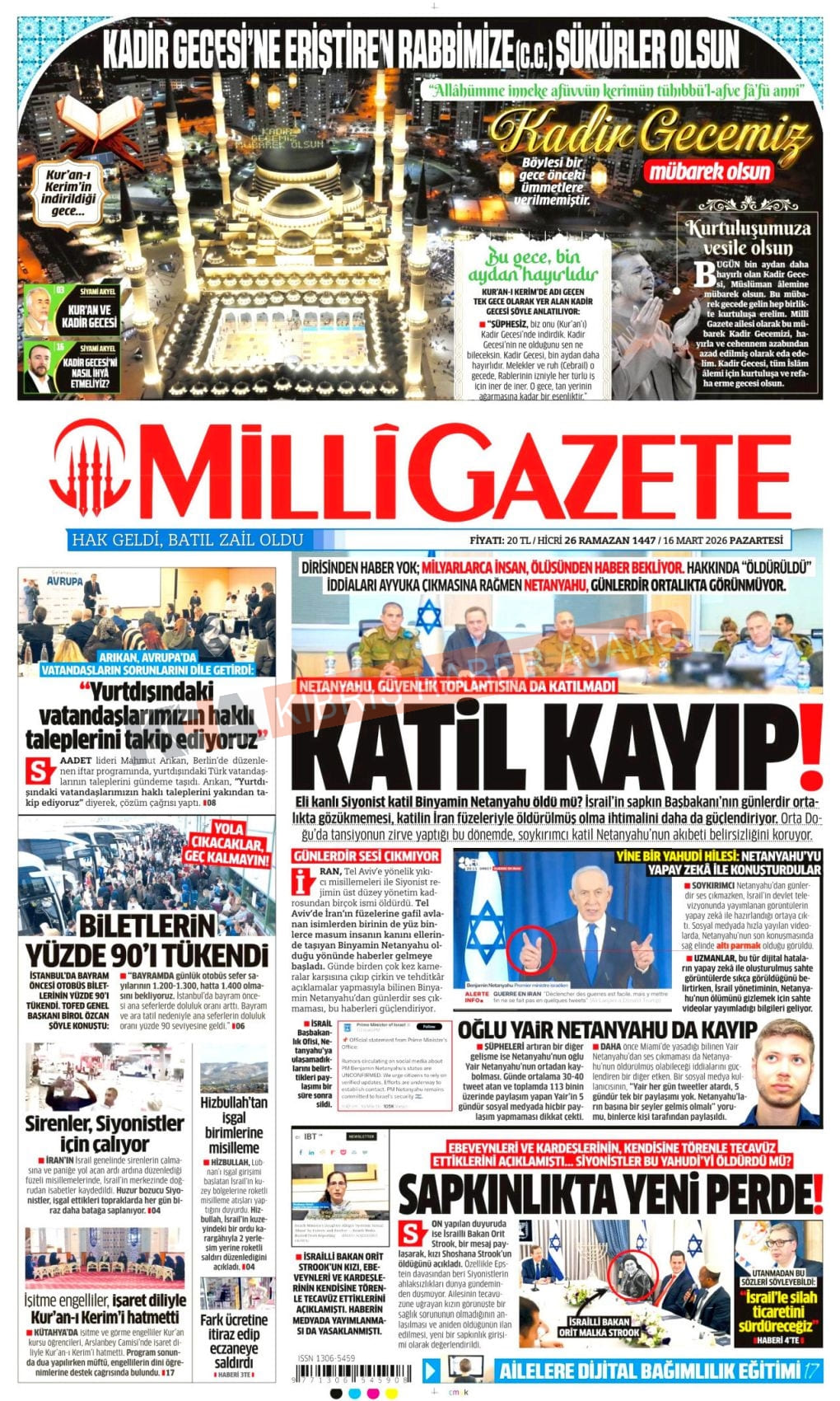 KKTC-TC Gazetelerinde Bugün (16 MART 2026)