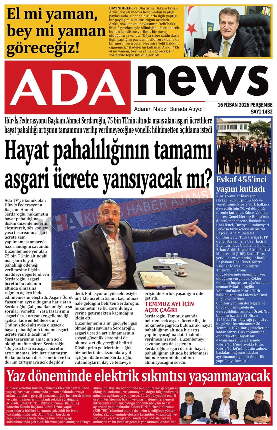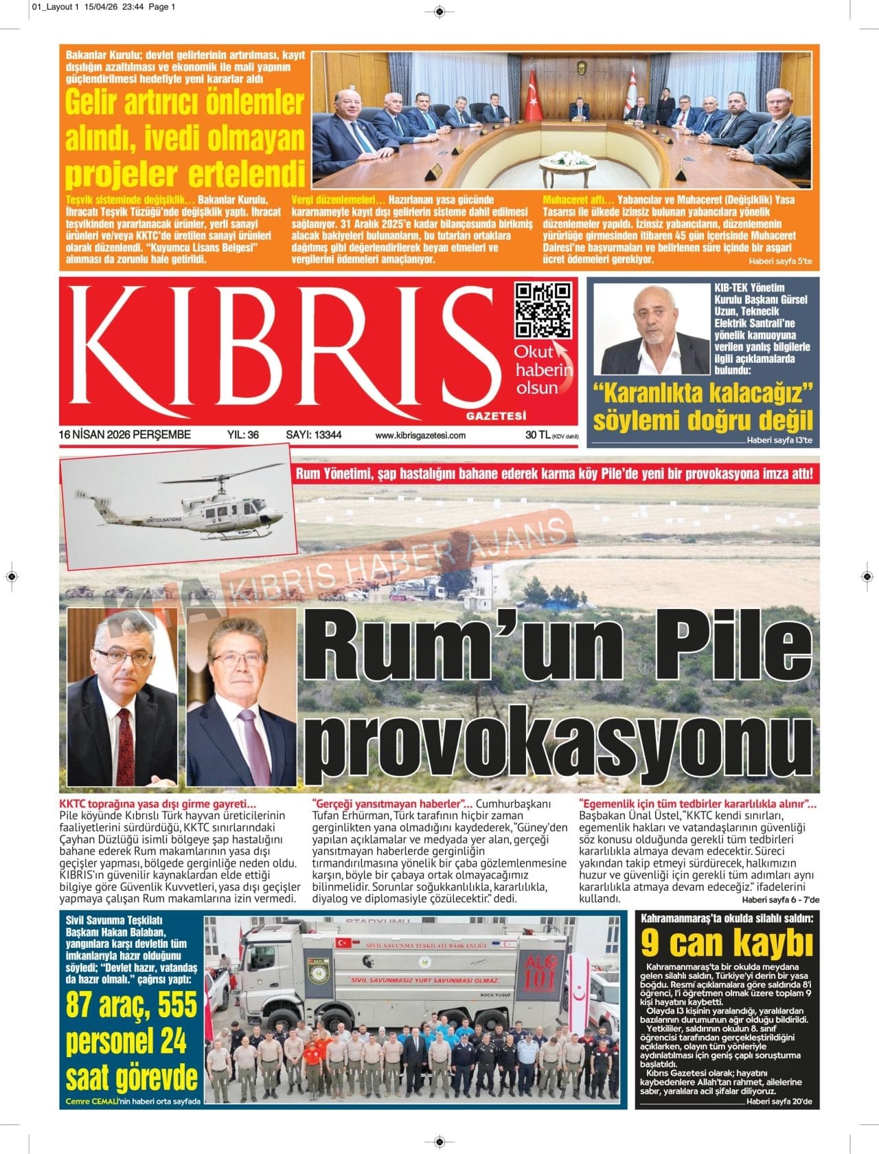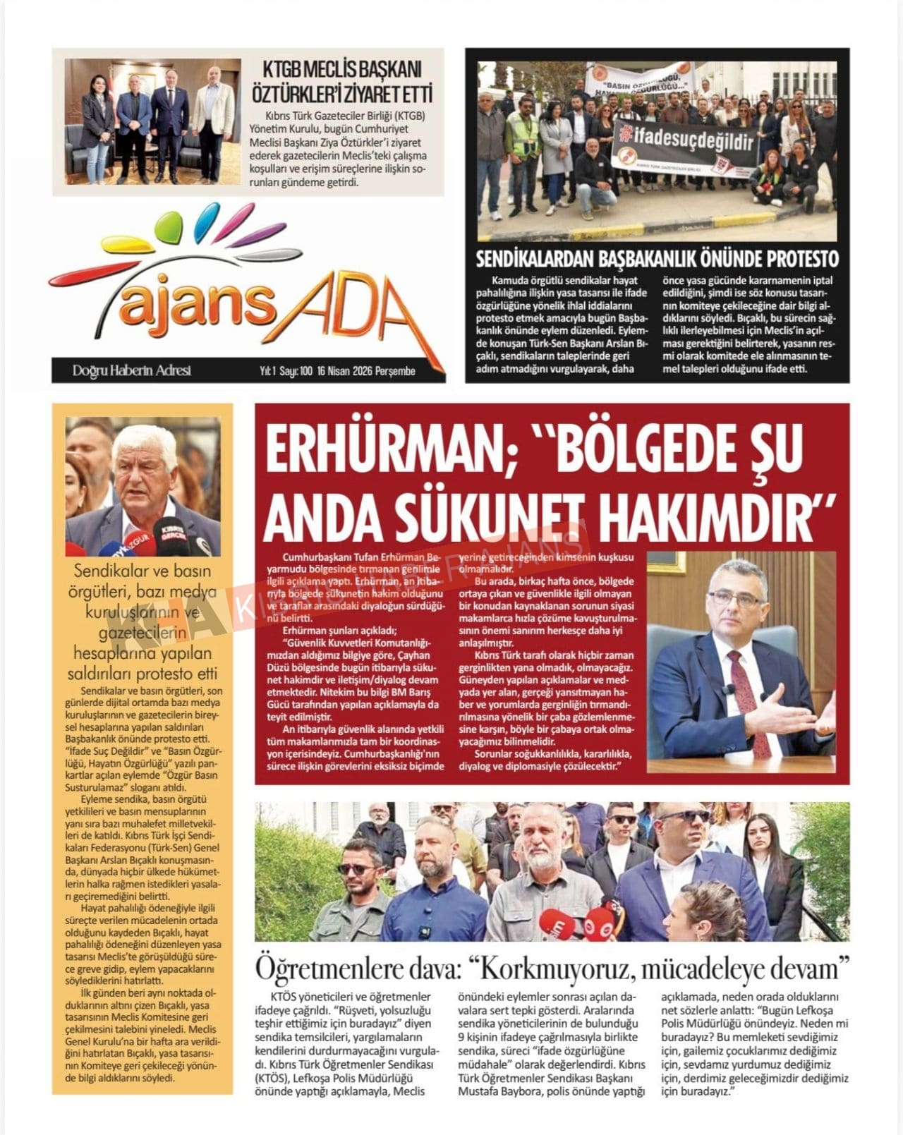 Sitede yayınlanan gazetelerdeki içeriklerden gazete sahipleri sorumludur. Yayınlanan gazeteler ve içeriklerinden Kıbrıs Haber Ajans ve Ajans Cyprus sorumlu tutulamaz.