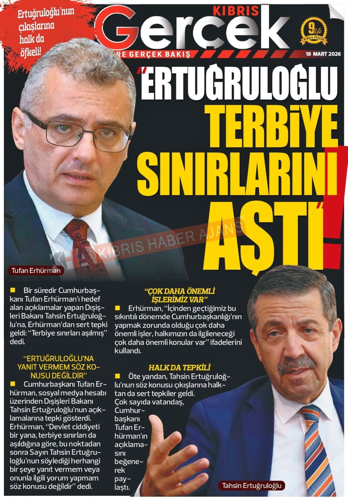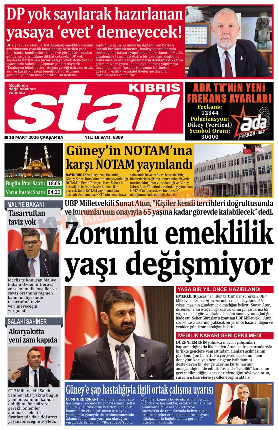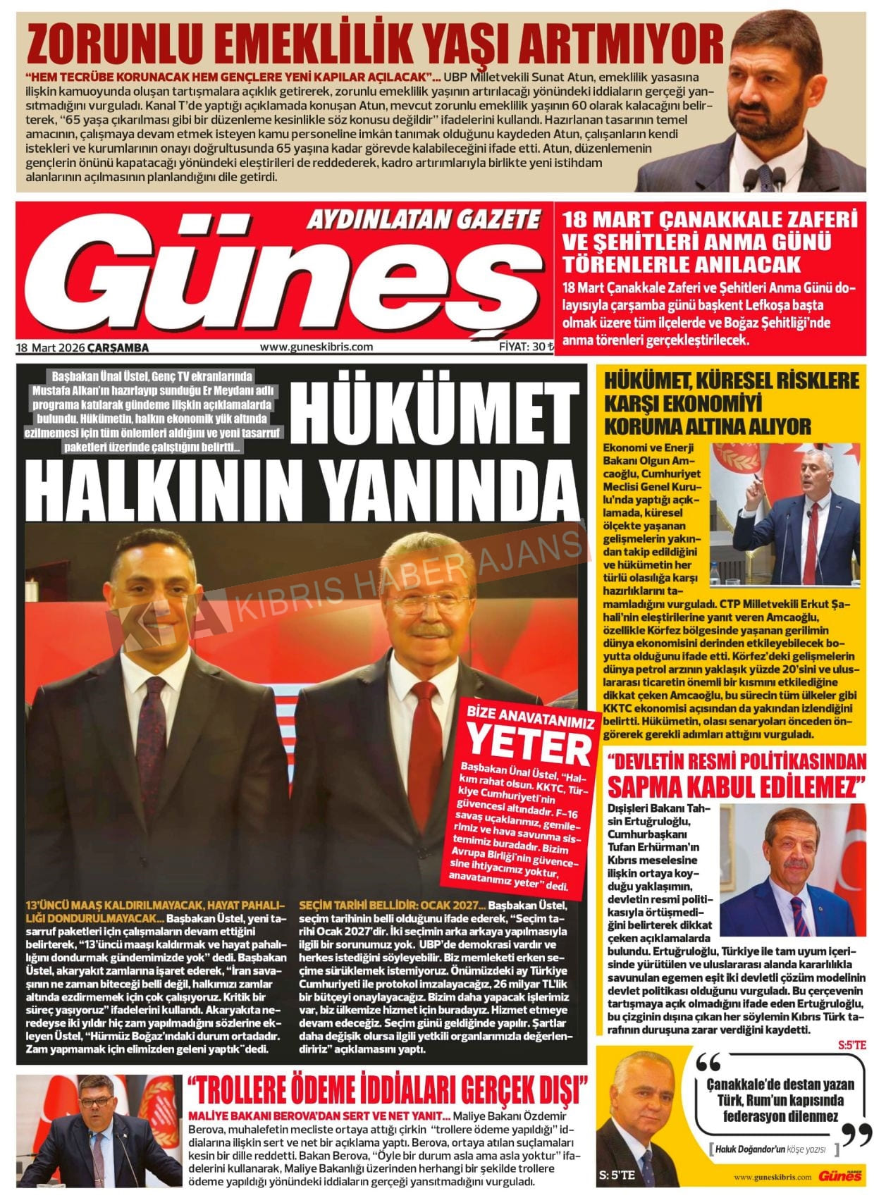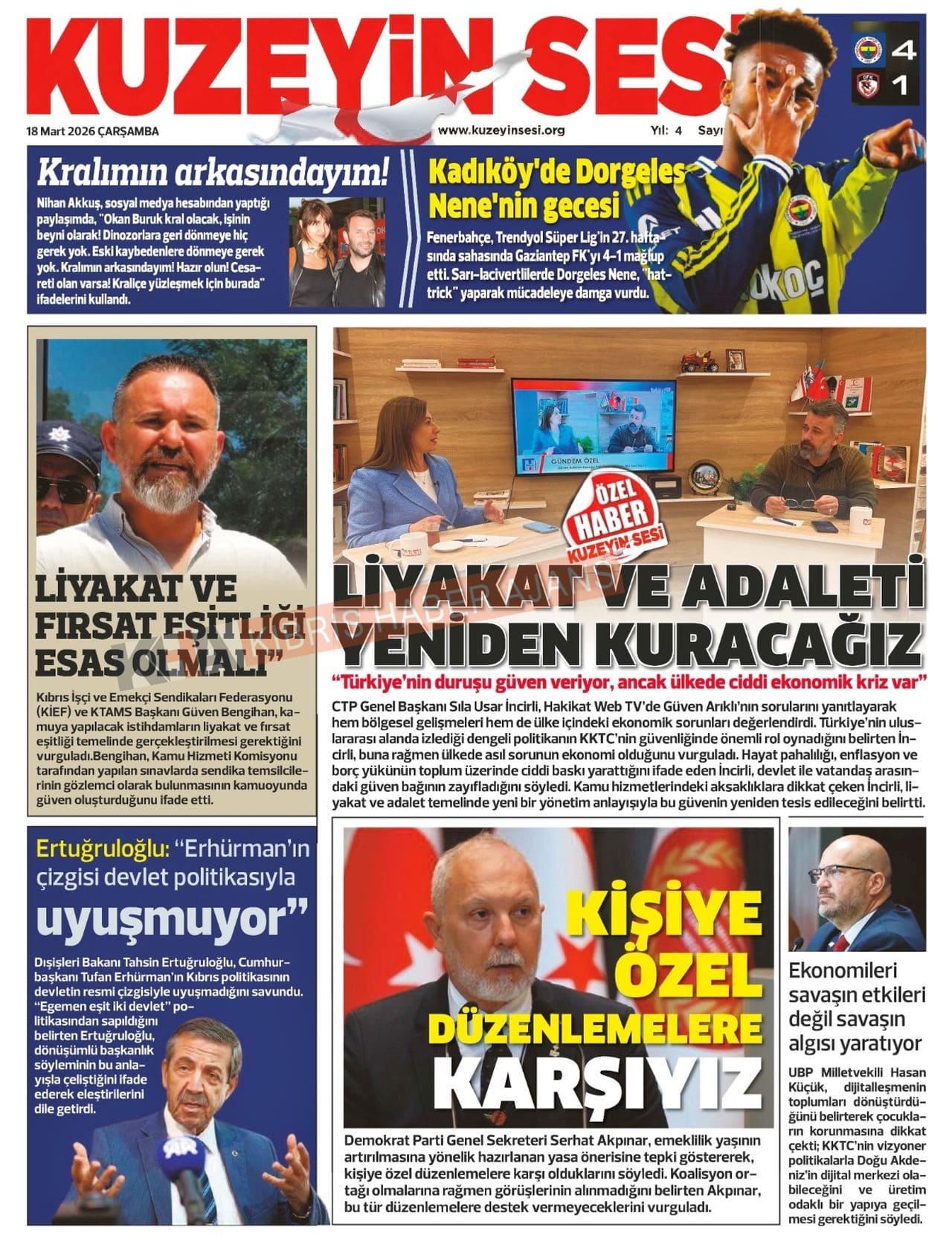 KKTC-TC Gazetelerinde Bugün (18 MART 2026)