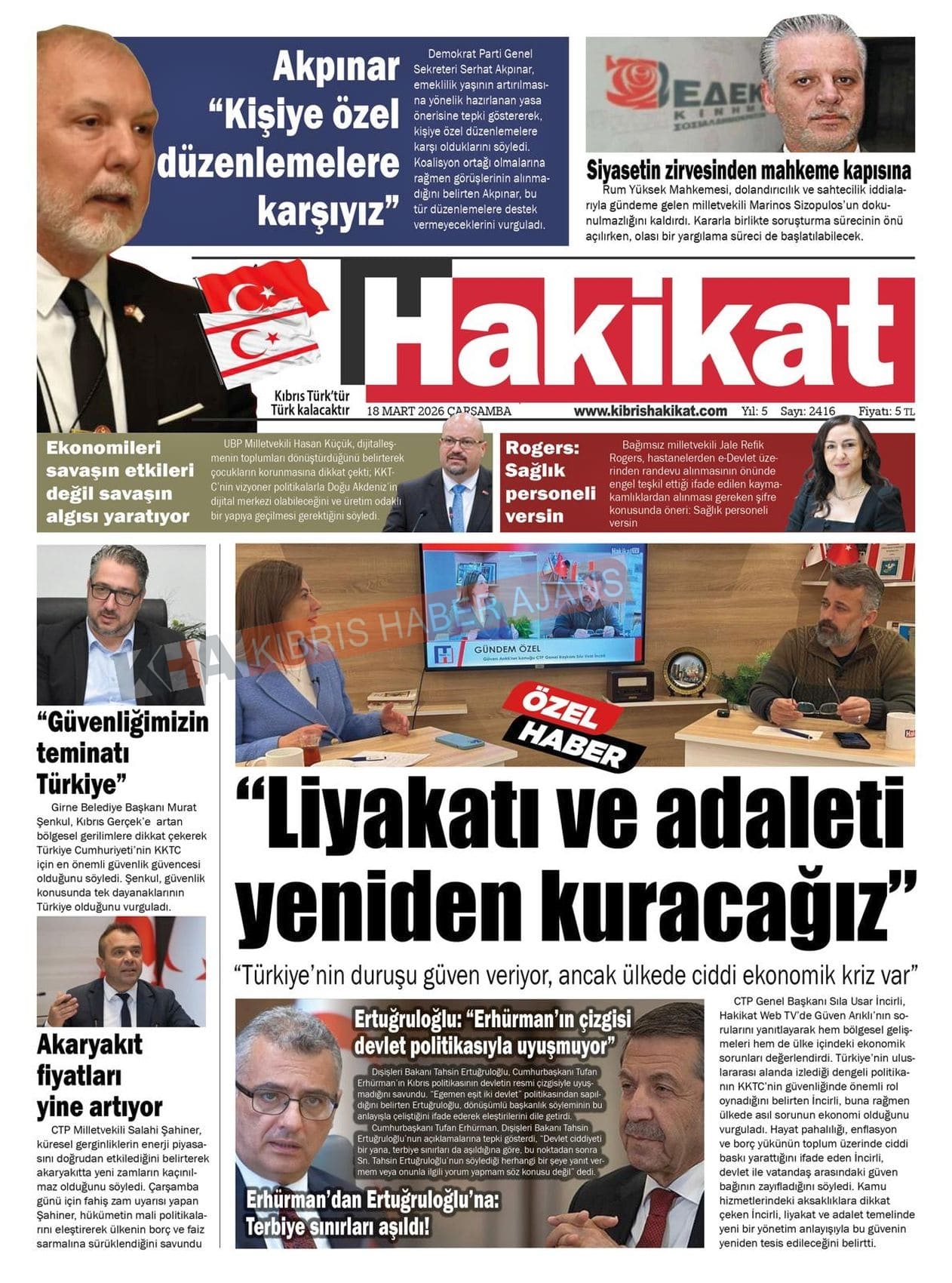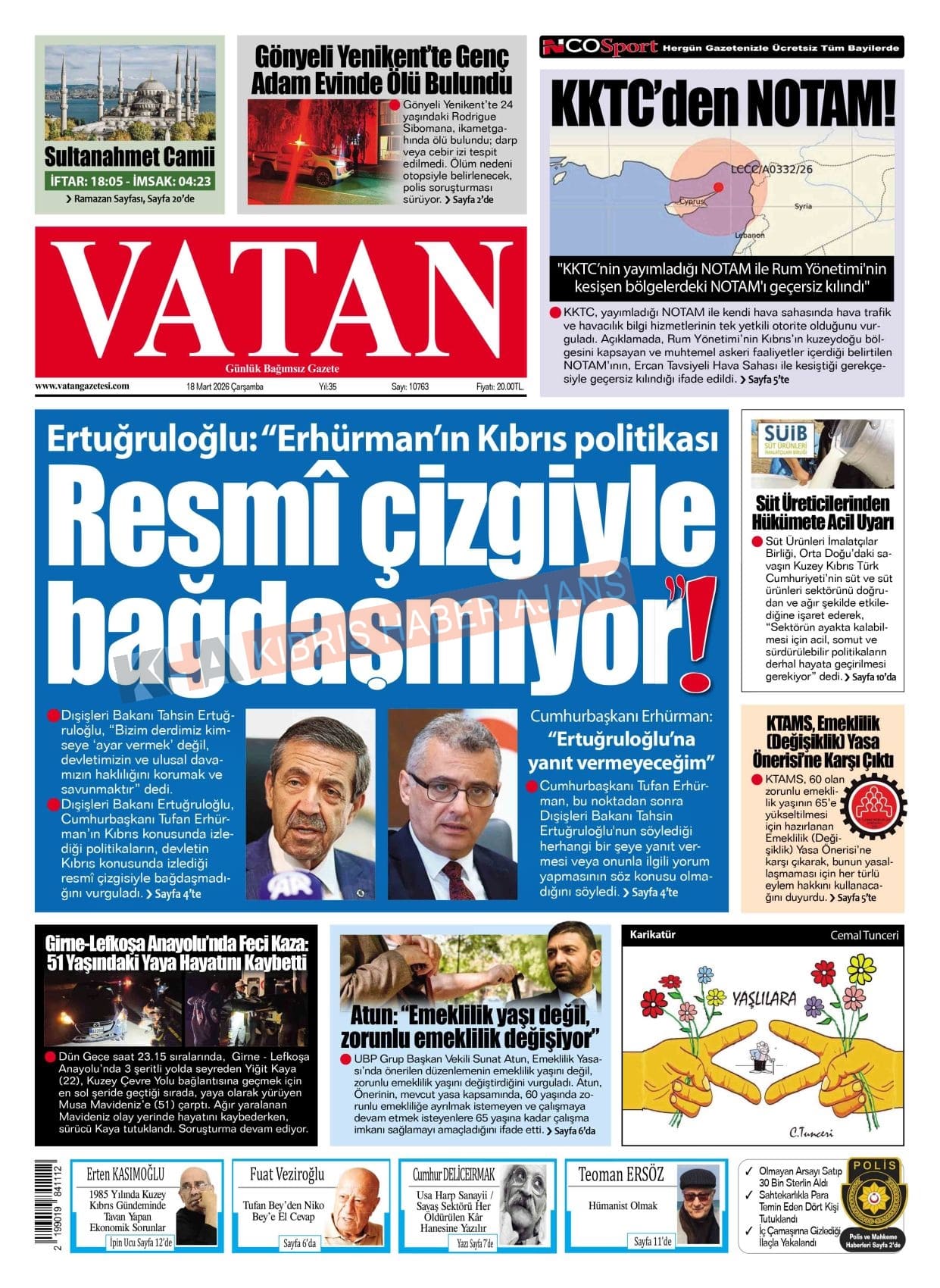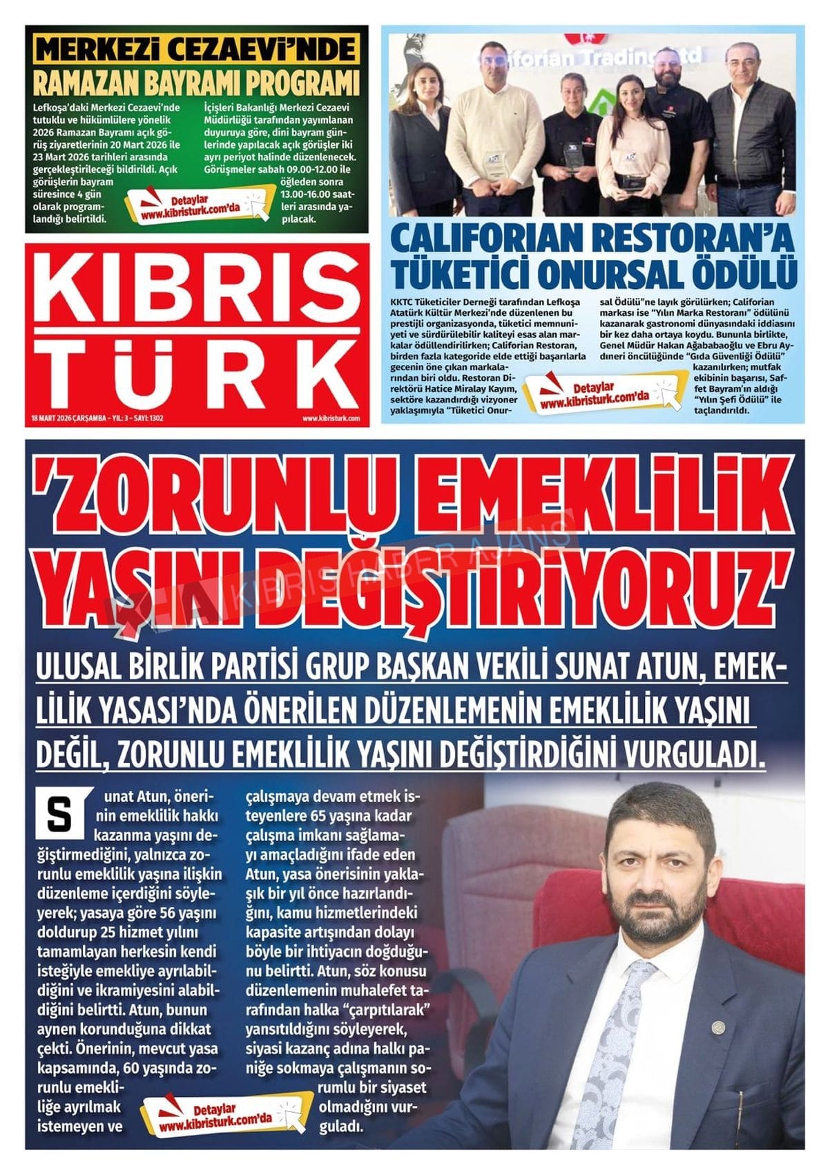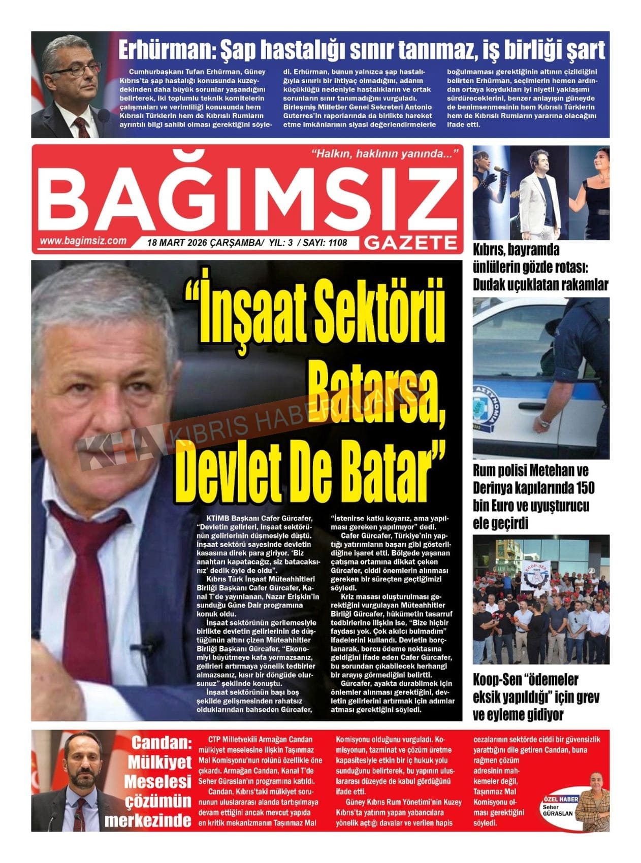 KKTC-TC Gazetelerinde Bugün (18 MART 2026)