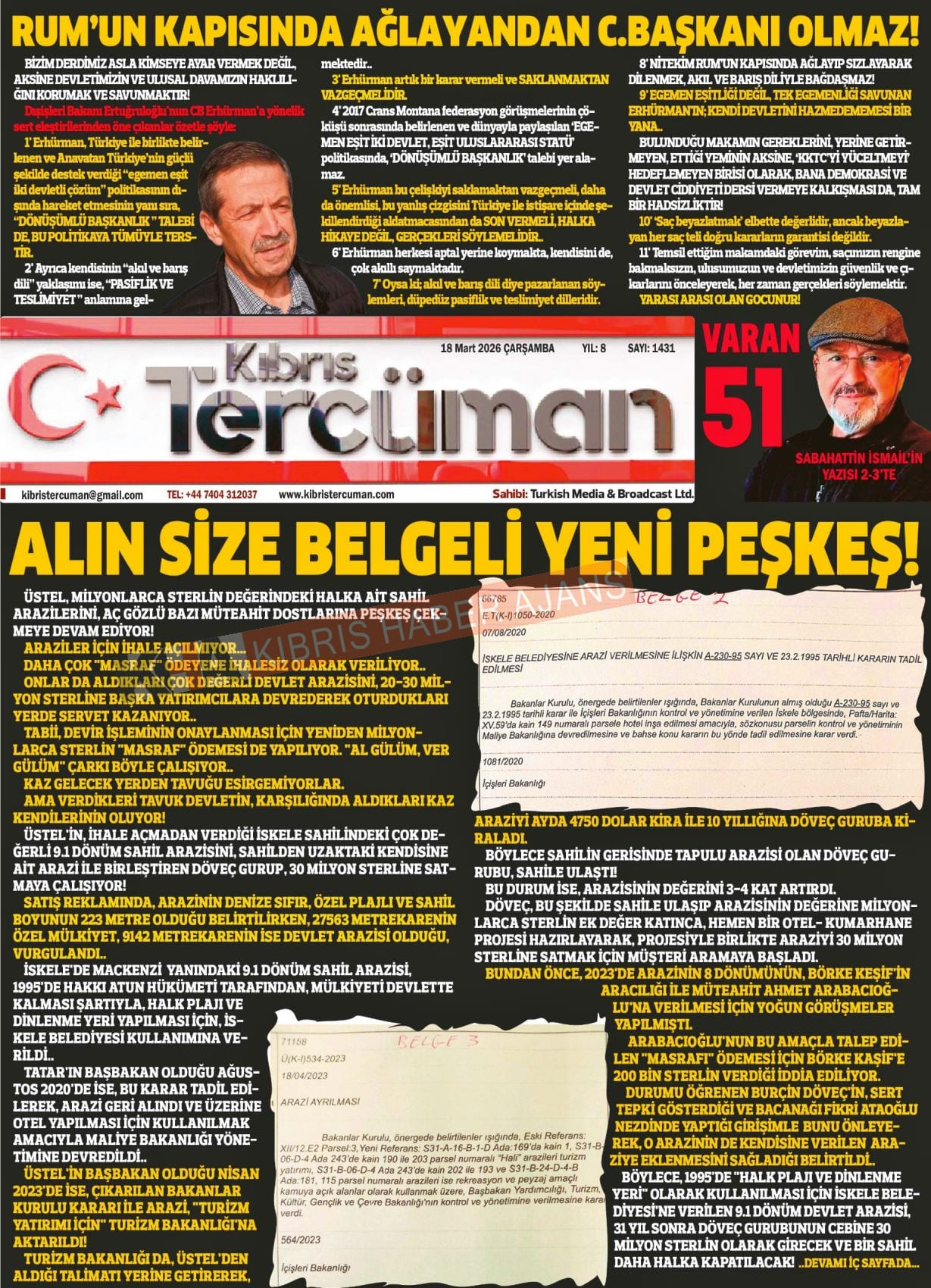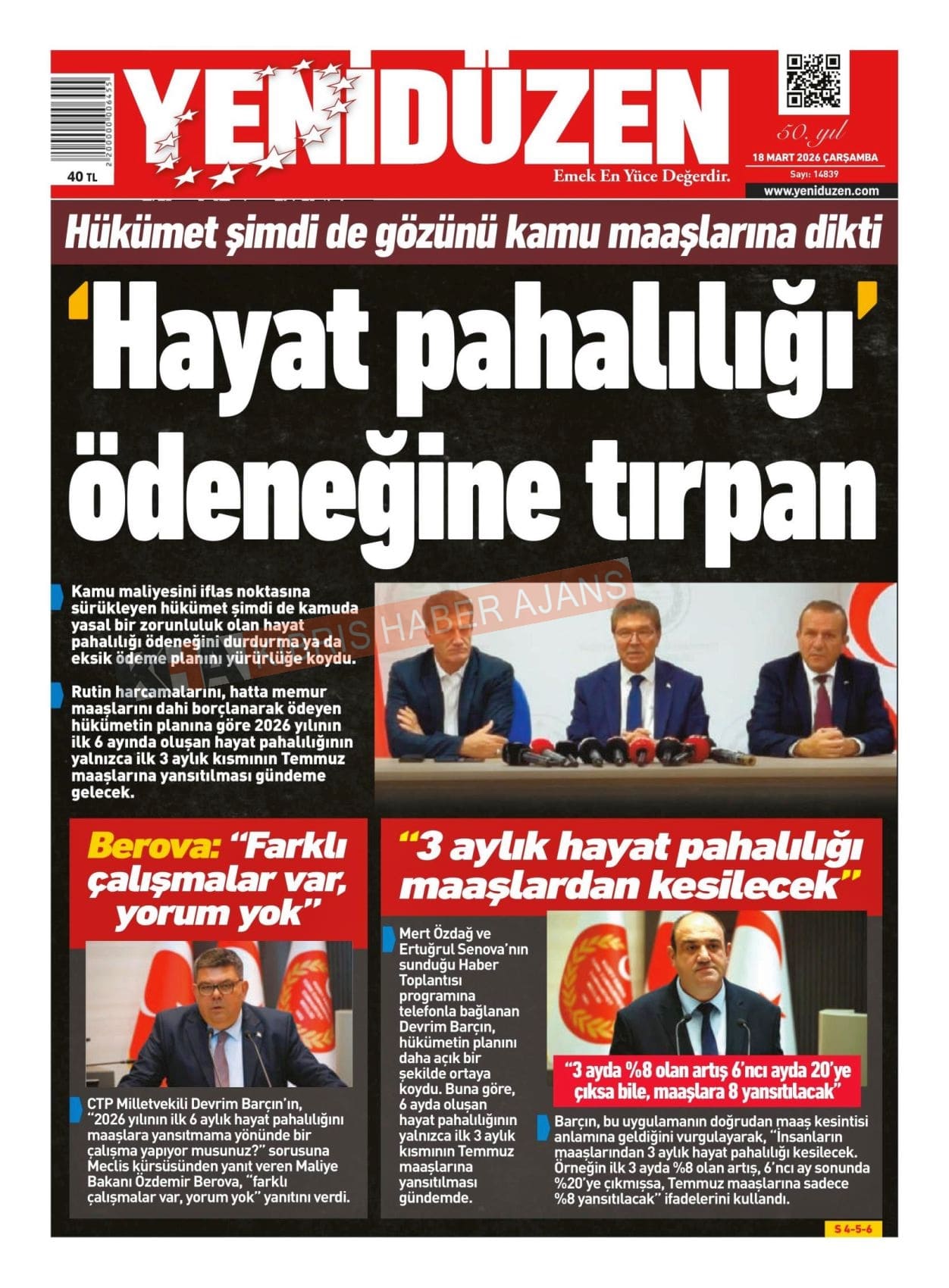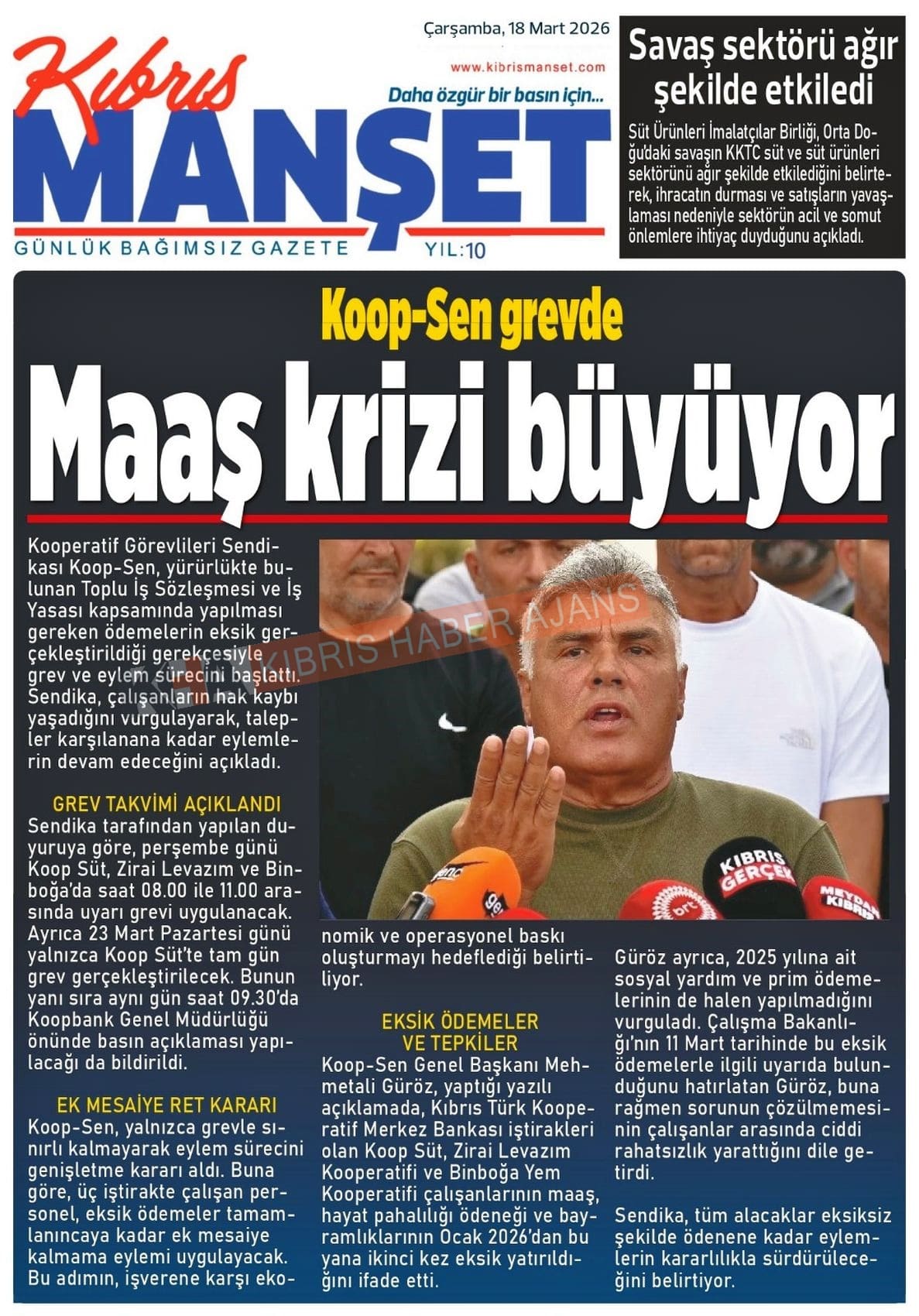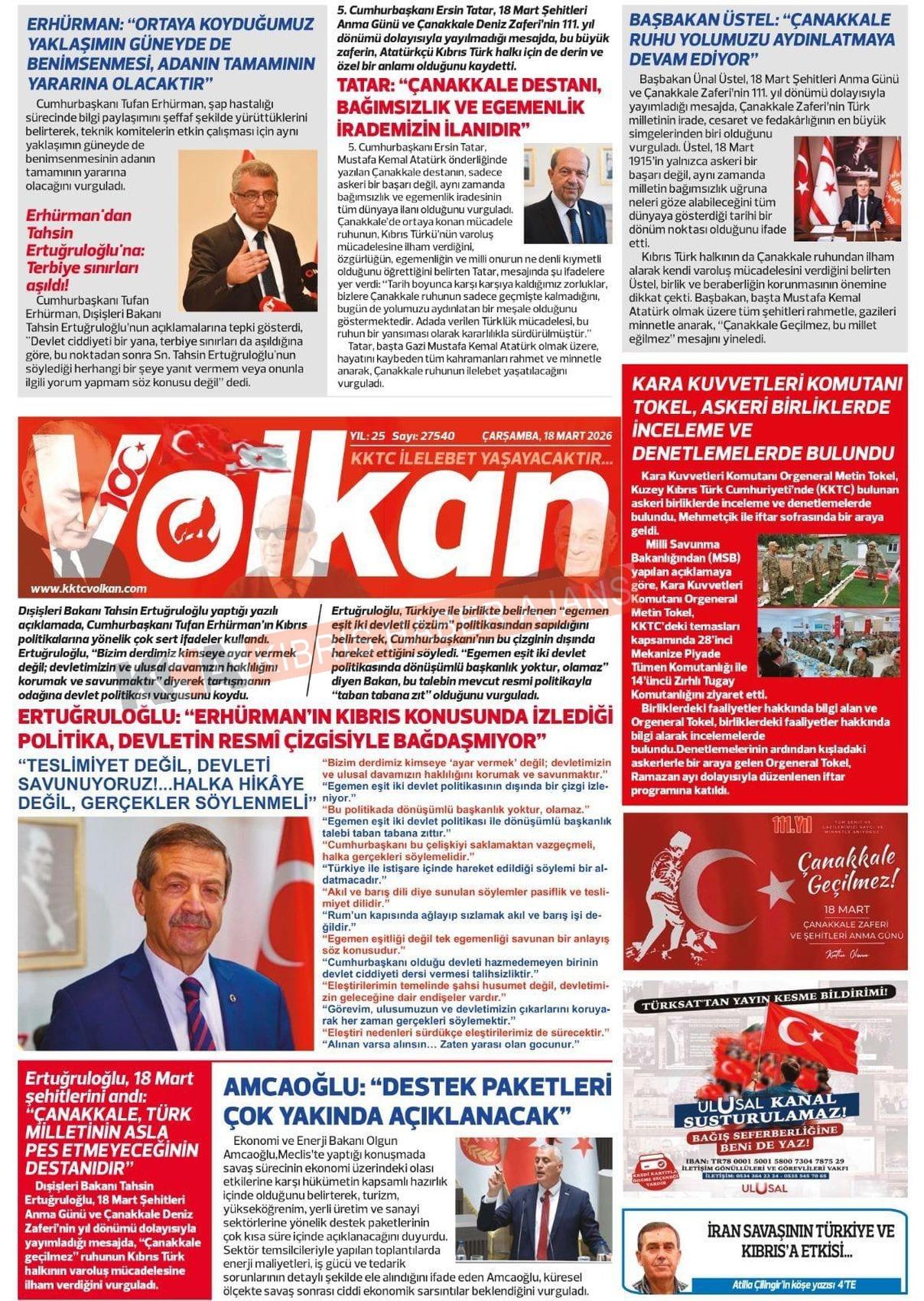 KKTC-TC Gazetelerinde Bugün (18 MART 2026)