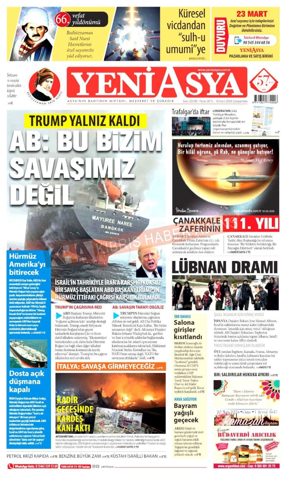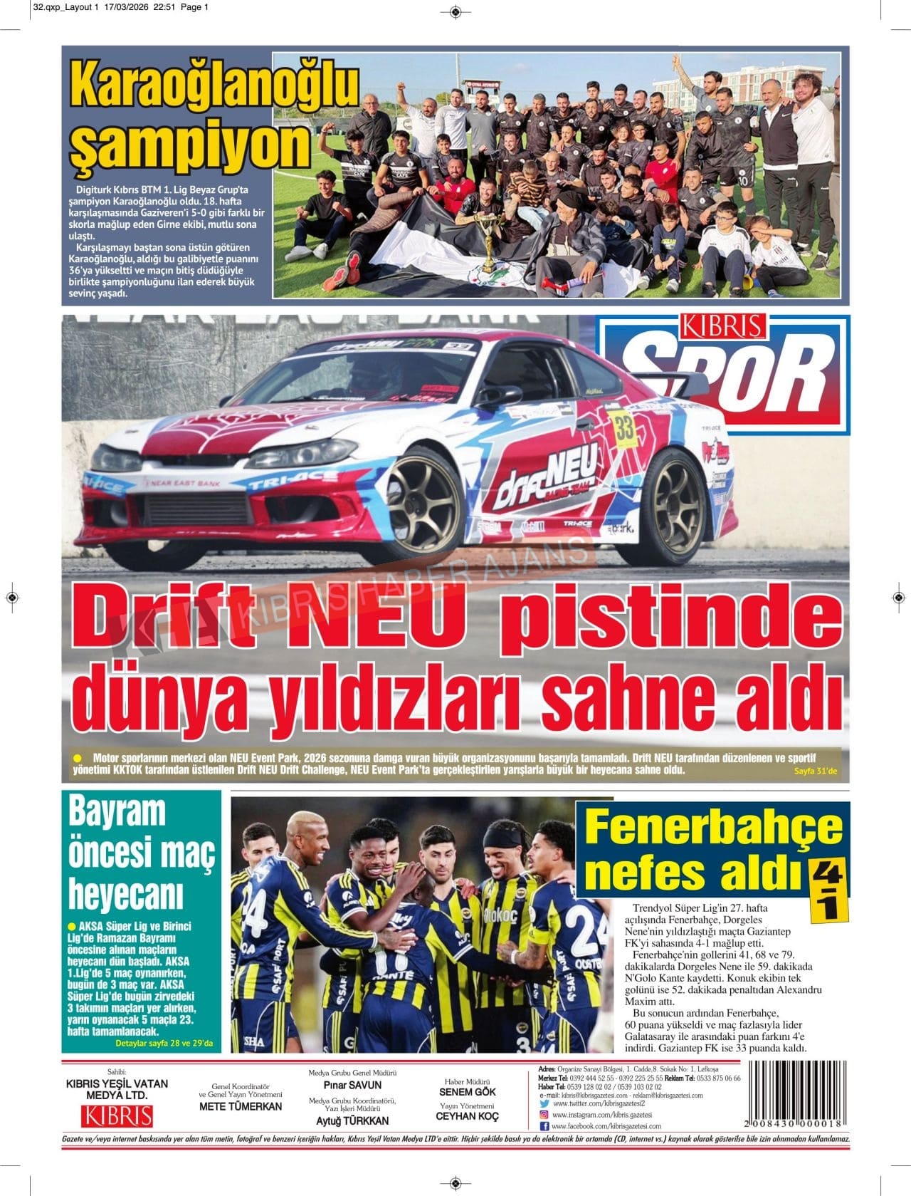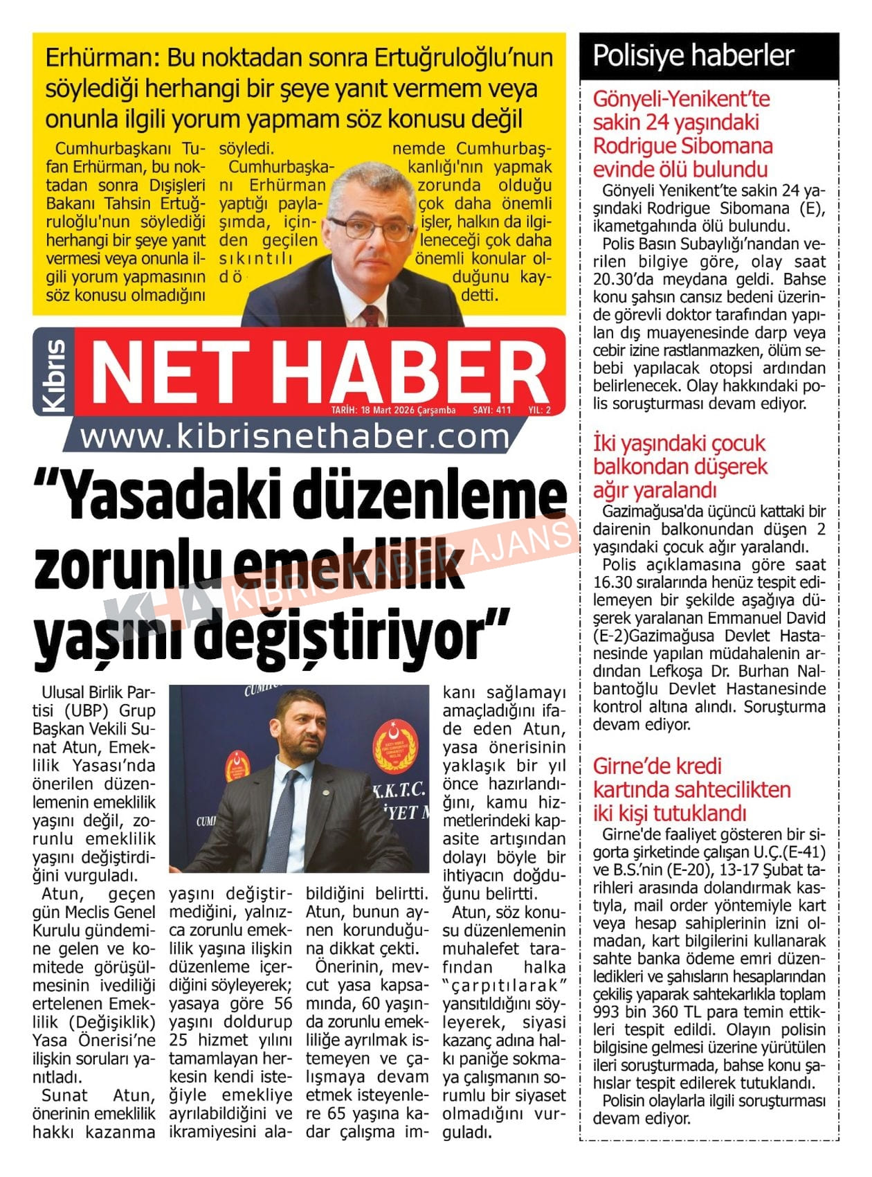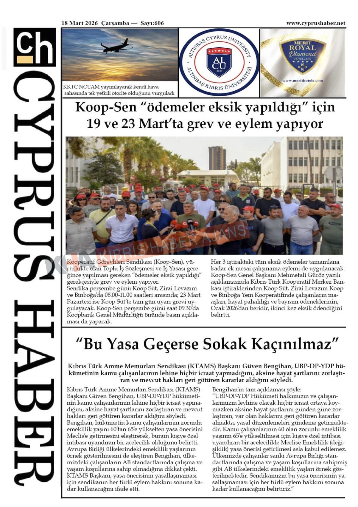 KKTC-TC Gazetelerinde Bugün (18 MART 2026)
