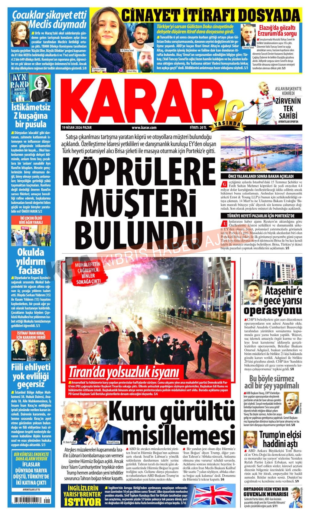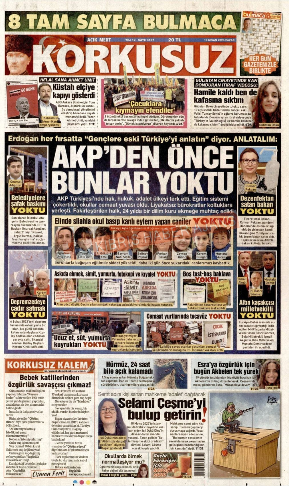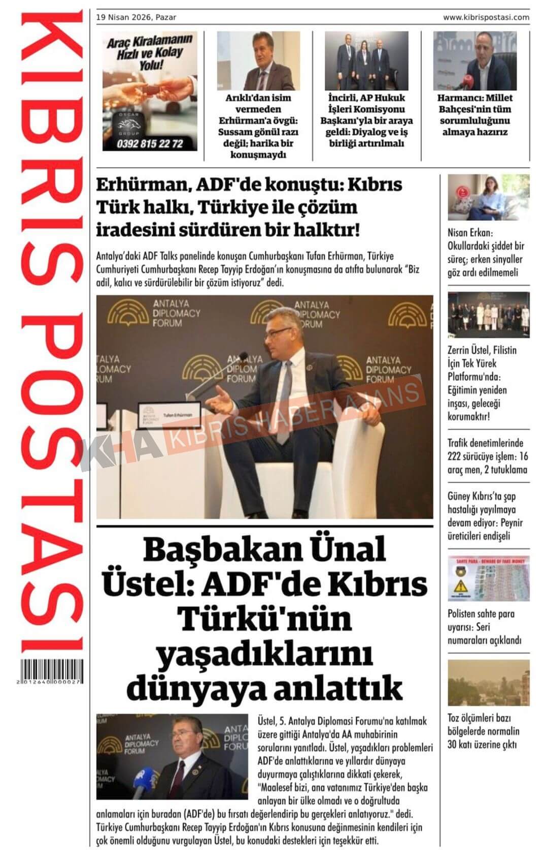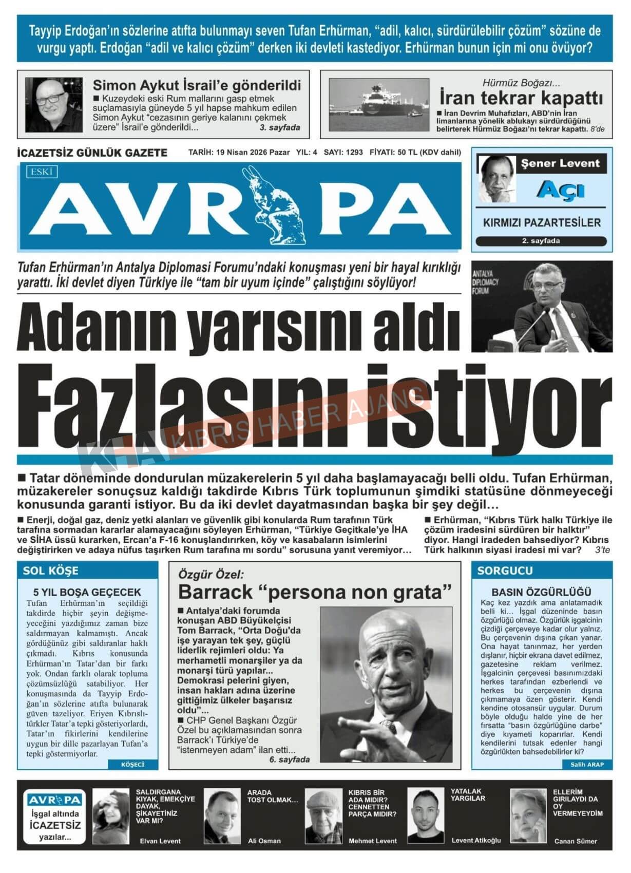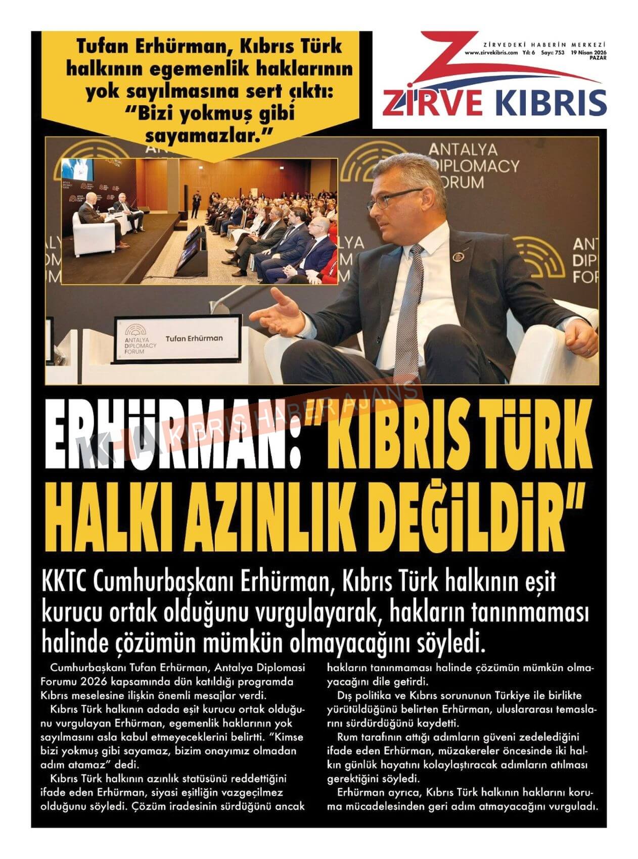 Sitede yayınlanan gazetelerdeki içeriklerden gazete sahipleri sorumludur. Yayınlanan gazeteler ve içeriklerinden Kıbrıs Haber Ajans ve Ajans Cyprus sorumlu tutulamaz.
