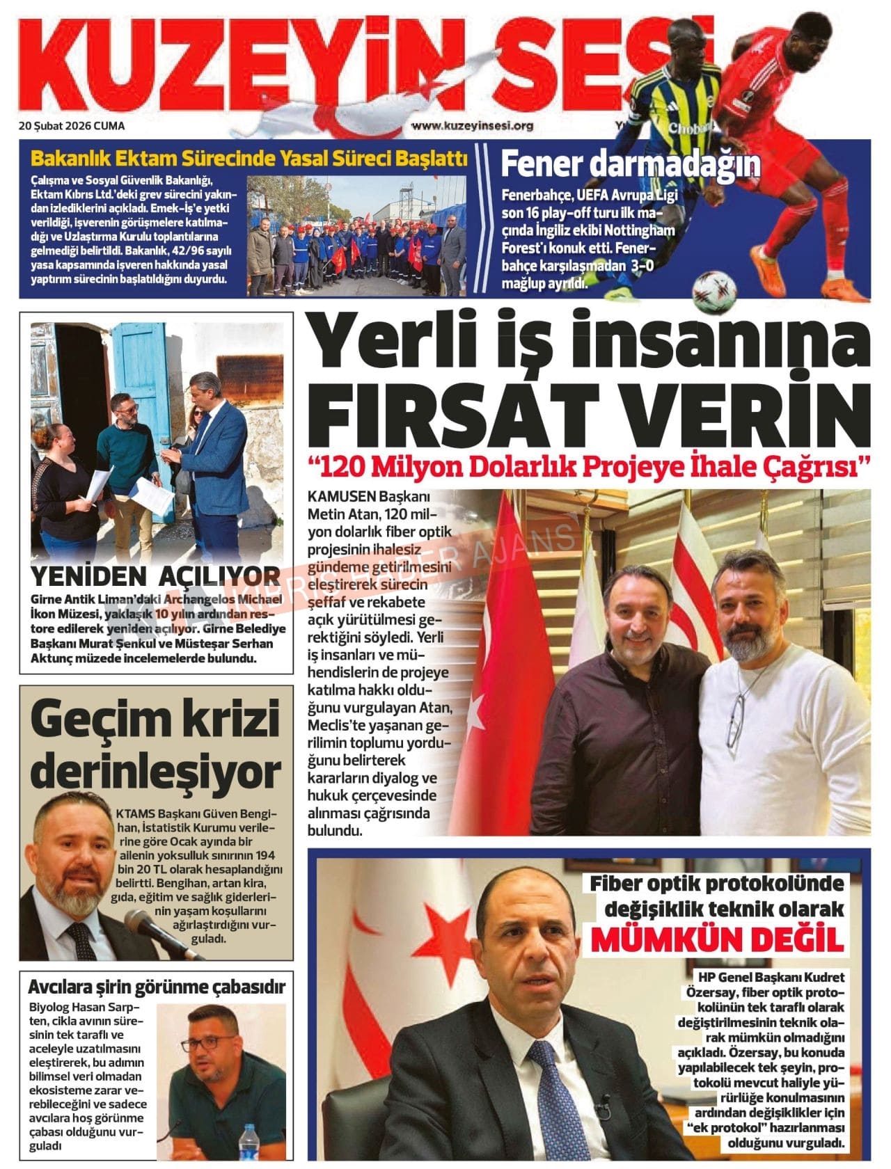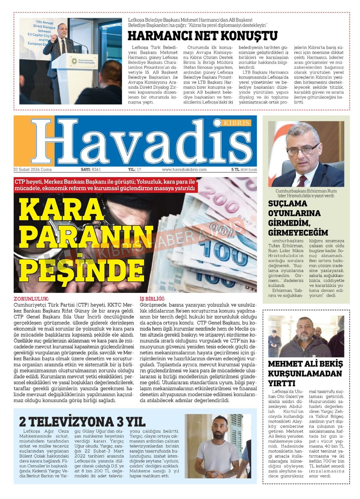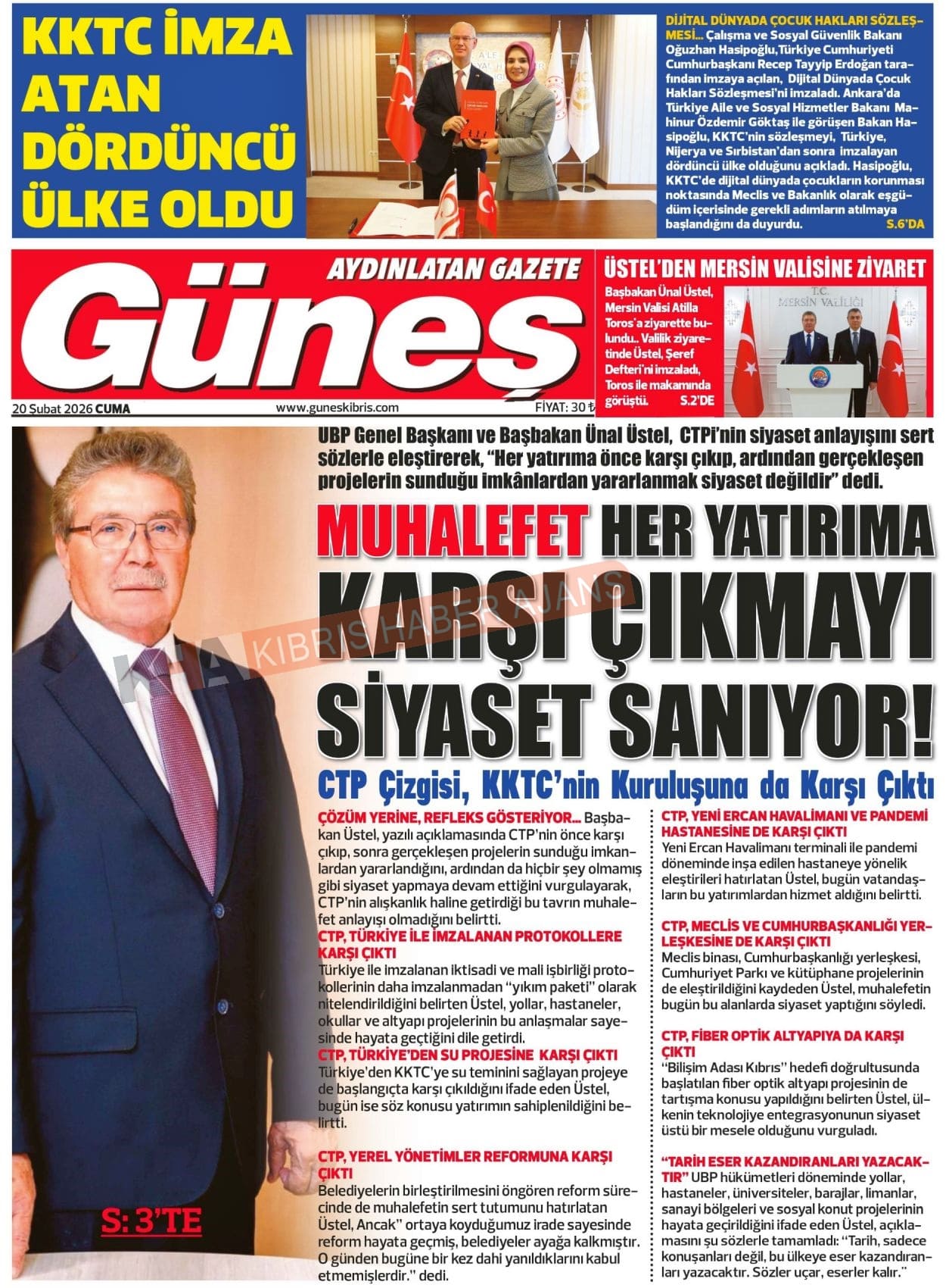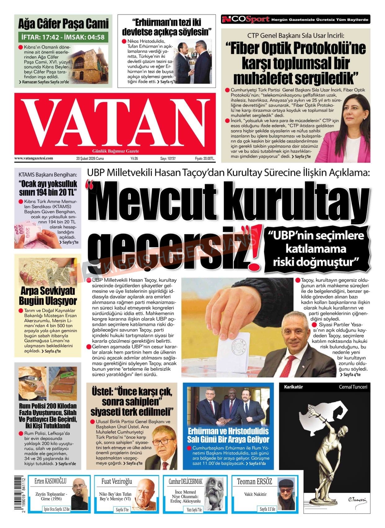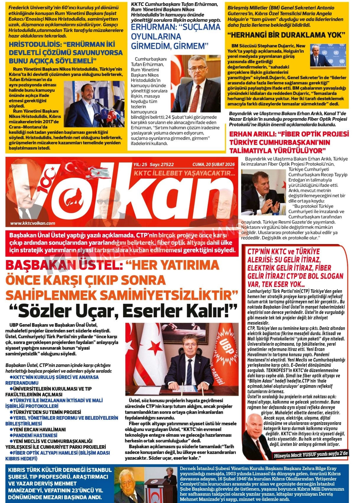 KKTC-TC Gazetelerinde Bugün (20 ŞUBAT 2026)