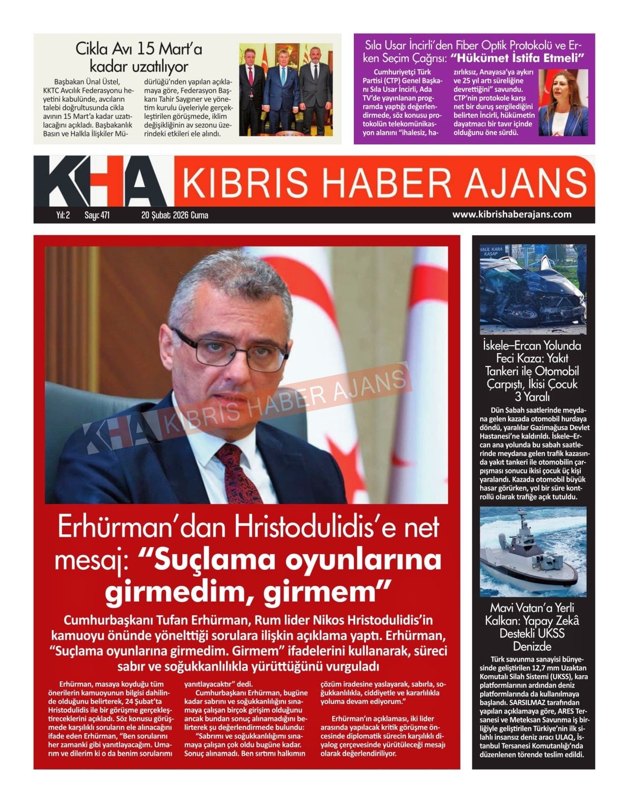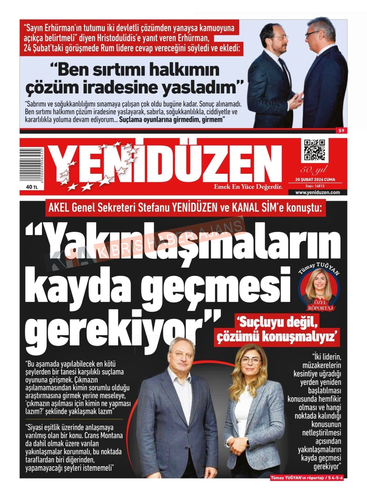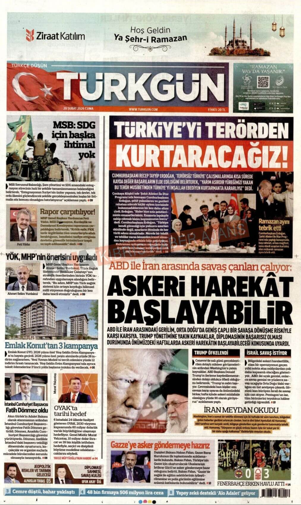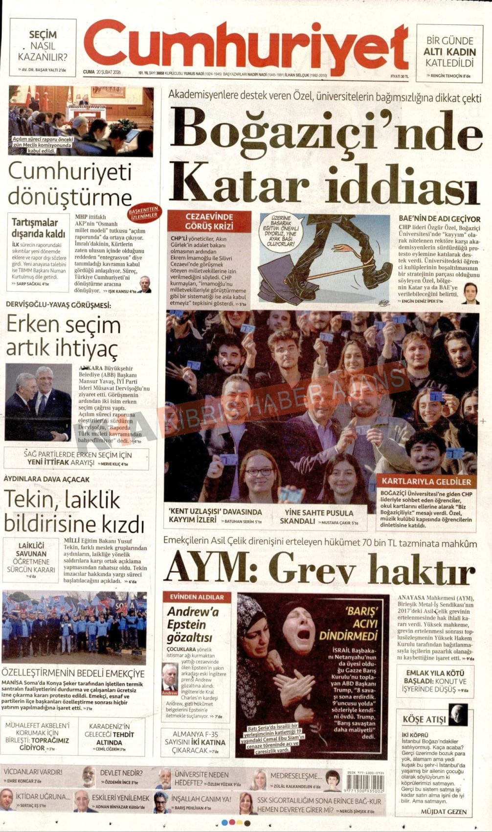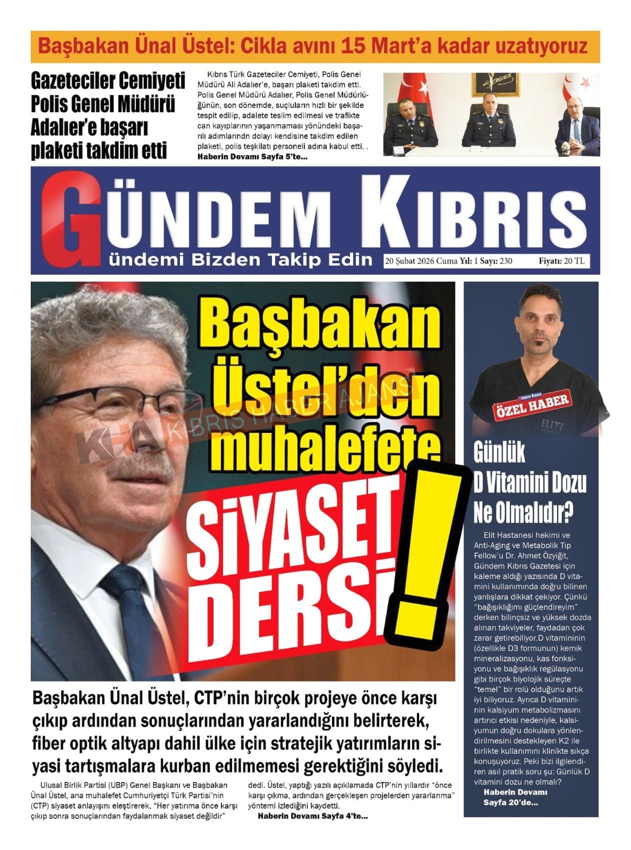 KKTC-TC Gazetelerinde Bugün (20 ŞUBAT 2026)