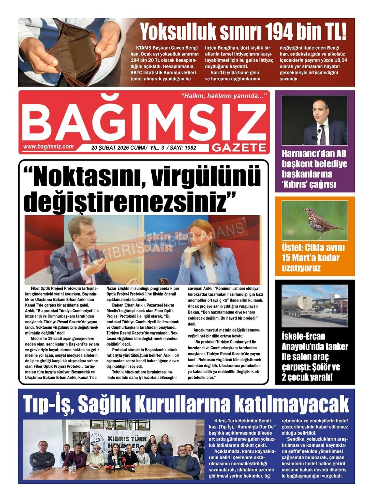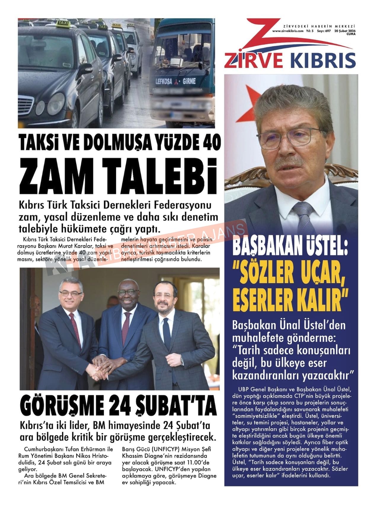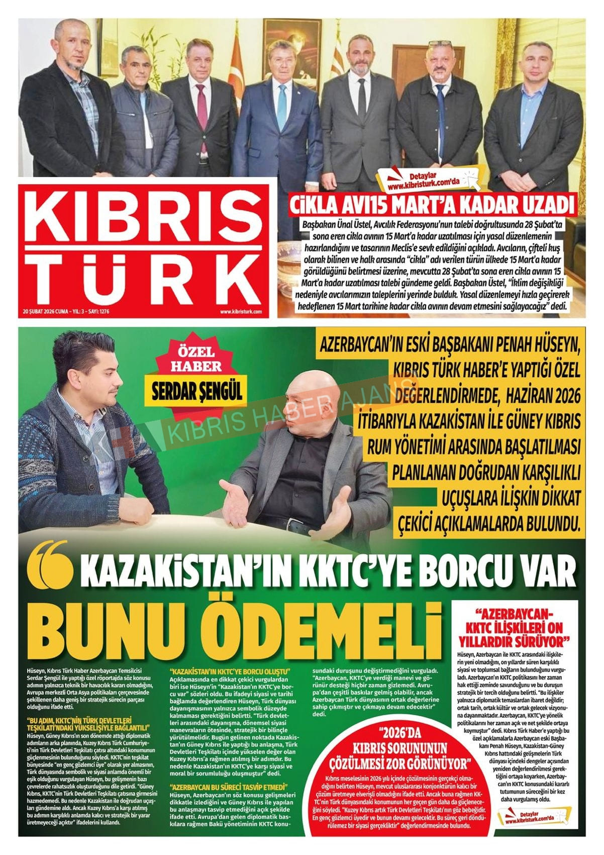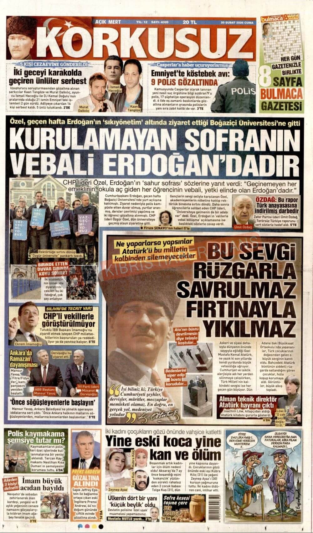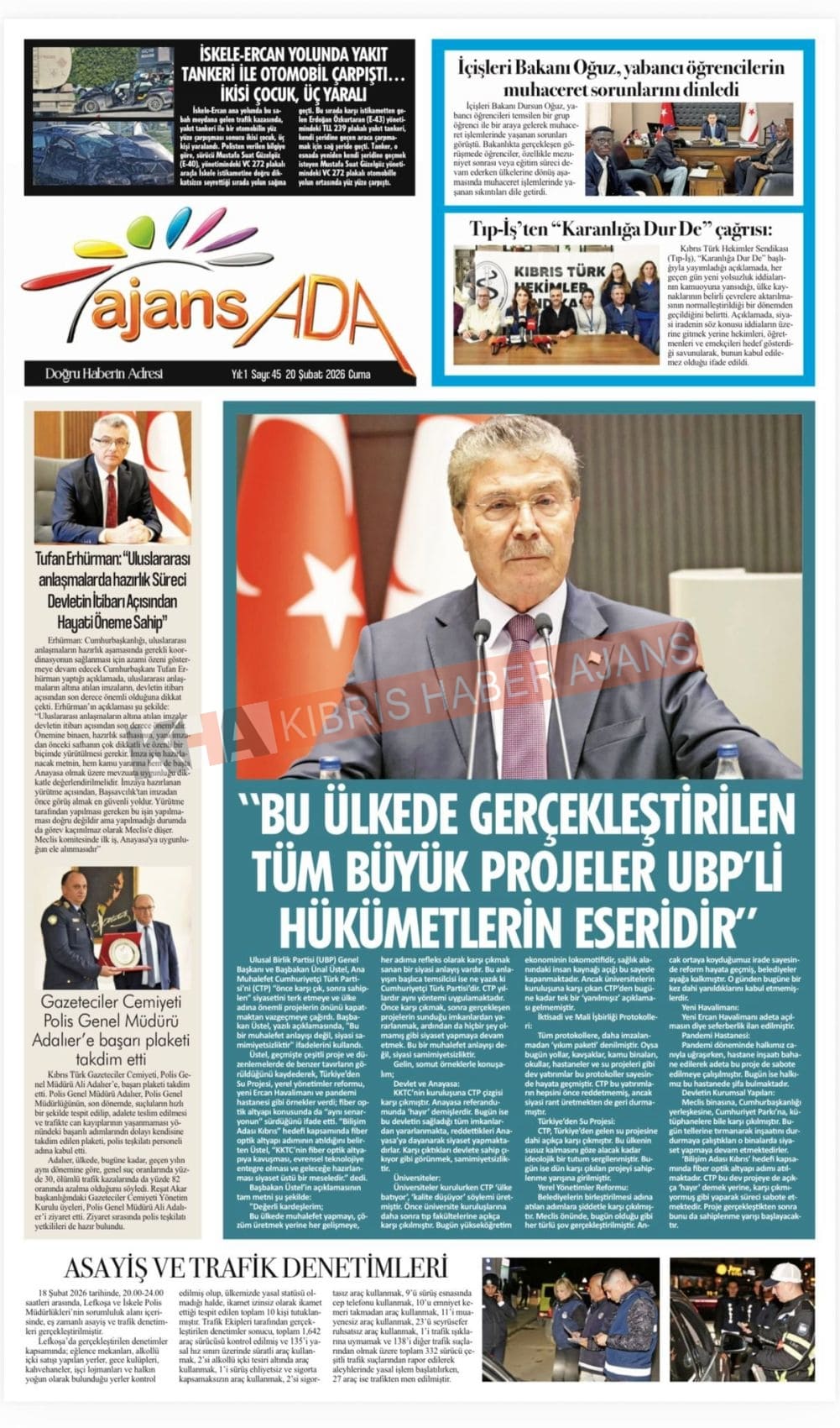 KKTC-TC Gazetelerinde Bugün (20 ŞUBAT 2026)