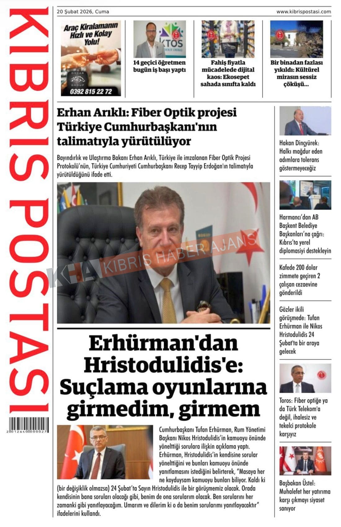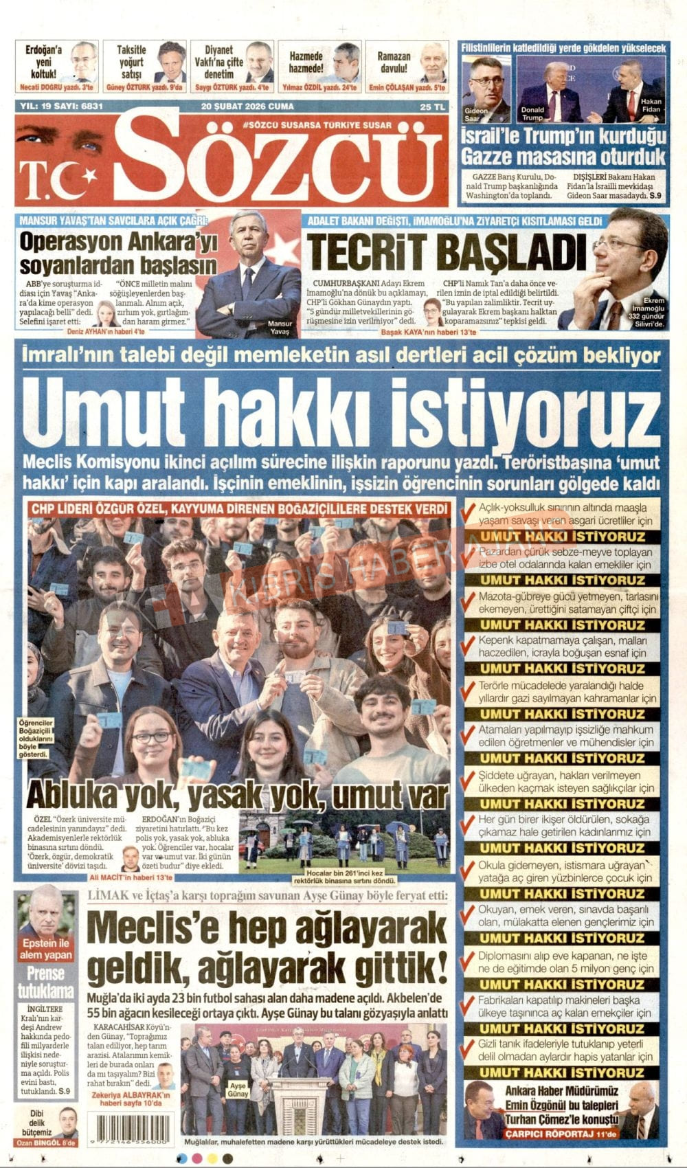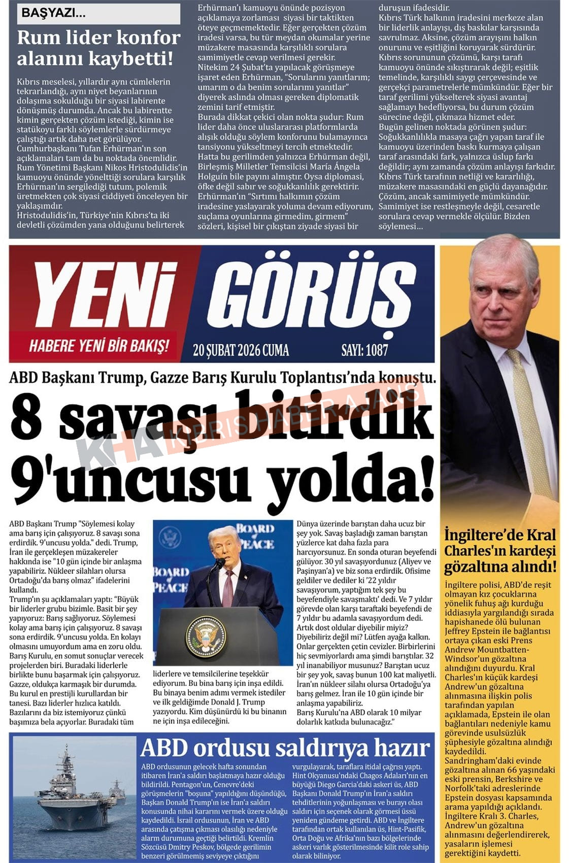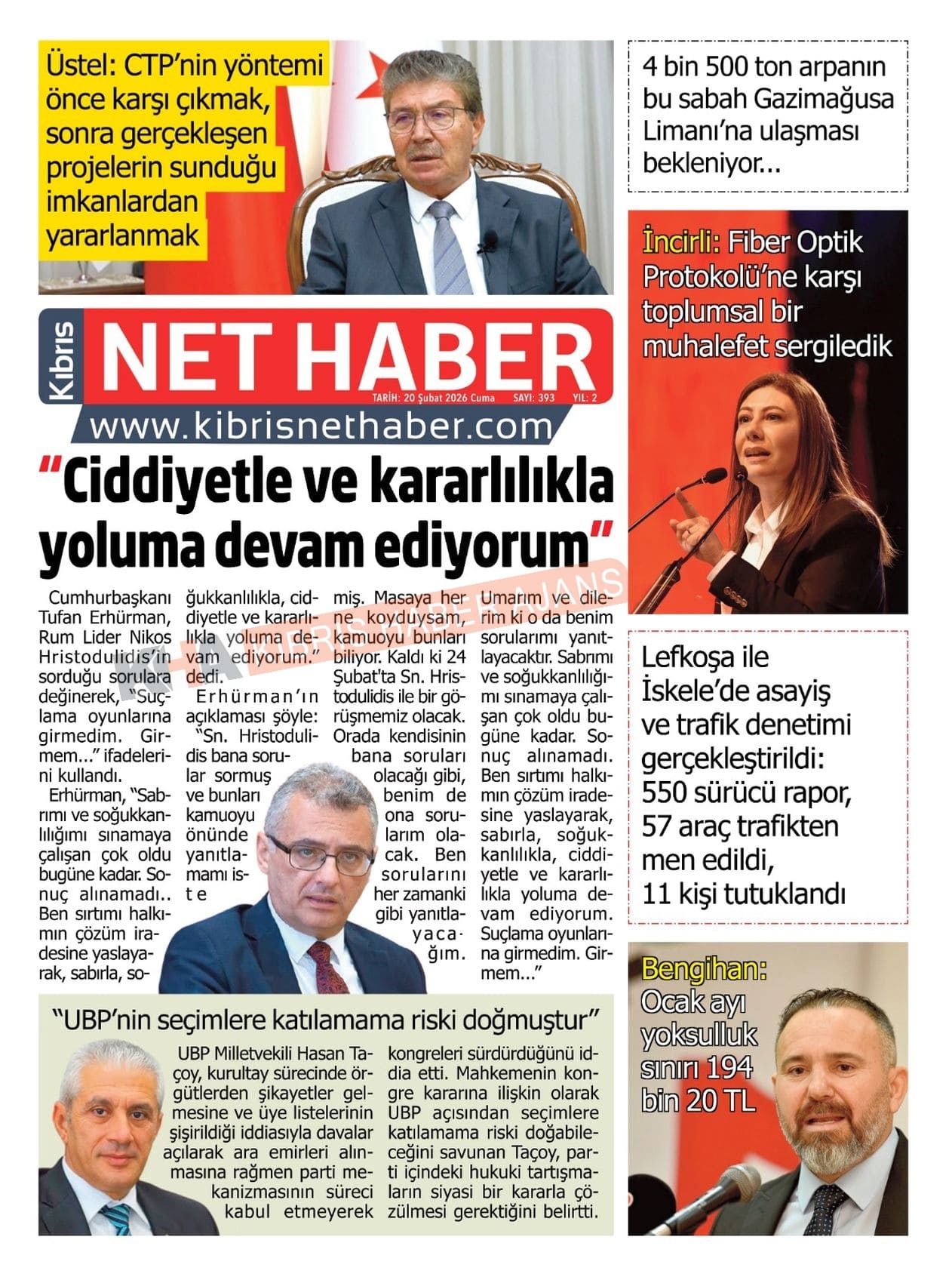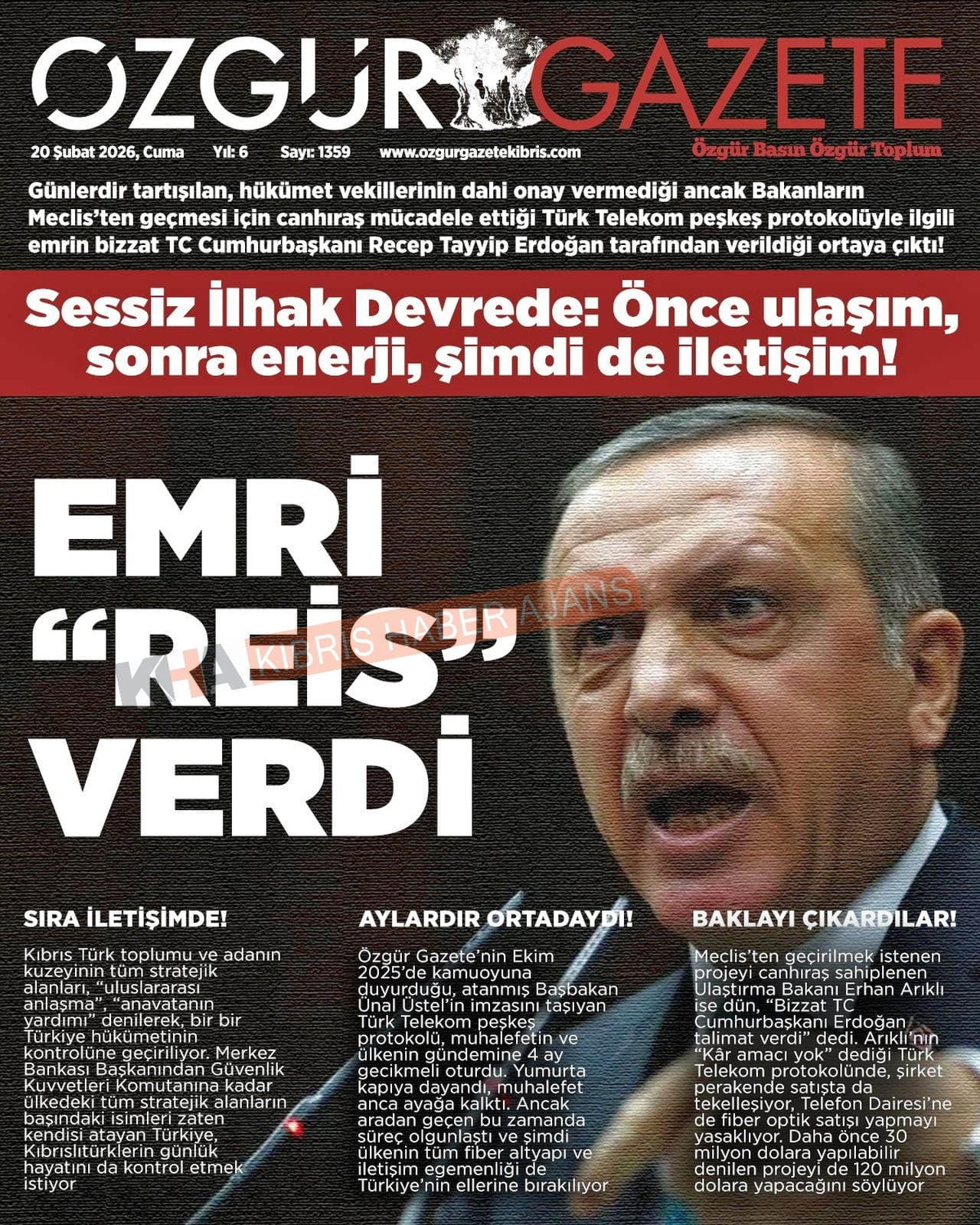 KKTC-TC Gazetelerinde Bugün (20 ŞUBAT 2026)