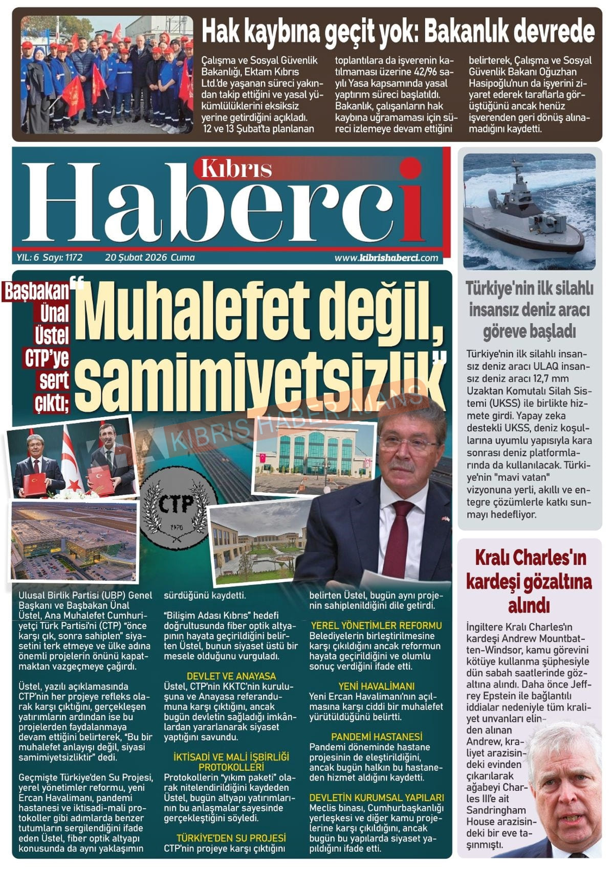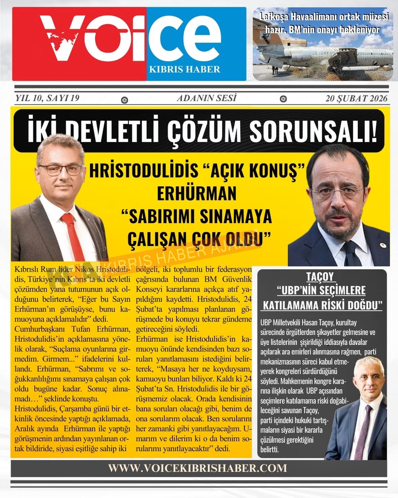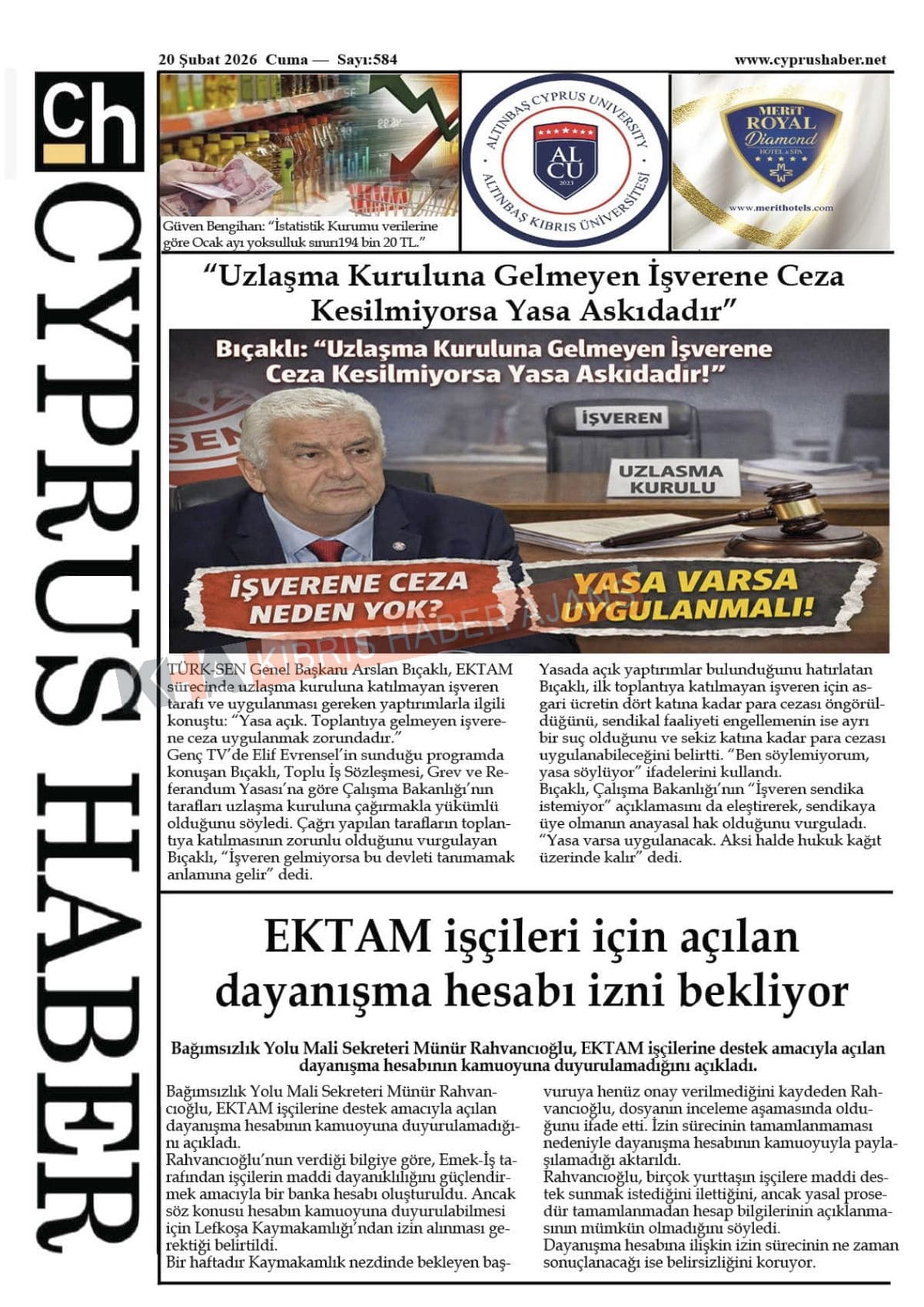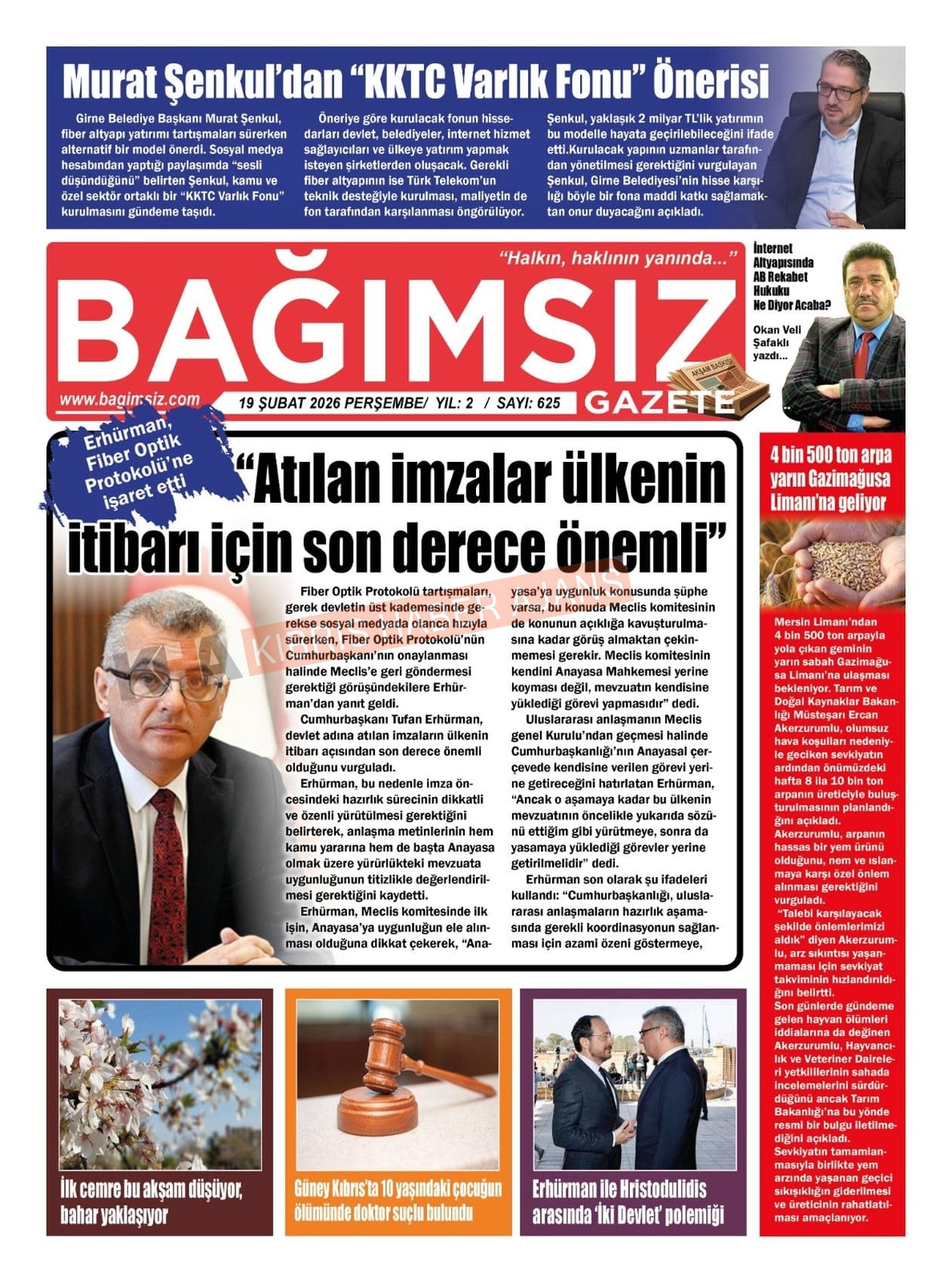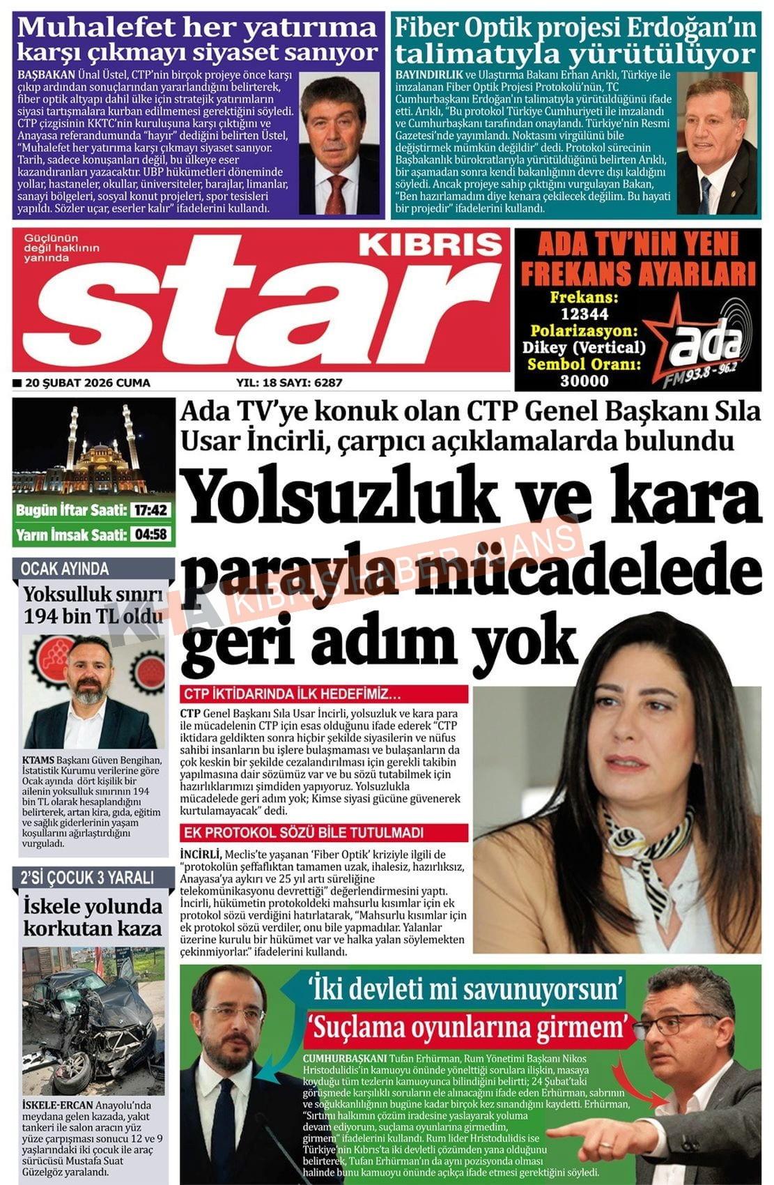 KKTC-TC Gazetelerinde Bugün (20 ŞUBAT 2026)