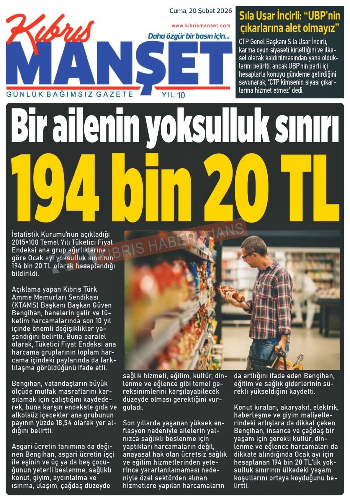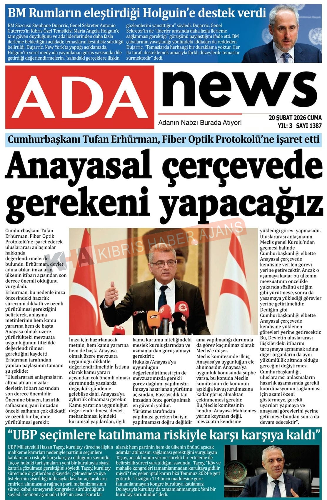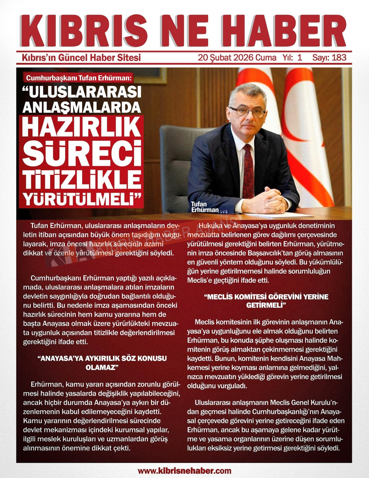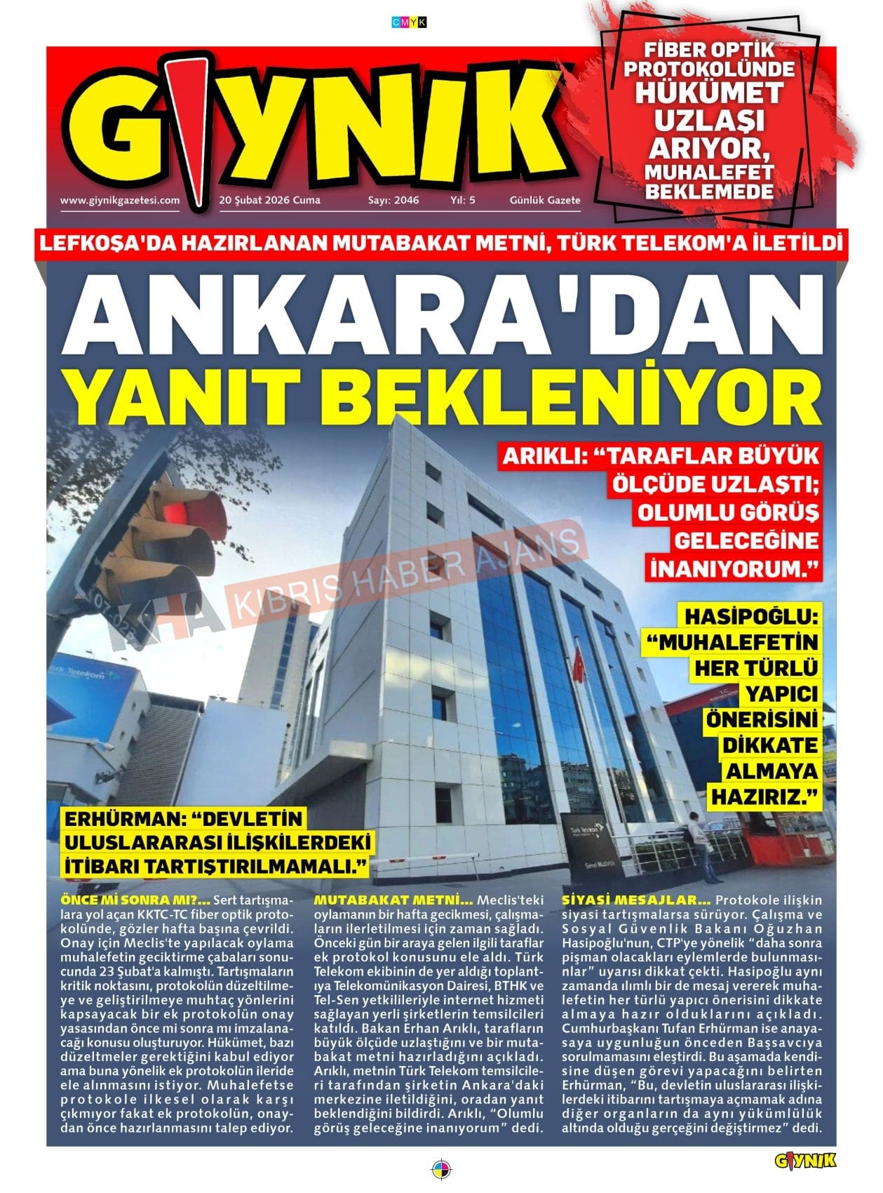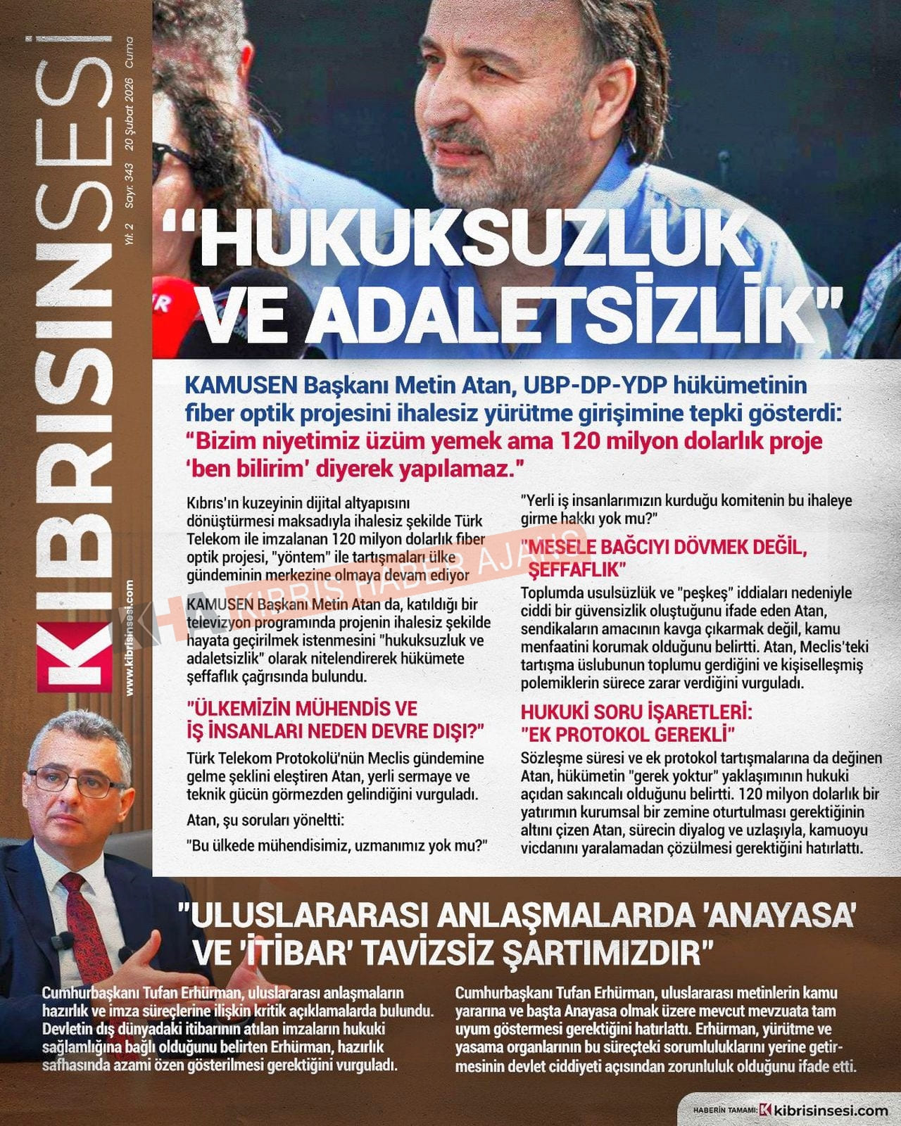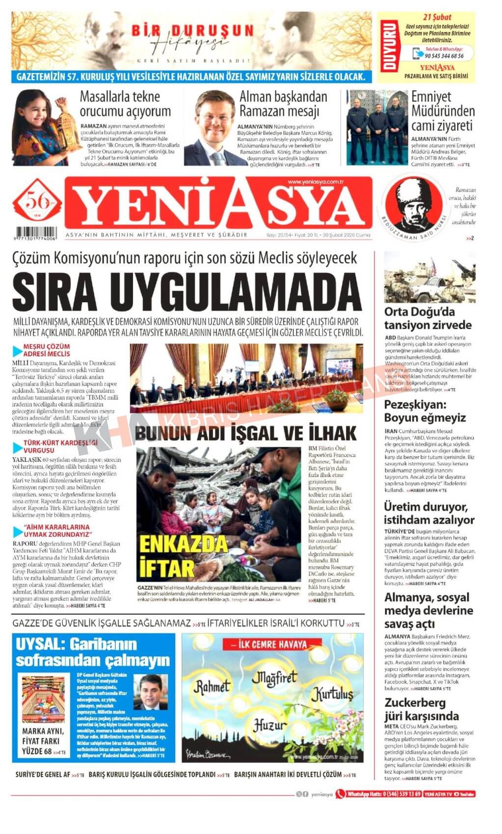 KKTC-TC Gazetelerinde Bugün (20 ŞUBAT 2026)