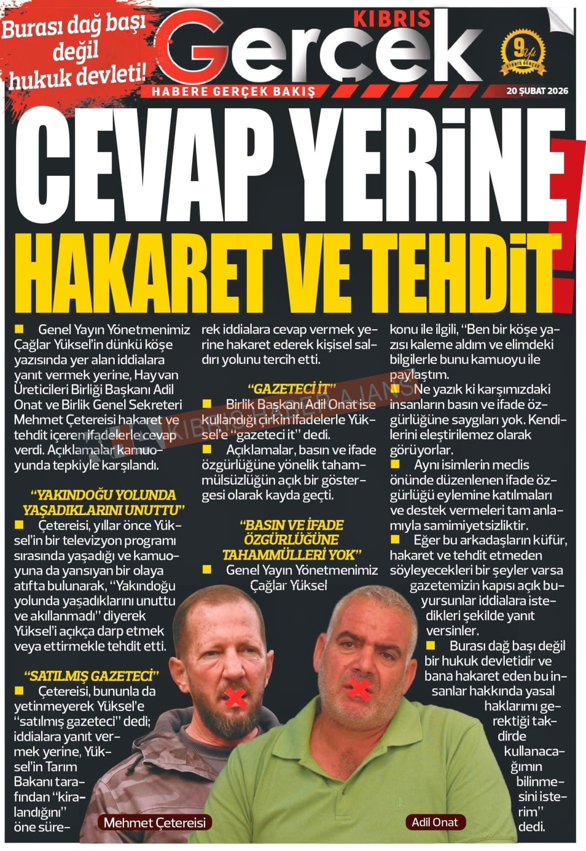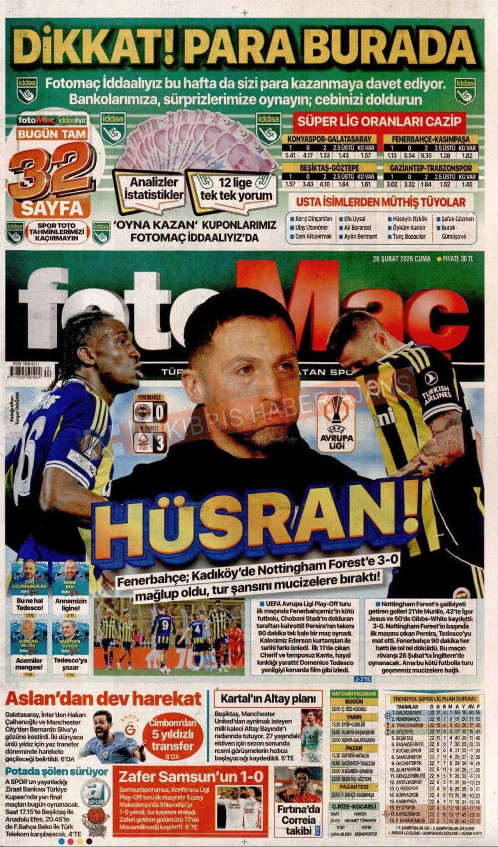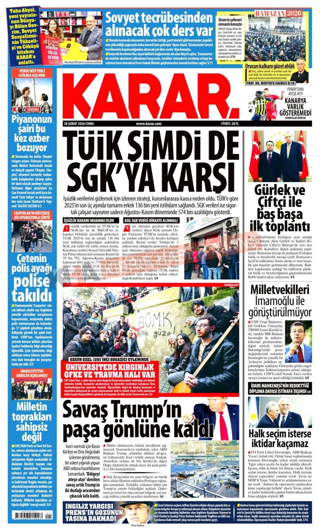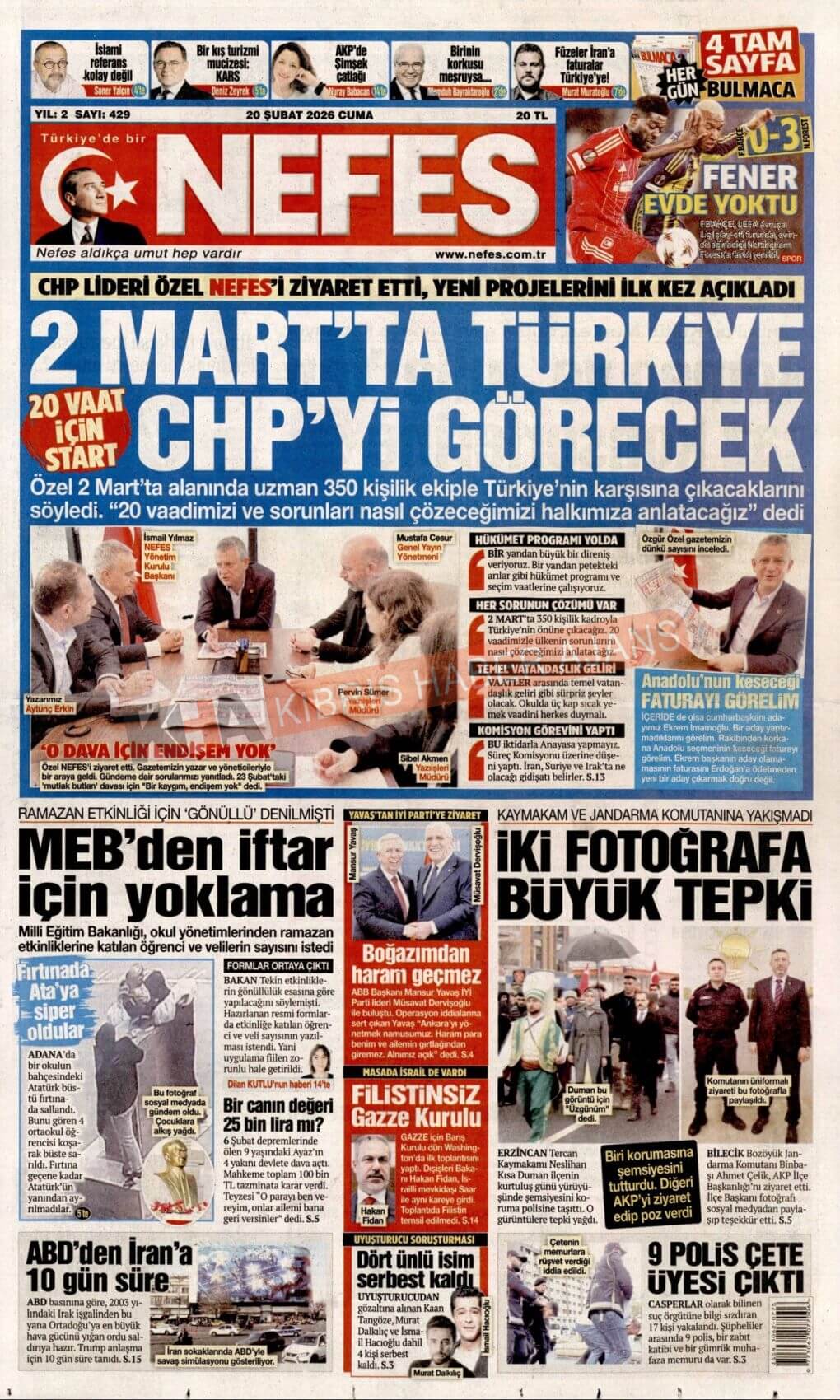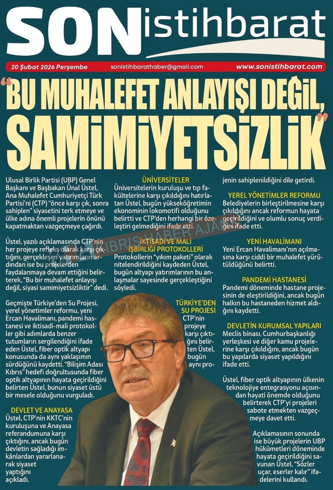 KKTC-TC Gazetelerinde Bugün (20 ŞUBAT 2026)